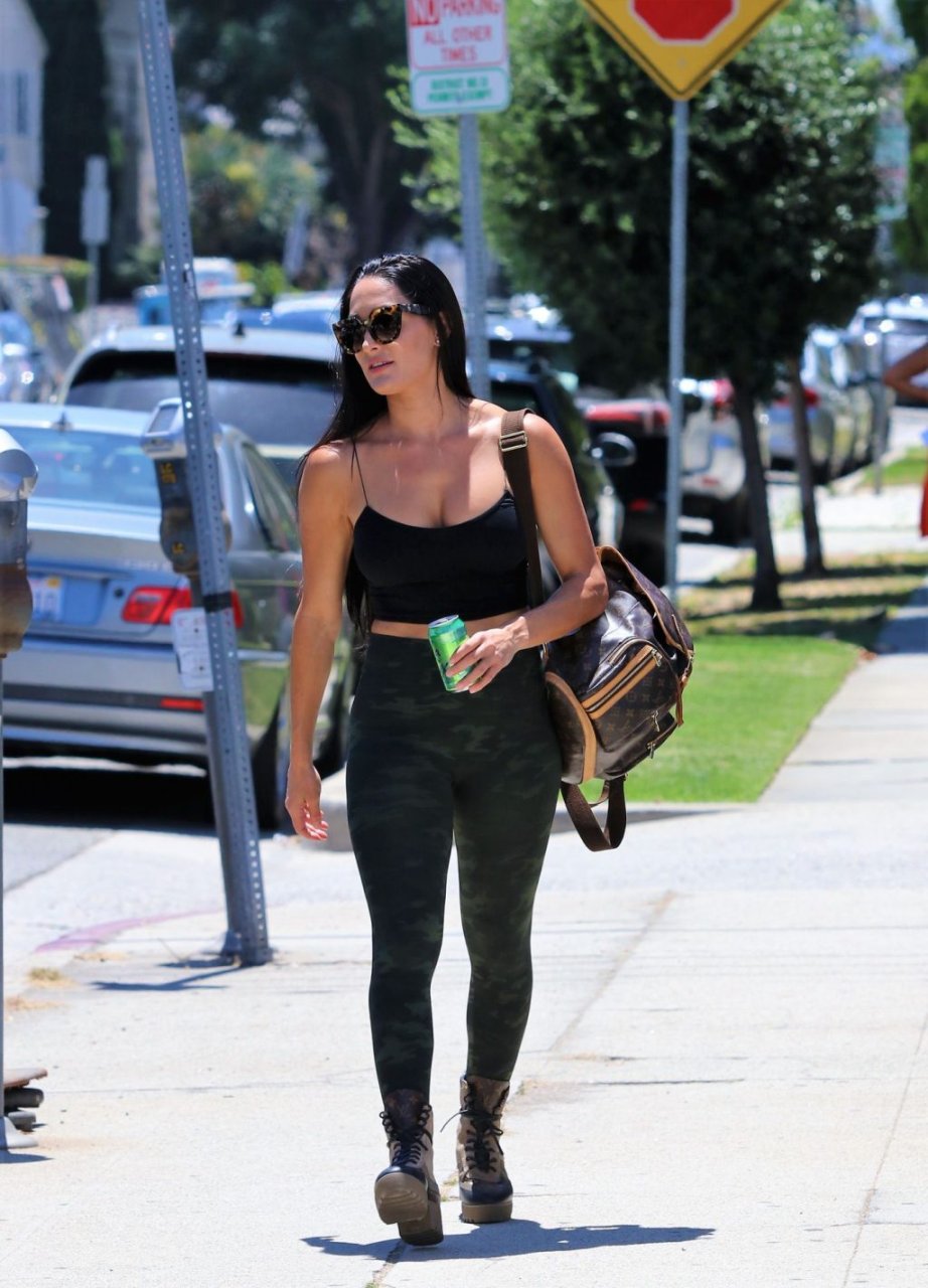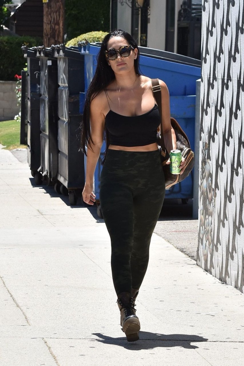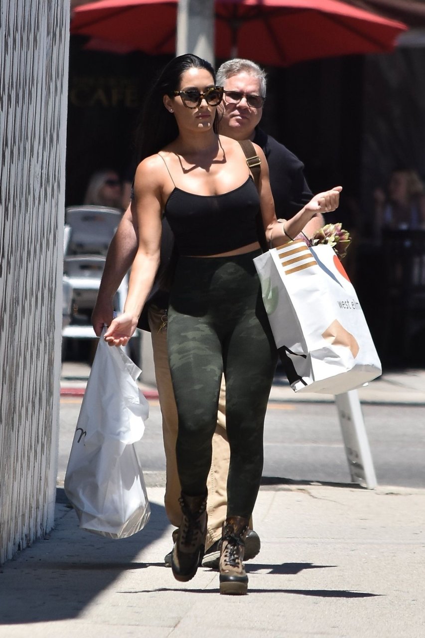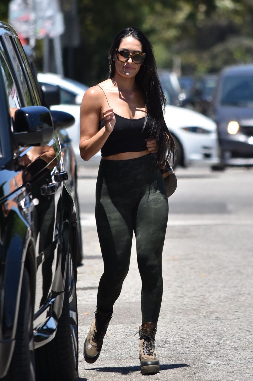 Nikki Bella è stata vista fare shopping di mobili a West Hollywood, 27/07/2019. La star della WWE ha mostrato il suo seno indossando un top sportivo nero senza reggiseno.