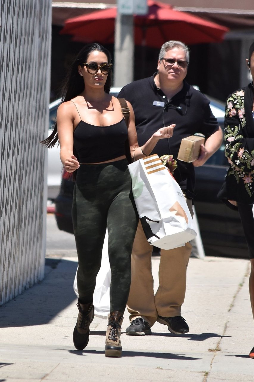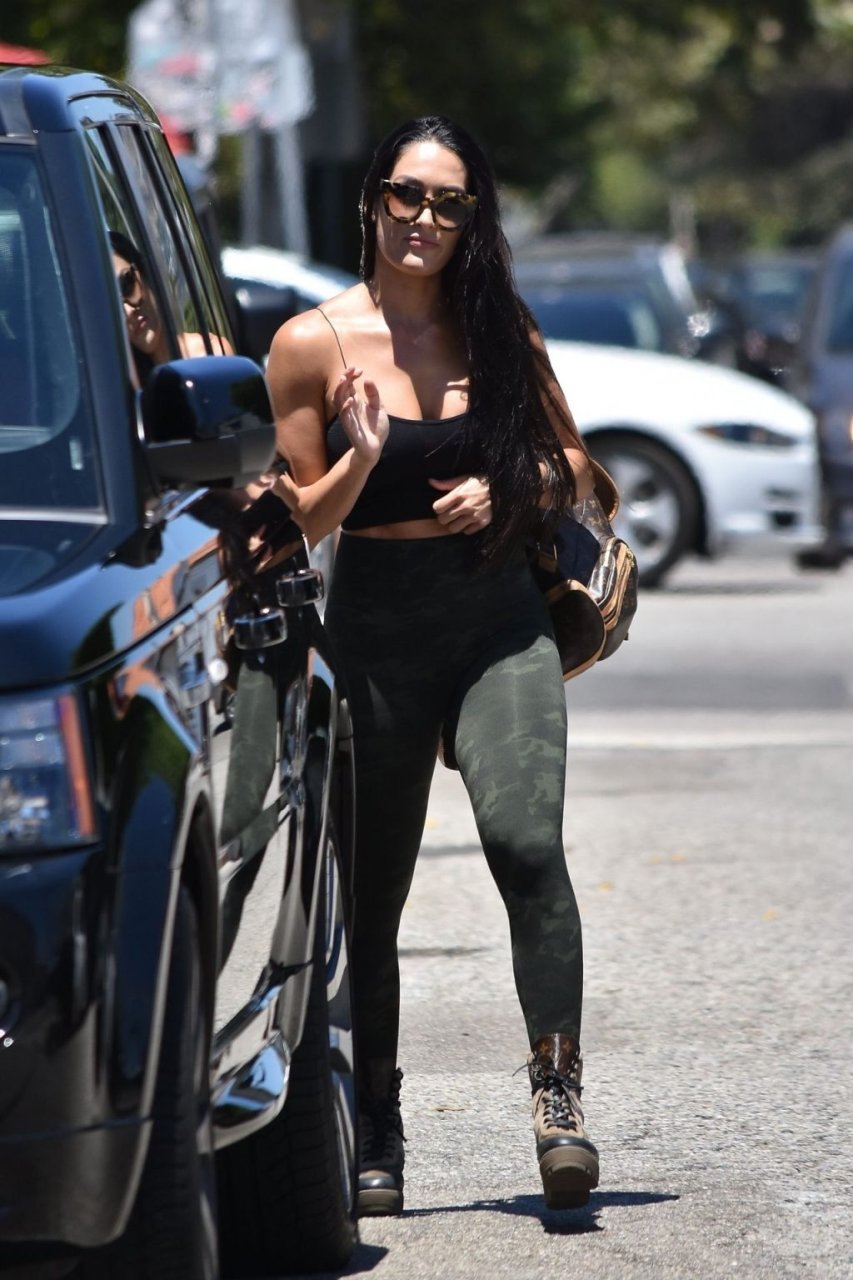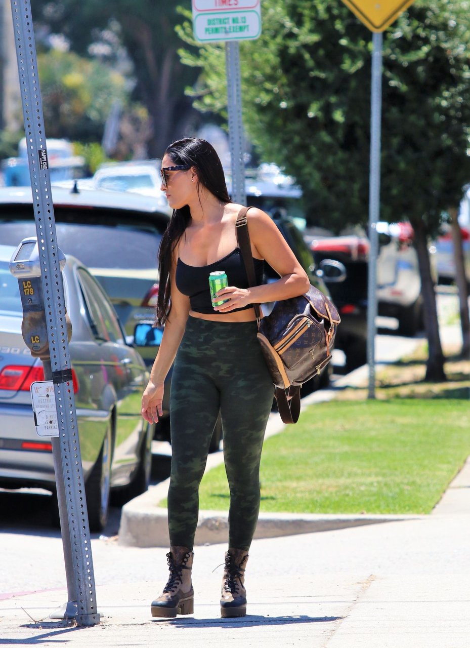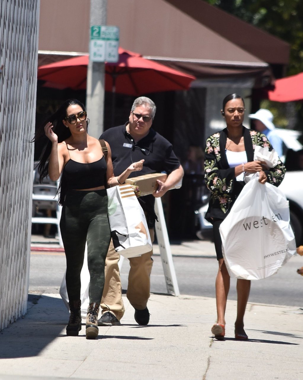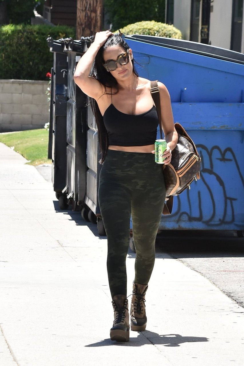 Nikki Bella è stata vista fare shopping di mobili a West Hollywood, 27/07/2019. La star della WWE ha mostrato il suo seno indossando un top sportivo nero senza reggiseno.