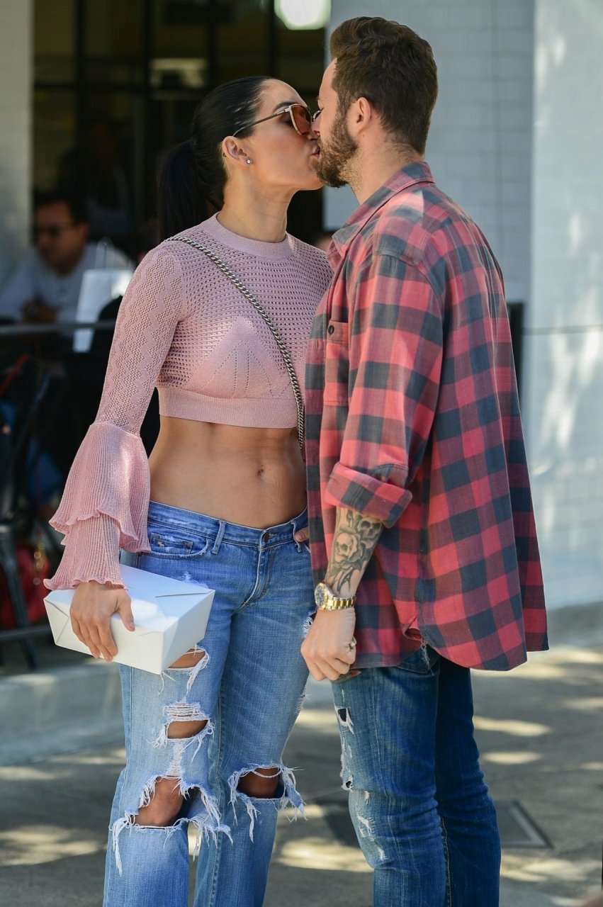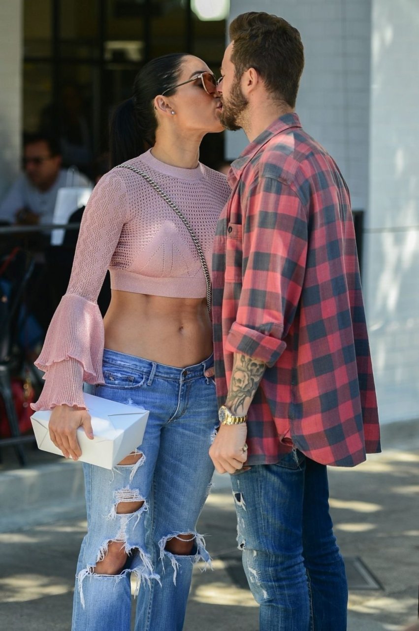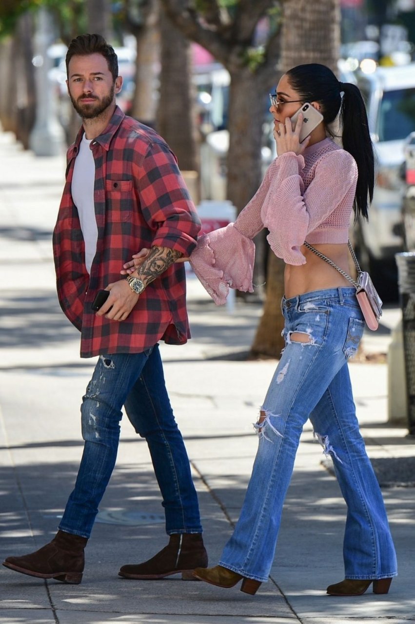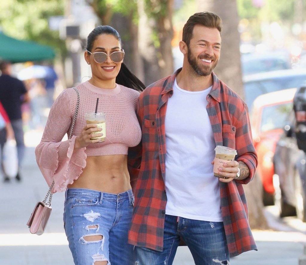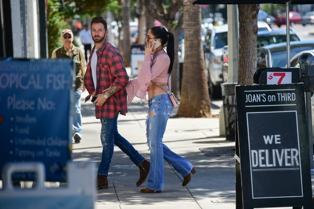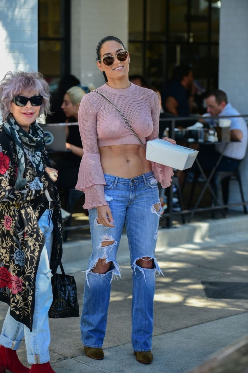 Nikki Bella sfoggia i suoi addominali scolpiti con un crop top rosa e jeans durante un pranzo con Artem Chigvintsev e alcuni familiari da Joan’s On Third a Studio City, 30/09/2019. Gli innamorati si scambiano un dolce bacio mentre aspettano la loro auto al parcheggio con servizio valet chiacchierando.