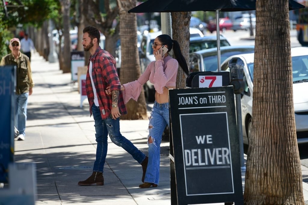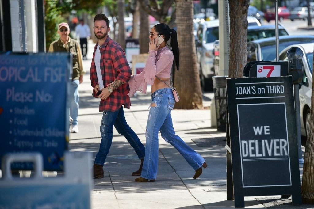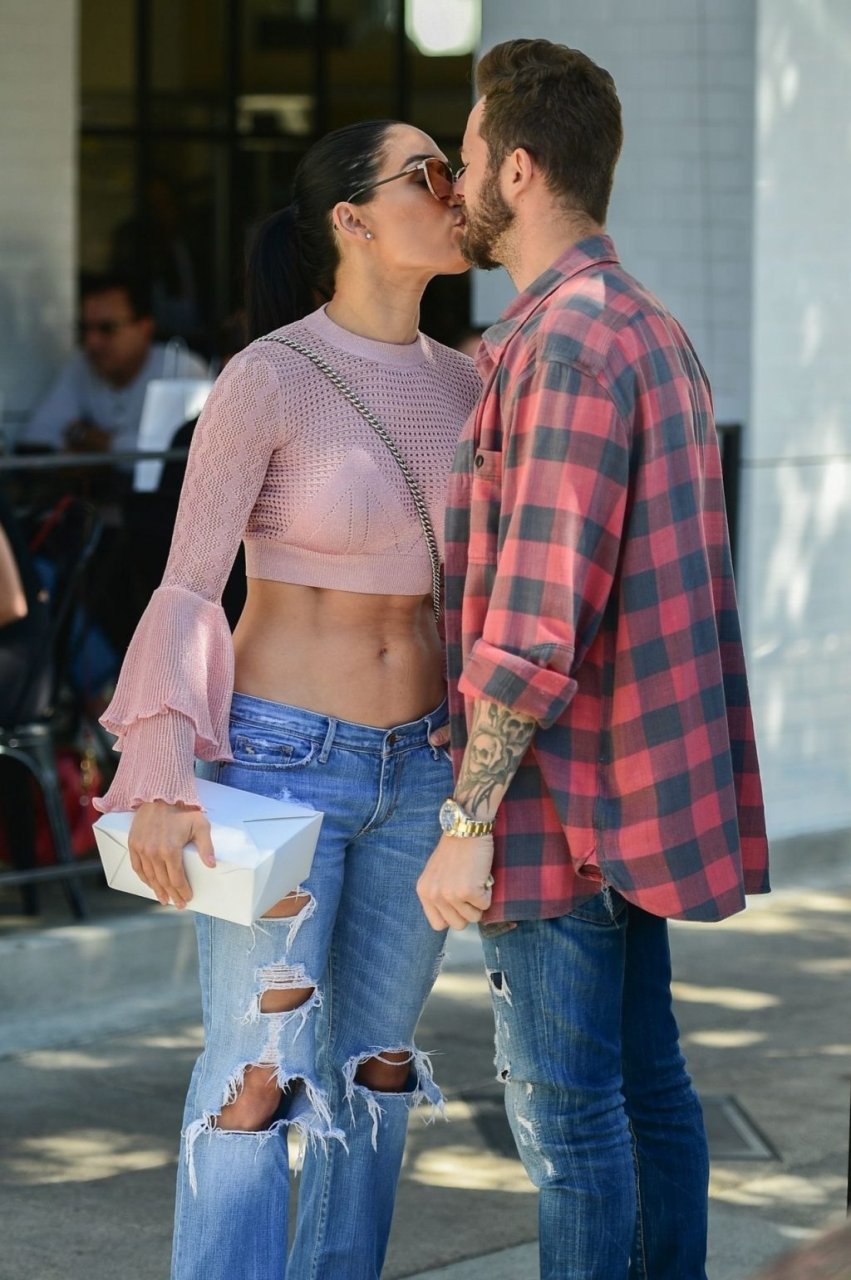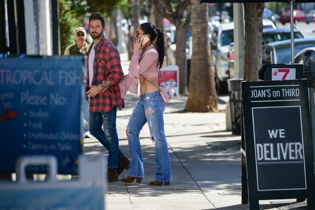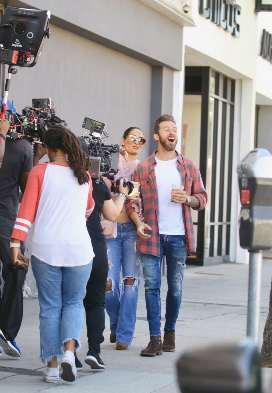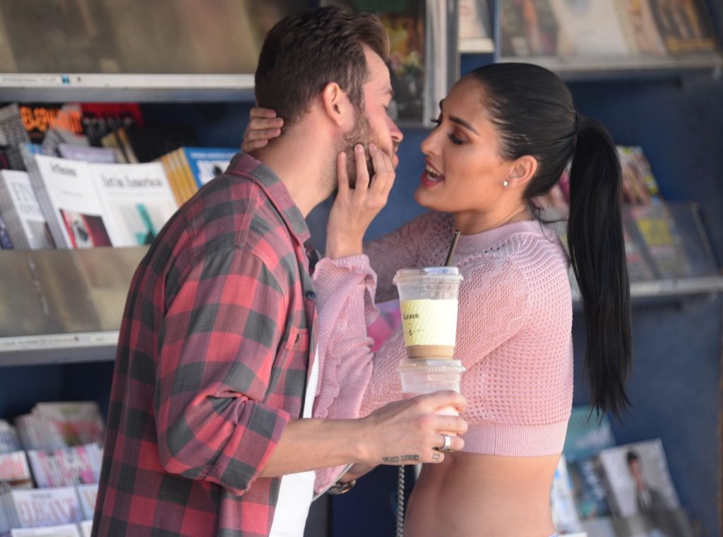 Nikki Bella sfoggia i suoi addominali scolpiti con un crop top rosa e jeans durante un pranzo con Artem Chigvintsev e alcuni familiari da Joan’s On Third a Studio City, 30/09/2019. Gli innamorati si scambiano un dolce bacio mentre aspettano la loro auto al parcheggio con servizio valet chiacchierando.