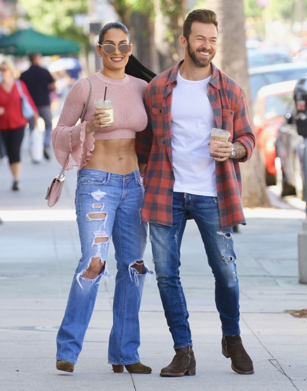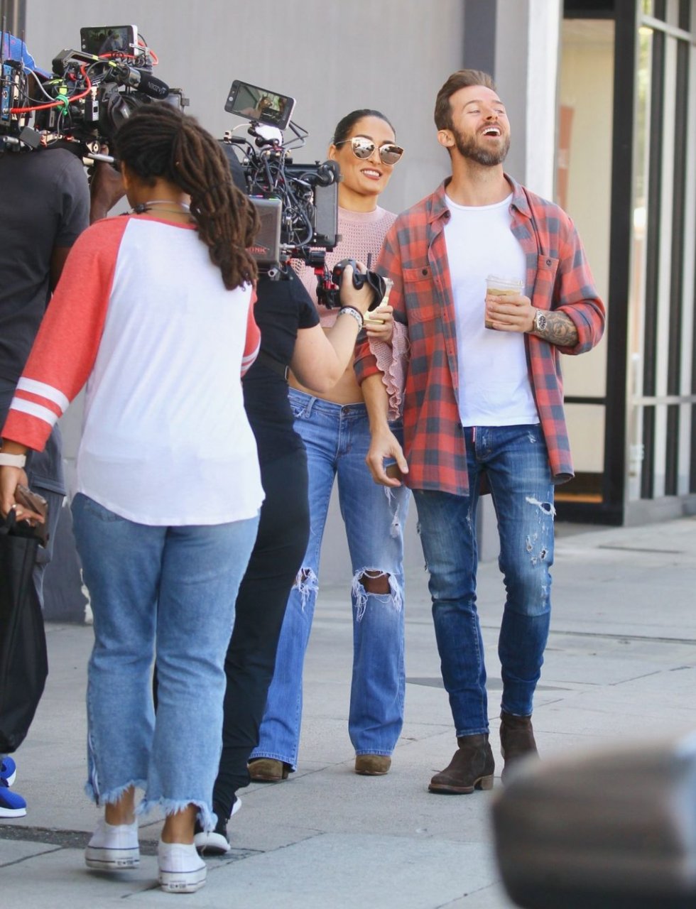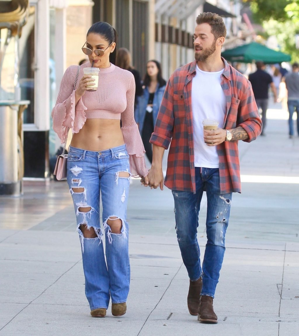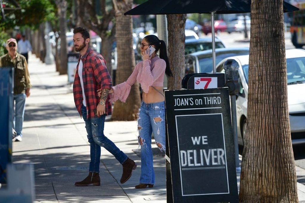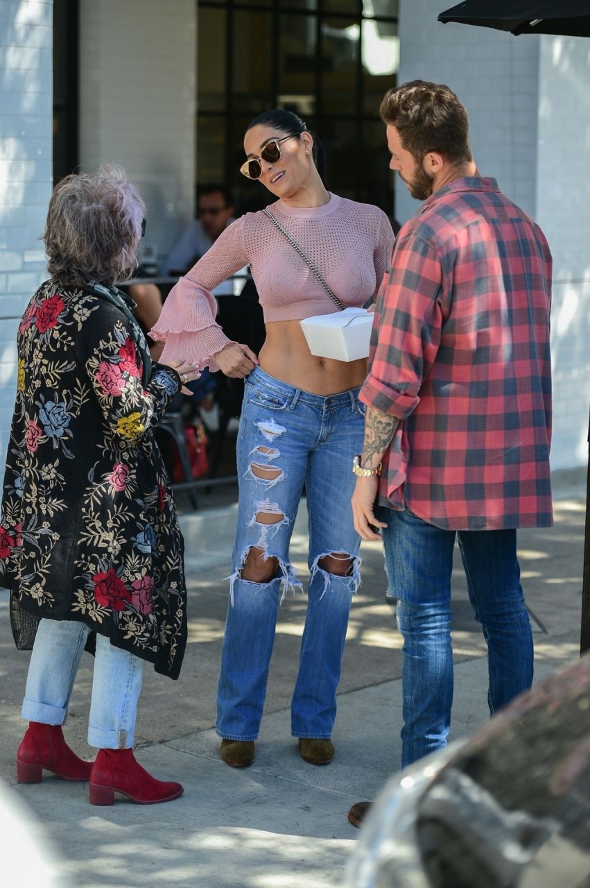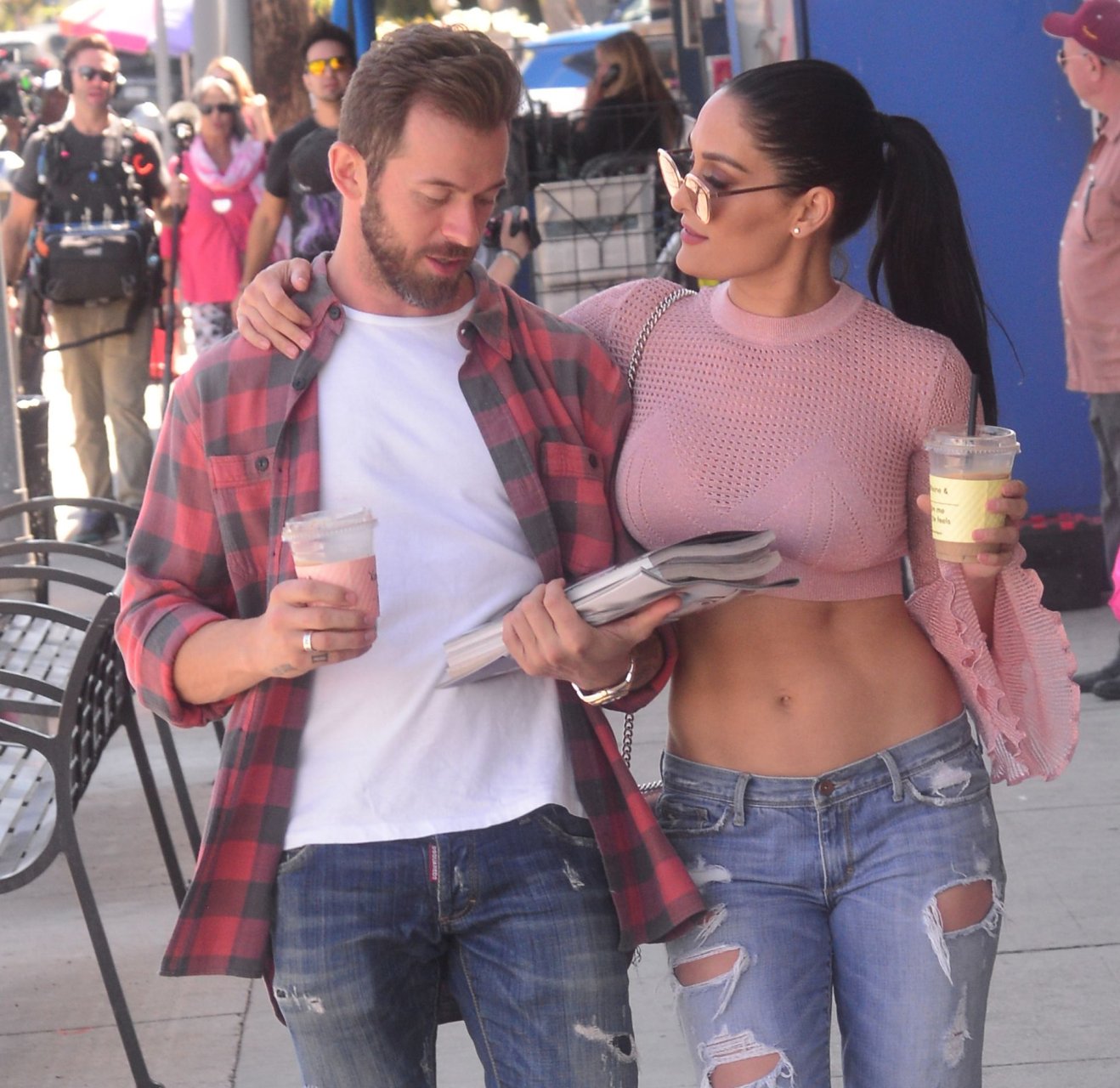 Nikki Bella sfoggia i suoi addominali scolpiti con un crop top rosa e jeans durante un pranzo con Artem Chigvintsev e alcuni familiari da Joan’s On Third a Studio City, 30/09/2019. Gli innamorati si scambiano un dolce bacio mentre aspettano la loro auto al parcheggio con servizio valet chiacchierando.
