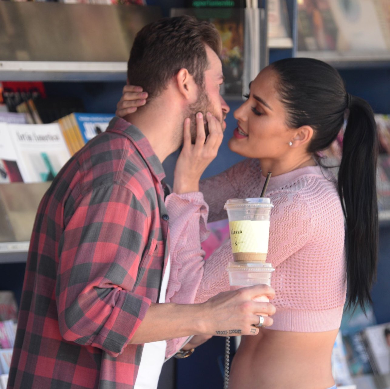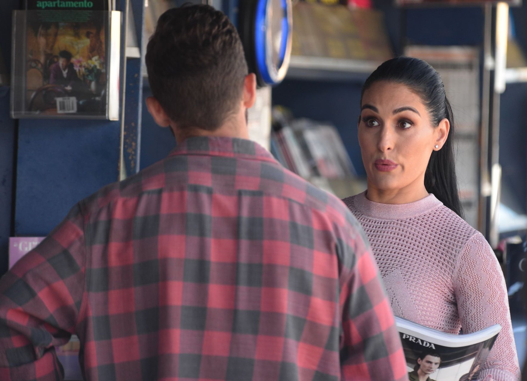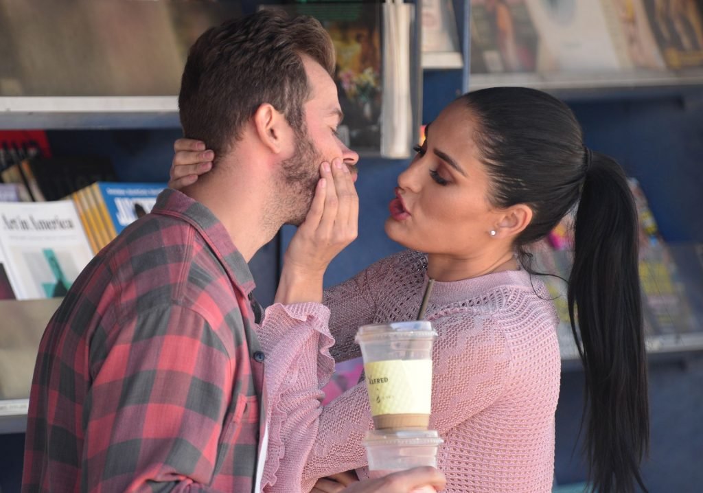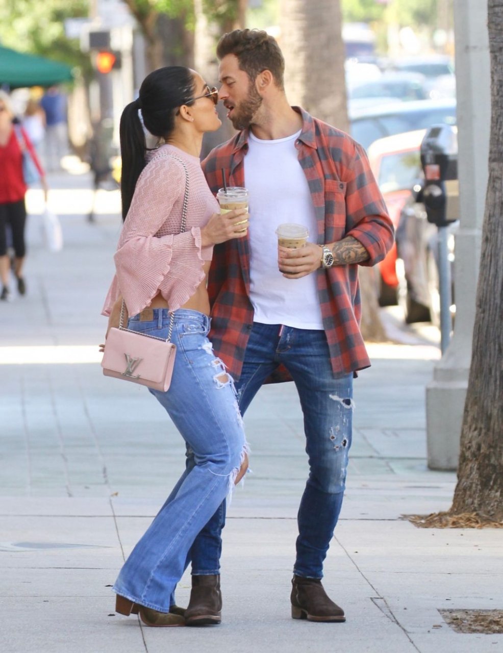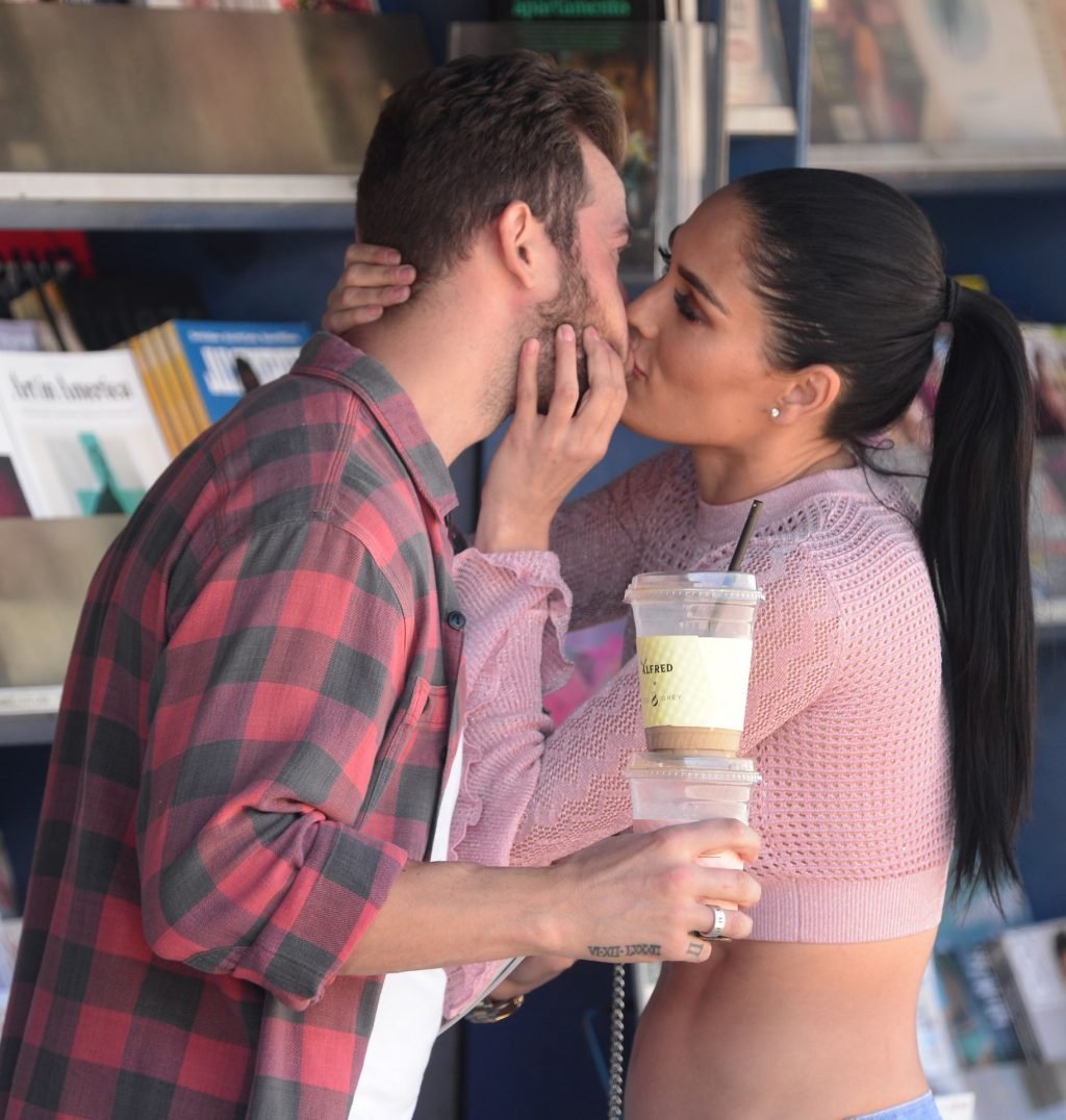Nikki Bella sfoggia i suoi addominali scolpiti con un crop top rosa e jeans durante un pranzo con Artem Chigvintsev e alcuni familiari da Joan’s On Third a Studio City, 30/09/2019. Gli innamorati si scambiano un dolce bacio mentre aspettano la loro auto al parcheggio con servizio valet chiacchierando.