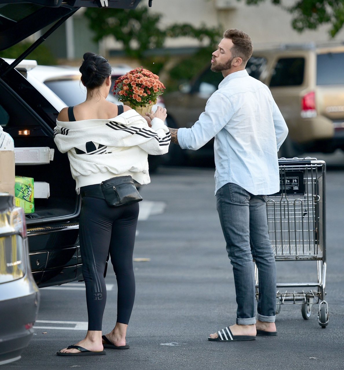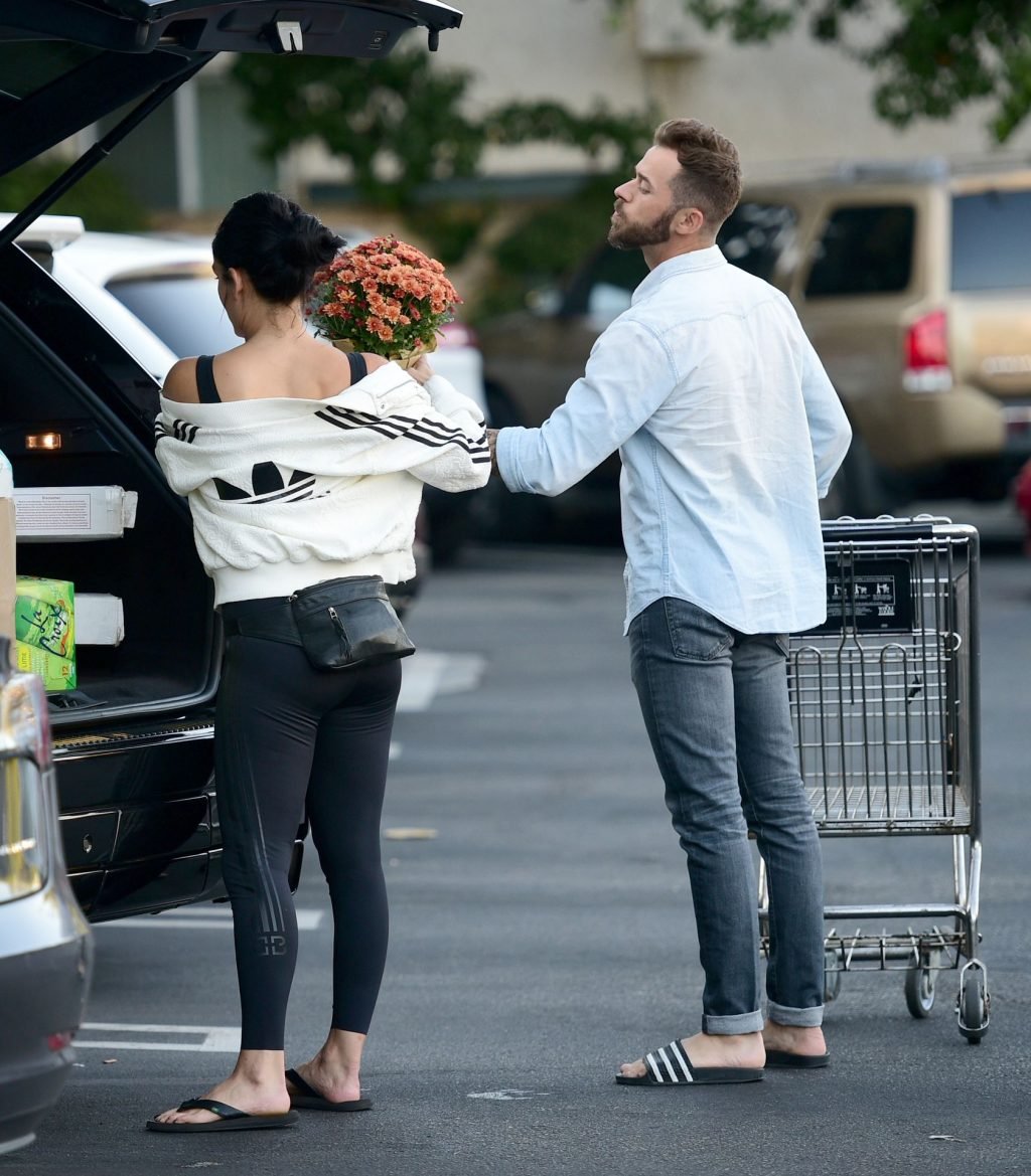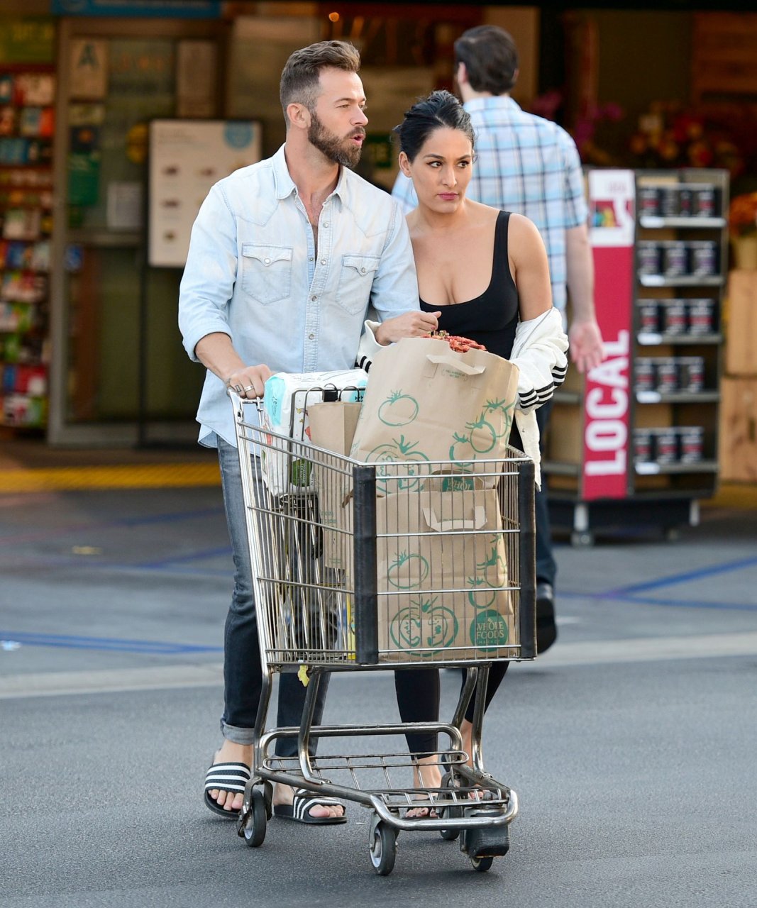 Nikki Bella e Artem Chigvintsev sembrano una coppia felice mentre fanno la spesa insieme in un Whole Foods a Los Angeles, 07/10/2019. La wrestler professionista americana di 35 anni indossava un top nero corto, leggings abbinati, giacca Adidas e sandali.