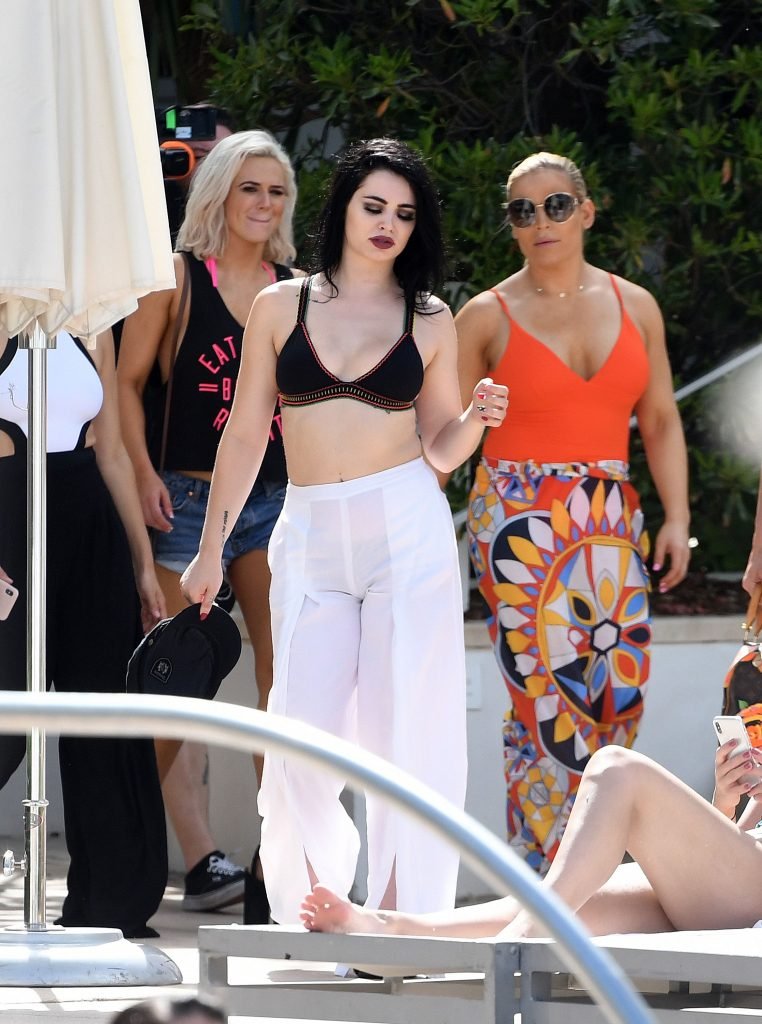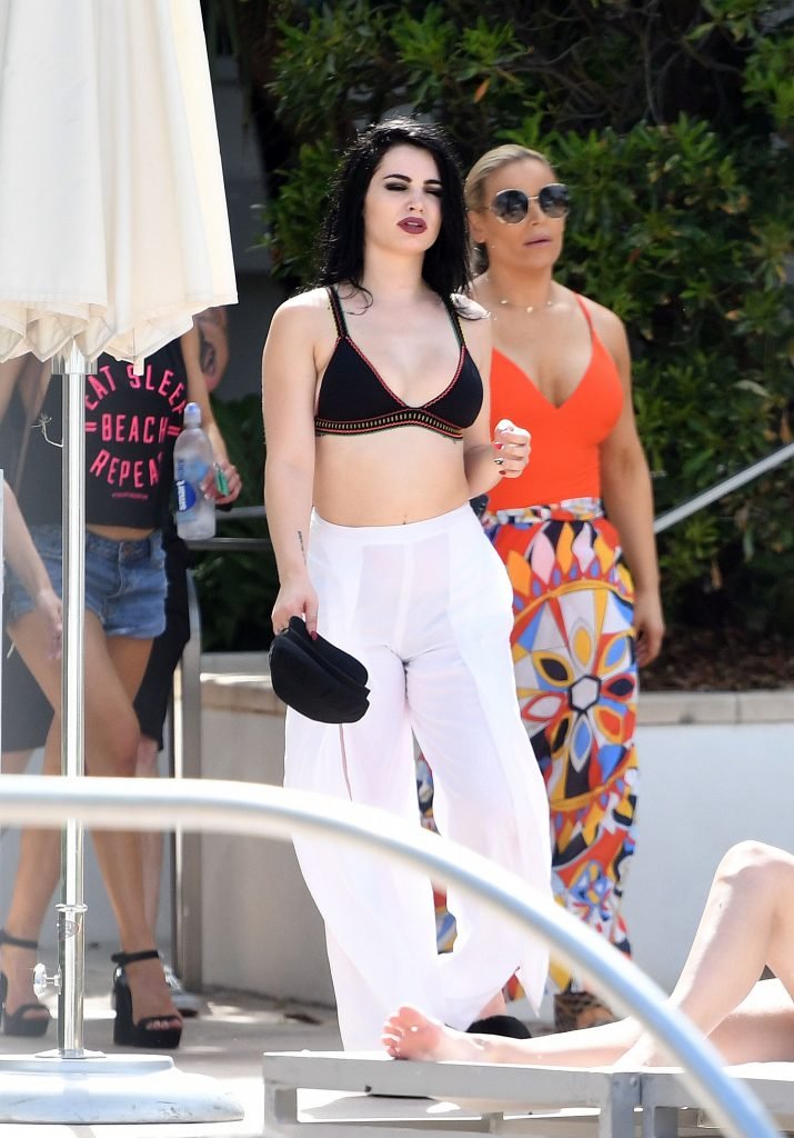 *Dopo être passé devant les nombreuses photos de Jawline Bella en bikini, j'ai remarqué autre chose. Paige est là et elle ressemble à une Selena Gomez pâle et maléfique.