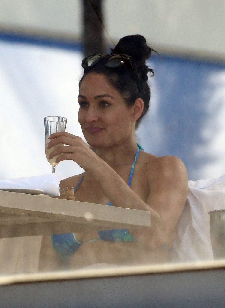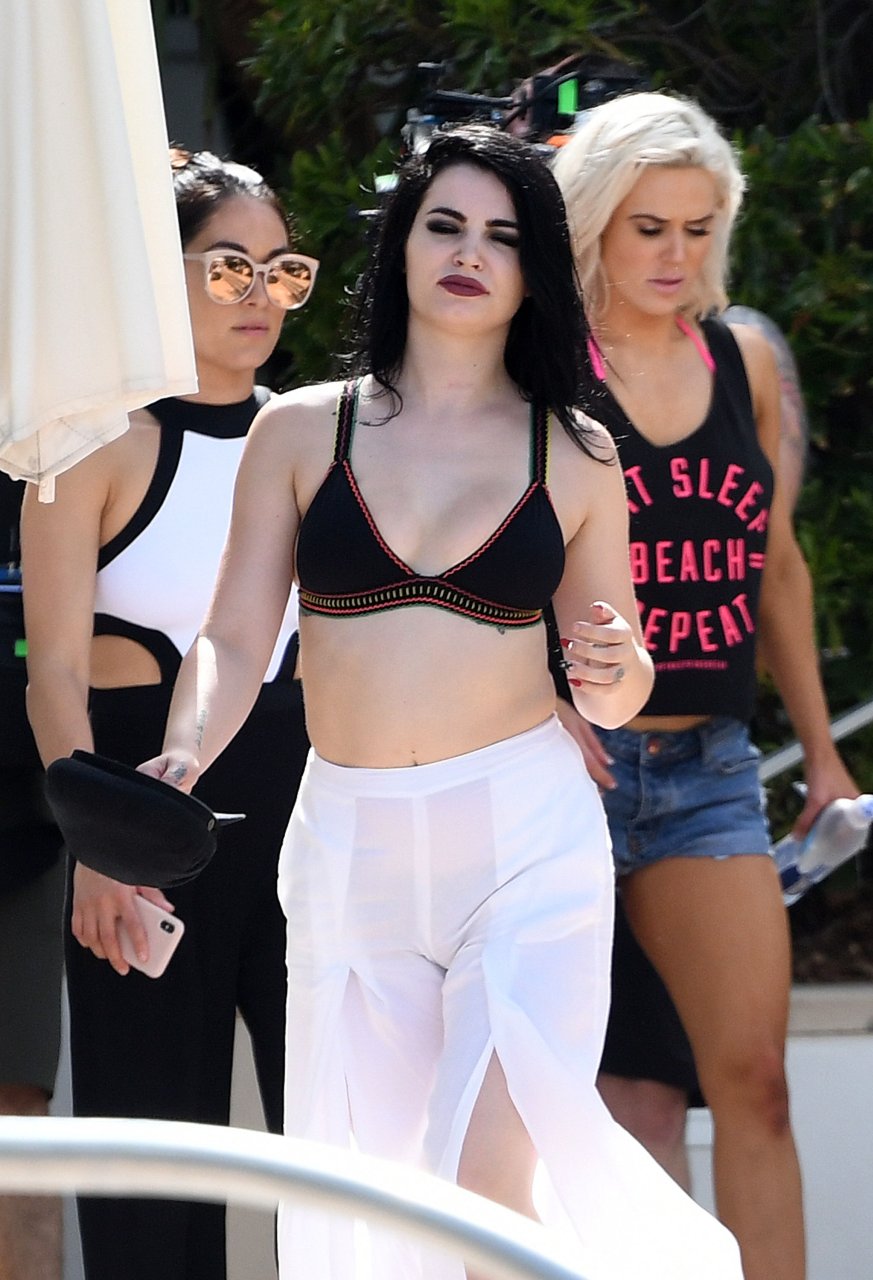 Dopo aver scorrere oltre le numerose foto di Jawline Bella in bikini, ho notato qualcos'altro. Paige è lì e sembra una Selena Gomez pallida e malvagia.