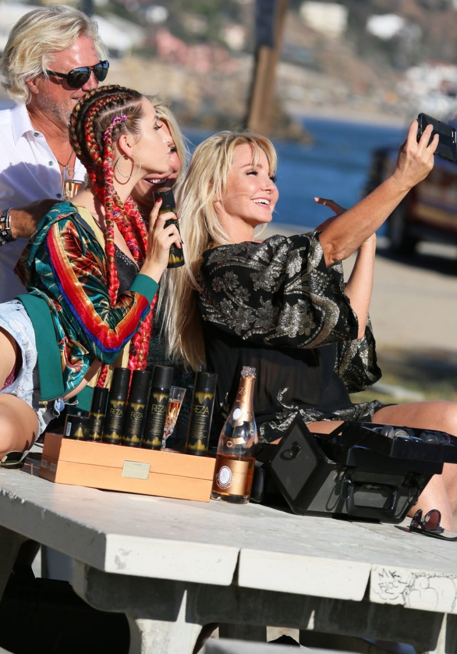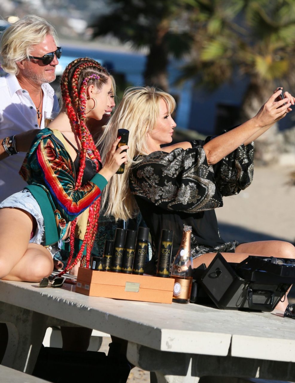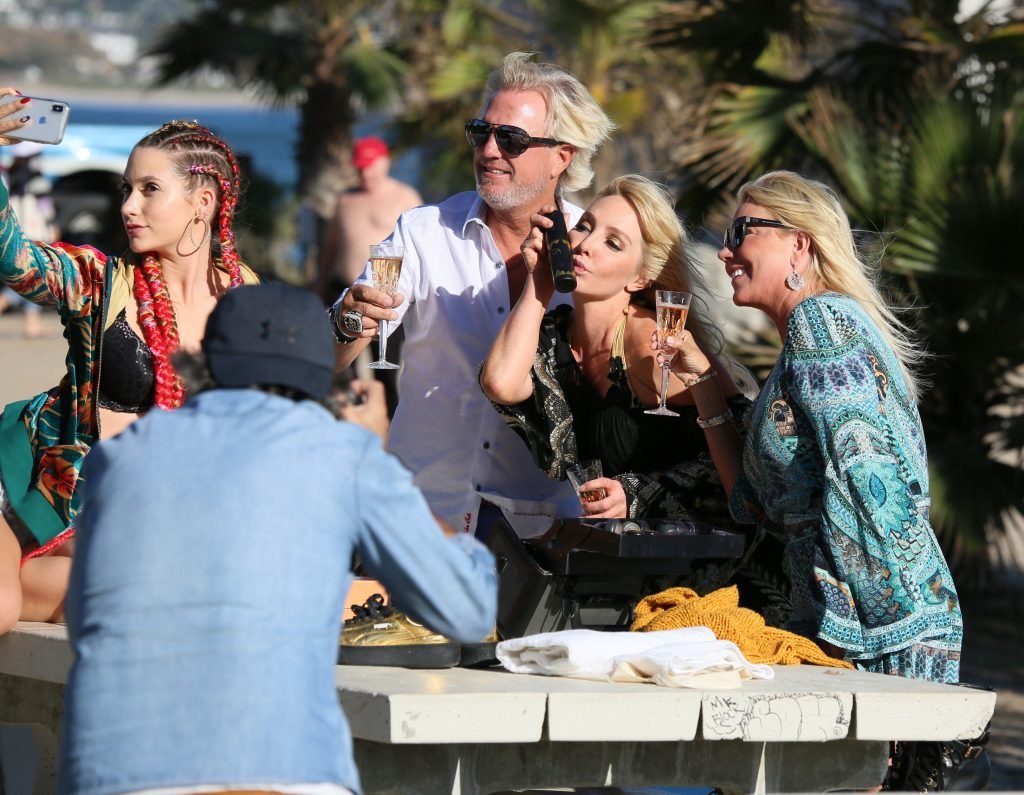 Cantante/designer di moda Nikki Lund (36) trascorre del tempo con i magnati dei capelli e delle fragranze Sheree LaDove Funsch e Dan Funsch e la loro figlia Ashley Brighton sul set di un servizio fotografico in spiaggia, dove ha mostrato il suo corpo sexy in bikini mentre posava per la linea di capelli “Be Obsessed” di Reza Farahan di ‘Shahs of Sunset’ – Malibu, 16/10/2018.