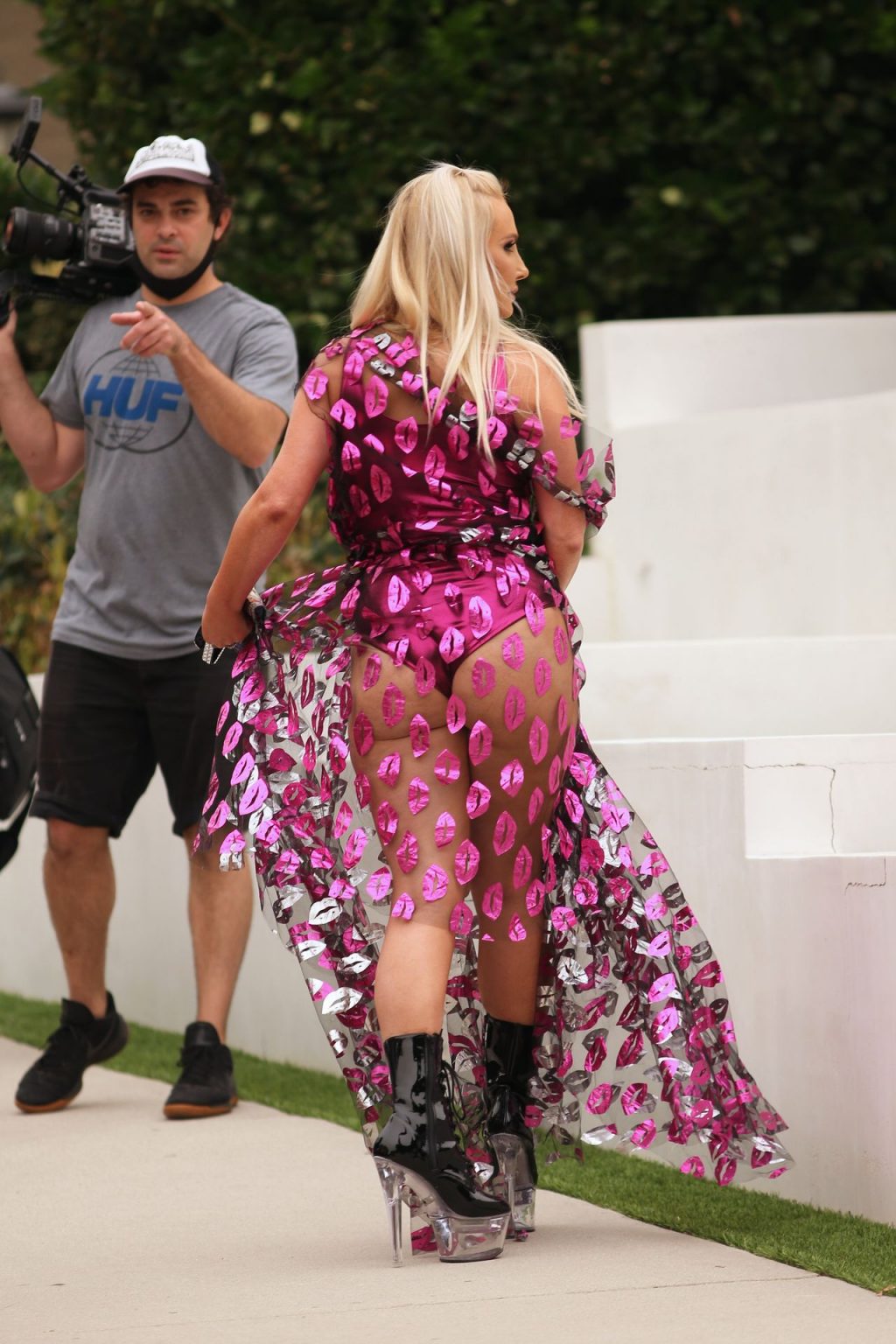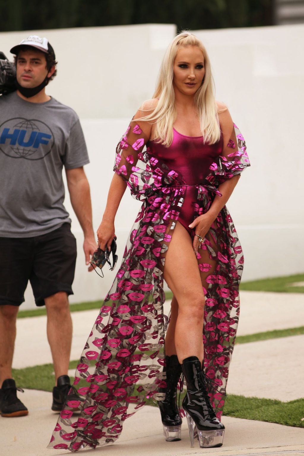 La stilista e cantante Nikki Lund indossa un sexy vestito trasparente a Beverly Hills mentre cammina con la sua squadra e il regista Marcus Mizelle sul set del suo nuovo video musicale per “You and I”, che ha co-scritto con l’ex fidanzato Richie Sambora dopo che la coppia si è riconciliata a seguito di una brutta rottura nel 2015 – Los Angeles, 17/09/2020.