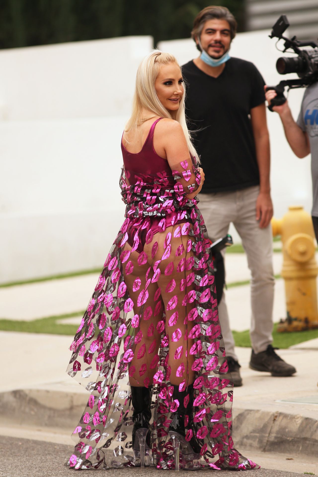 La stilista e cantante Nikki Lund indossa un sexy vestito trasparente a Beverly Hills mentre cammina con la sua squadra e il regista Marcus Mizelle sul set del suo nuovo video musicale per “You and I”, che ha co-scritto con l’ex fidanzato Richie Sambora dopo che la coppia si è riconciliata a seguito di una brutta rottura nel 2015 – Los Angeles, 17/09/2020.