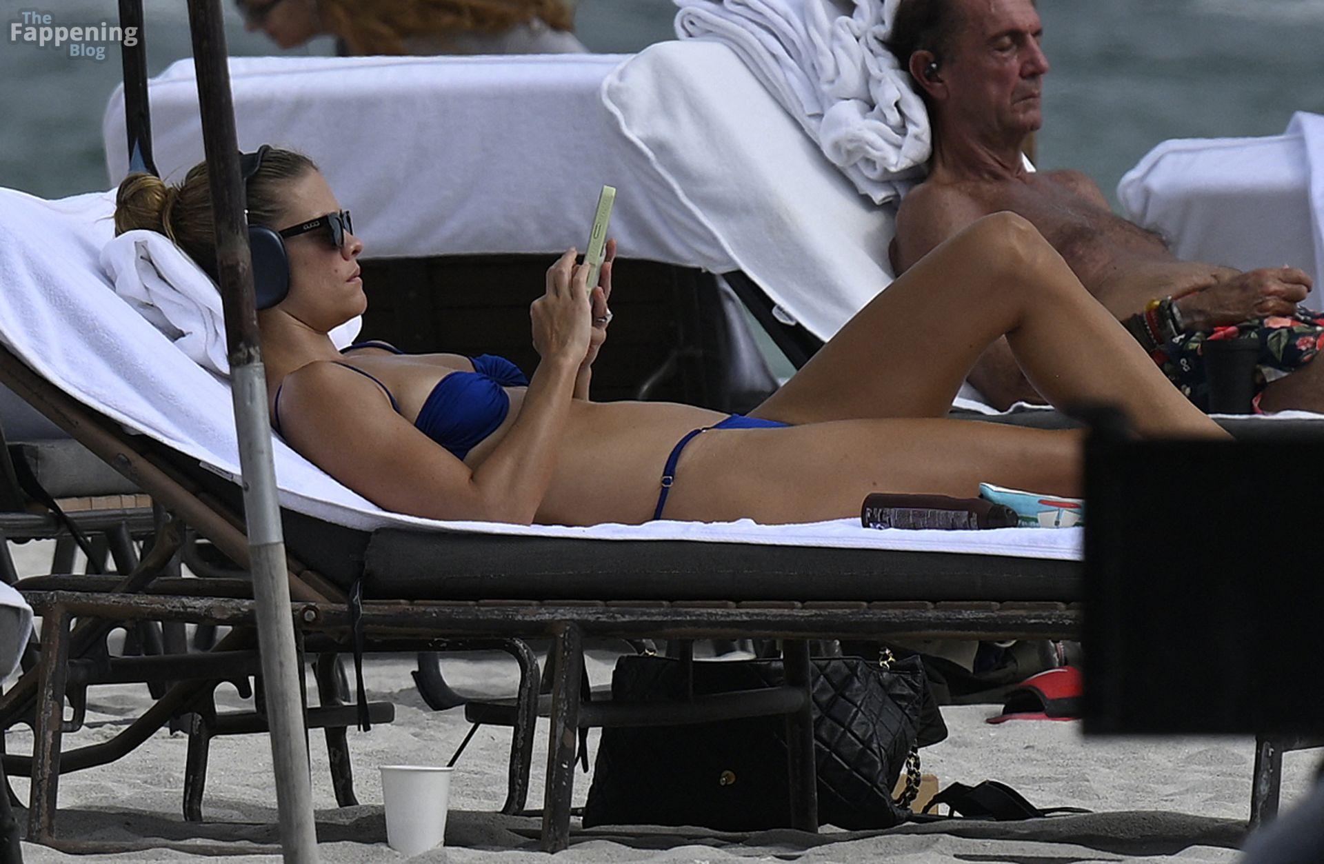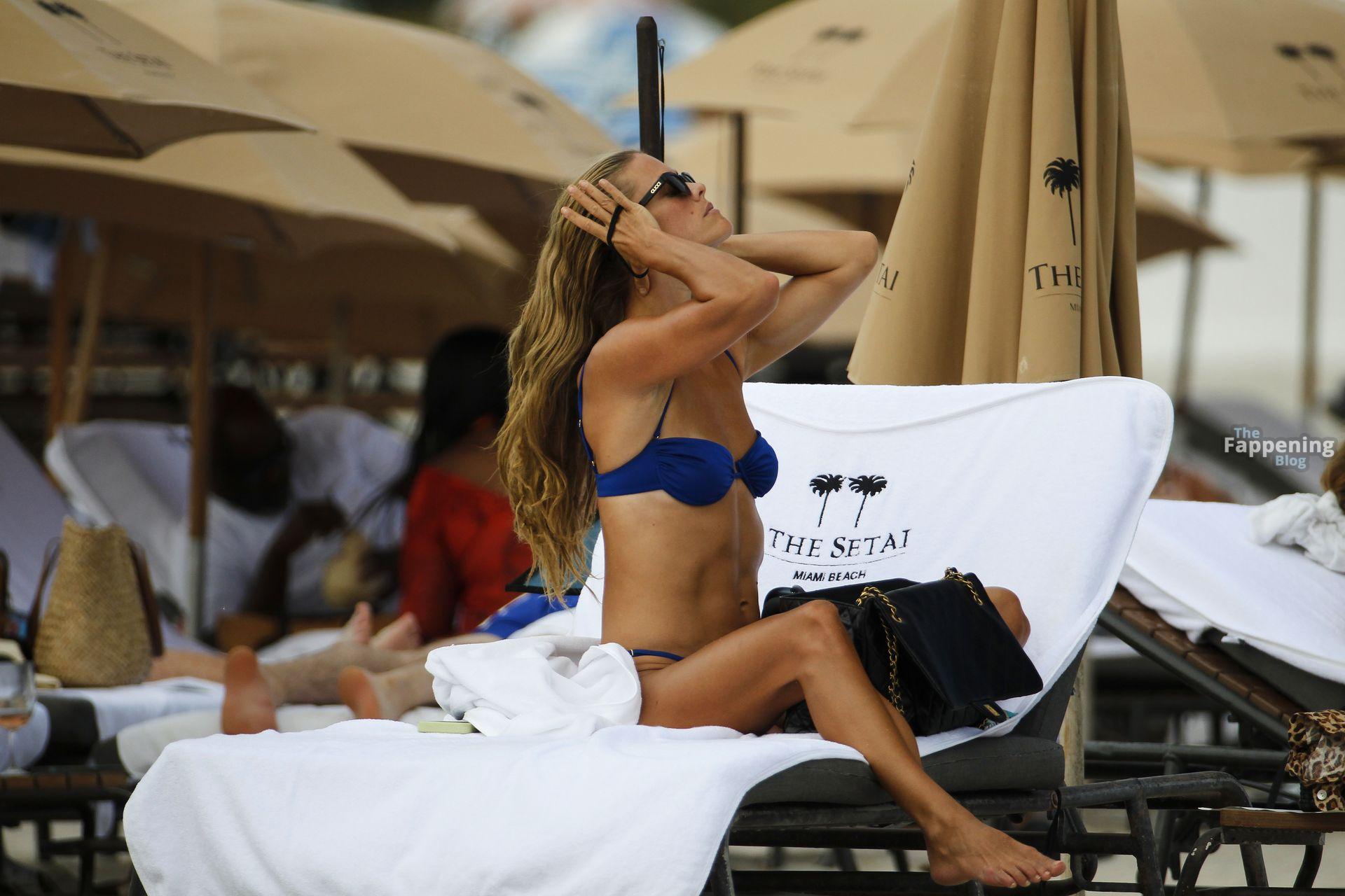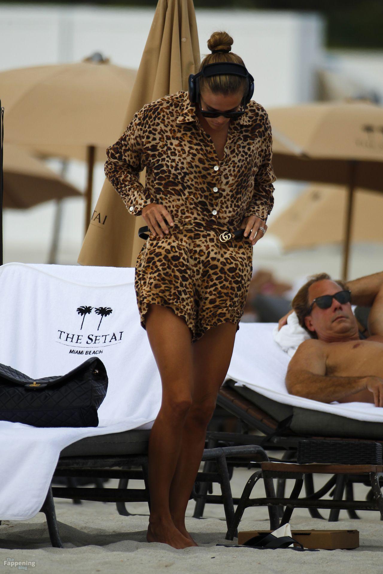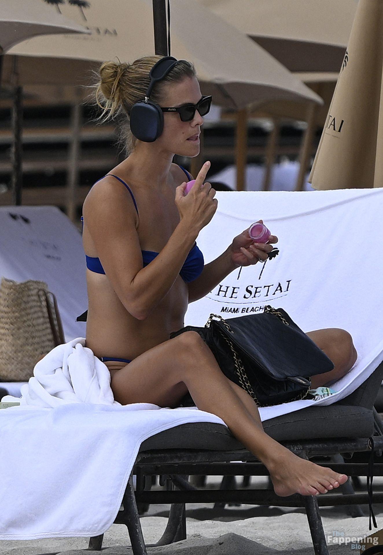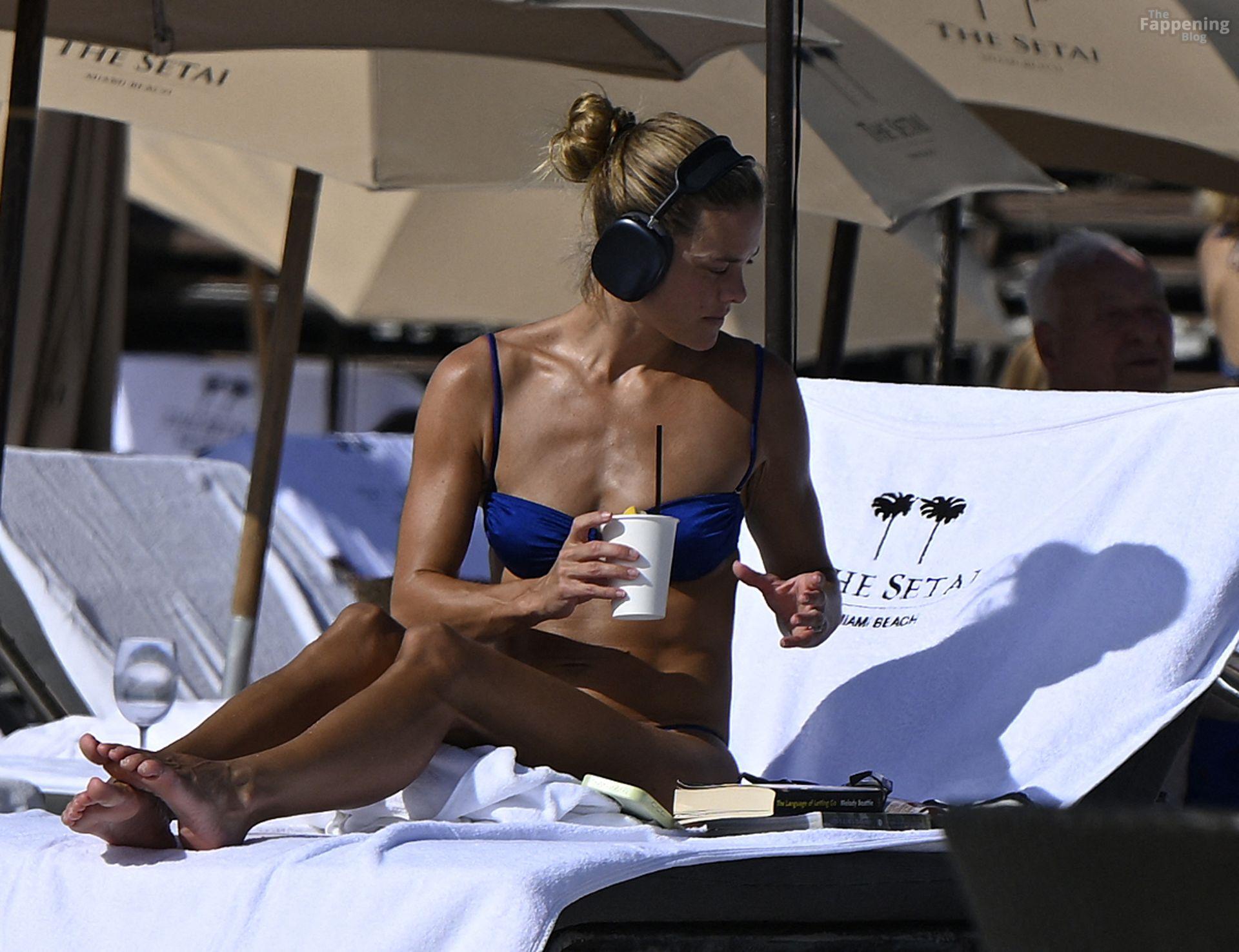 La modella danese Nina Agdal è stata vista mentre si godeva il sole a Miami Beach, indossando un bikini blu prima di cambiarsi in un elegante outfit con stampa leopardata.