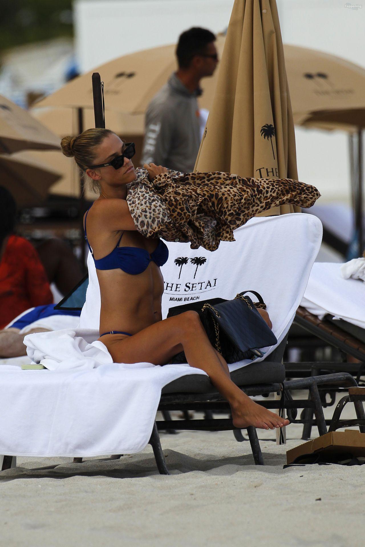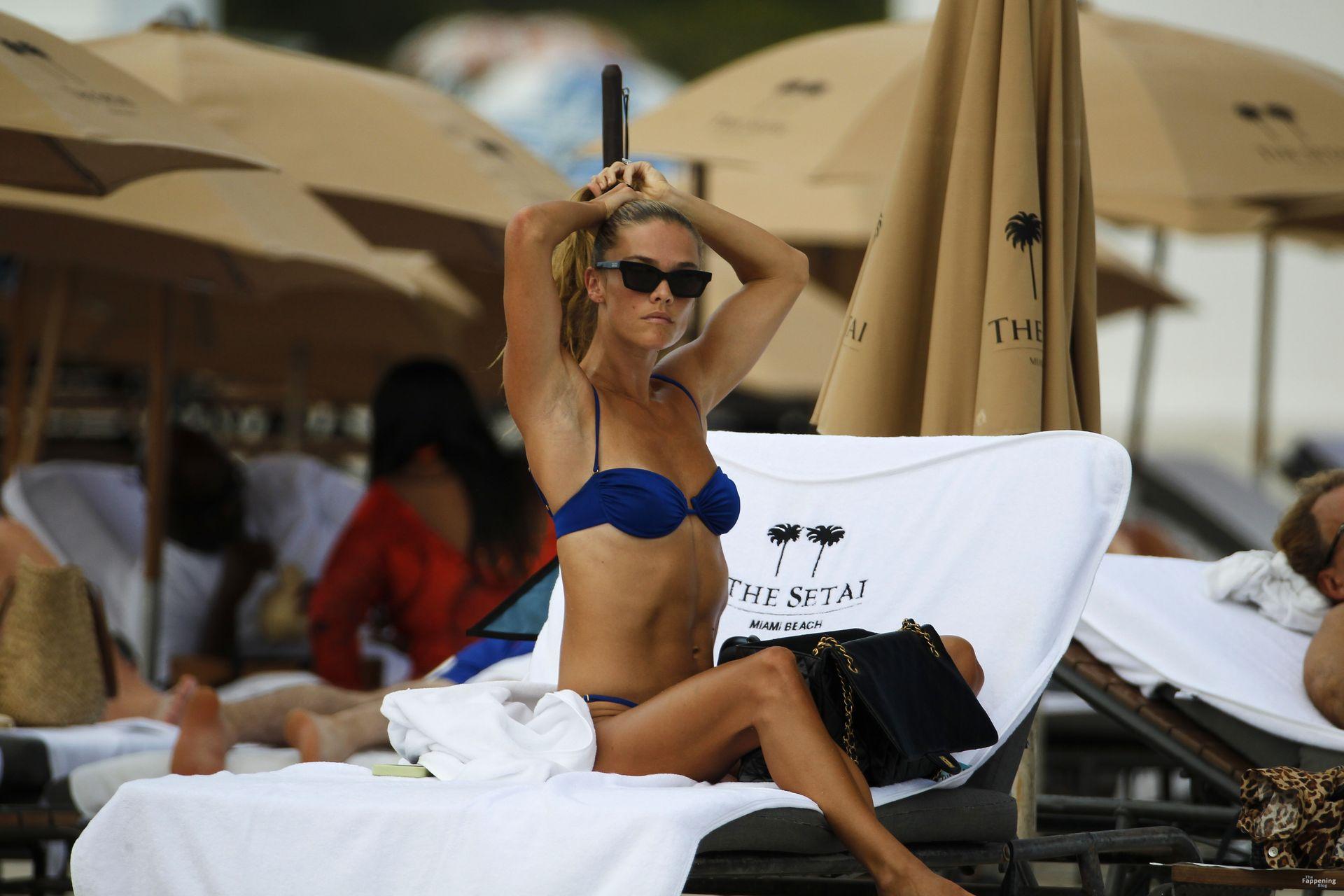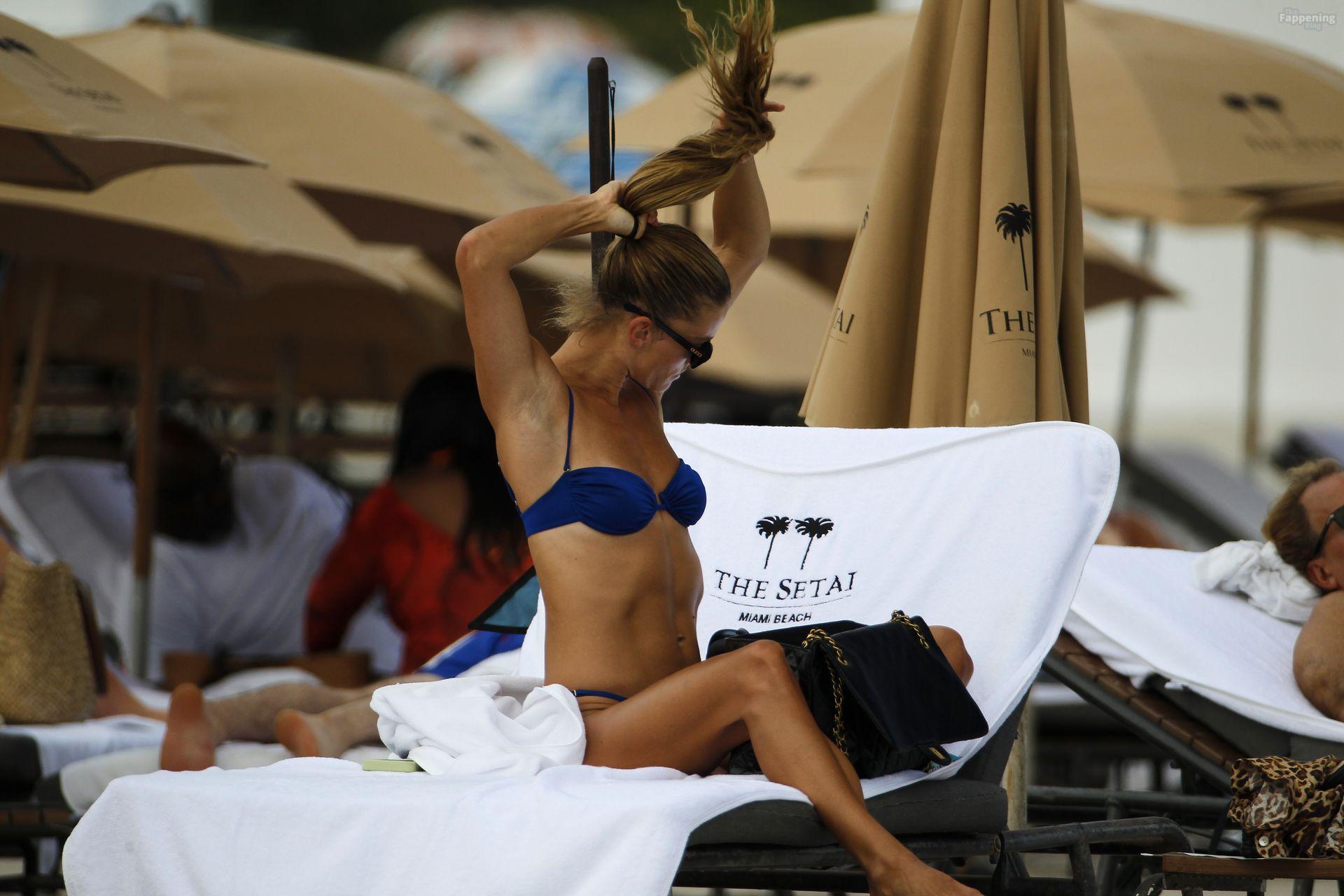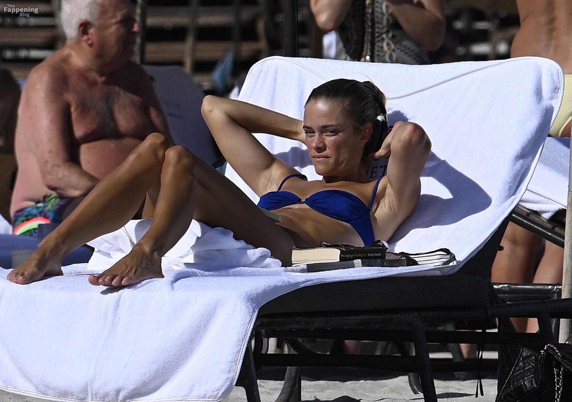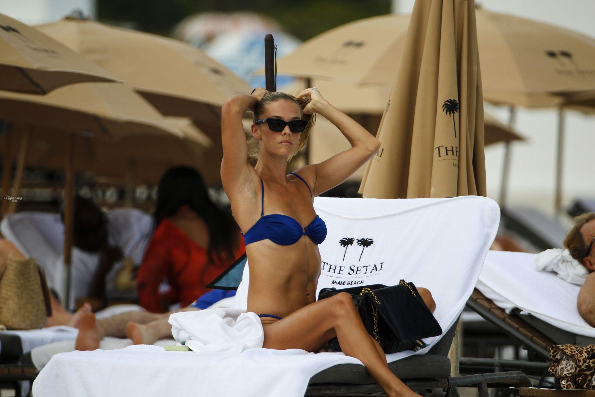 La modella danese Nina Agdal è stata vista mentre si godeva il sole a Miami Beach, indossando un bikini blu prima di cambiarsi in un elegante outfit con stampa leopardata.