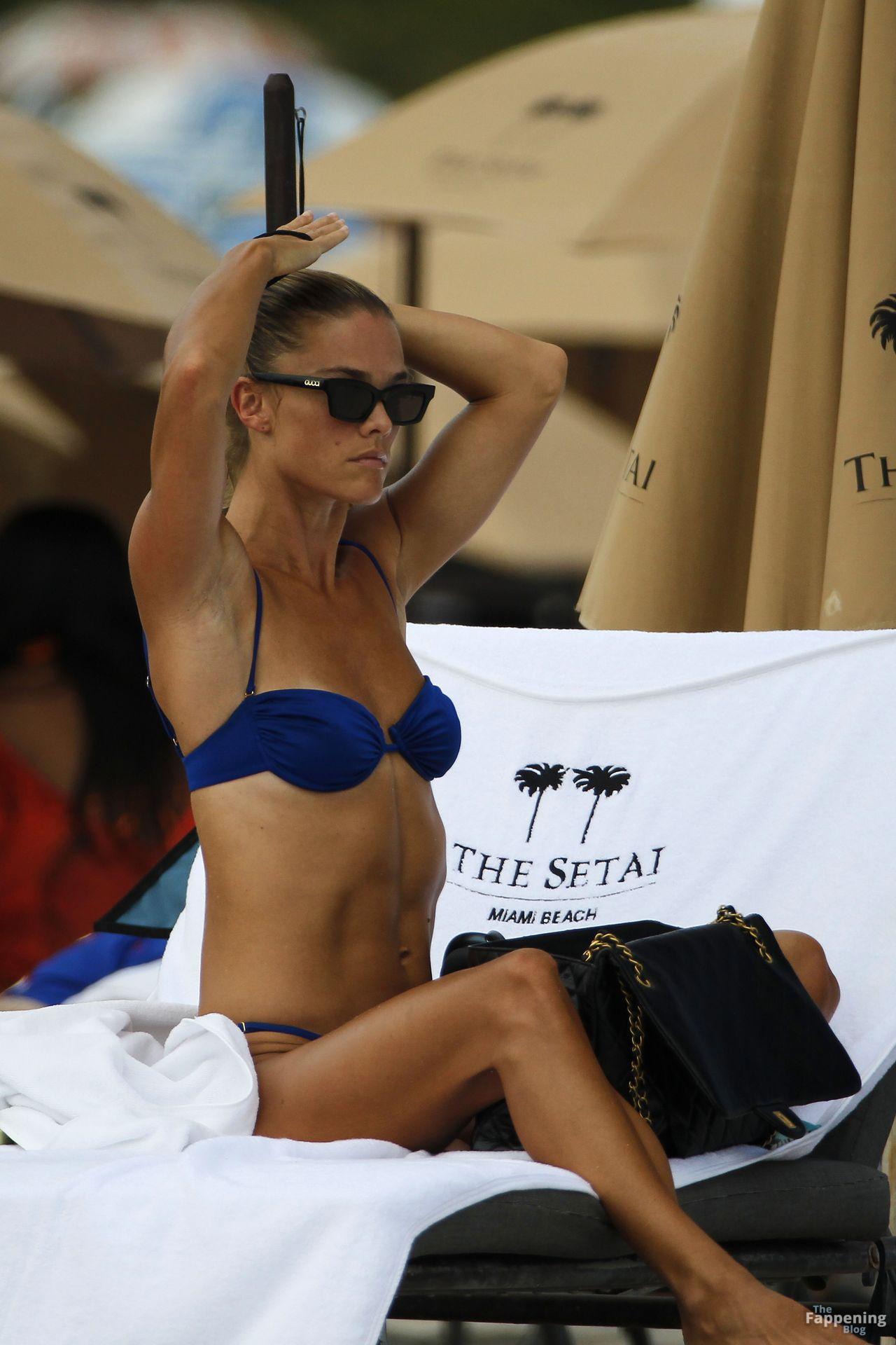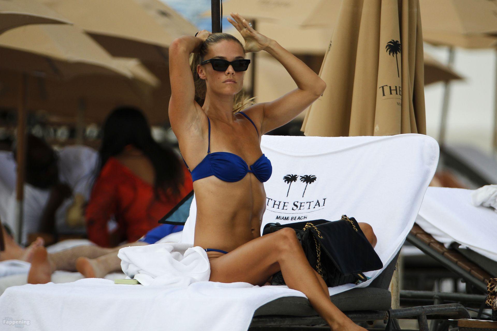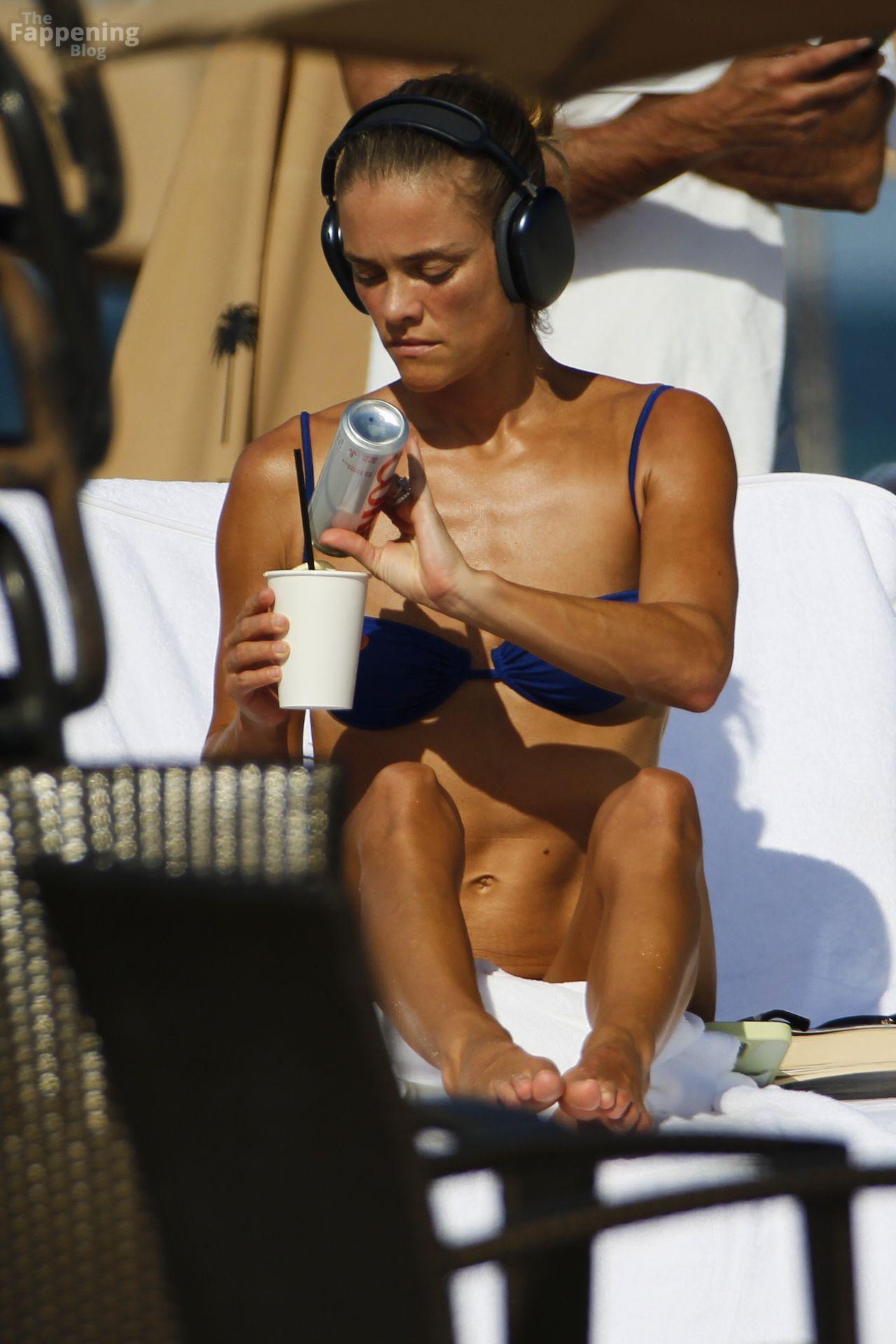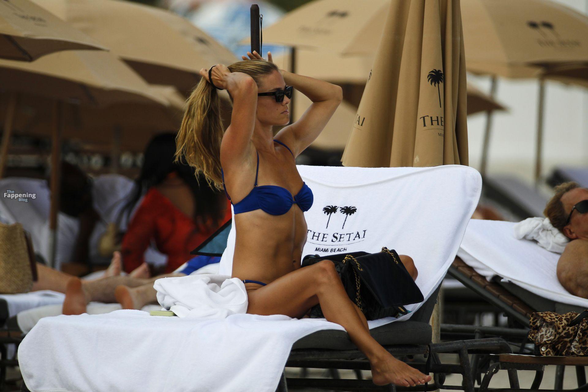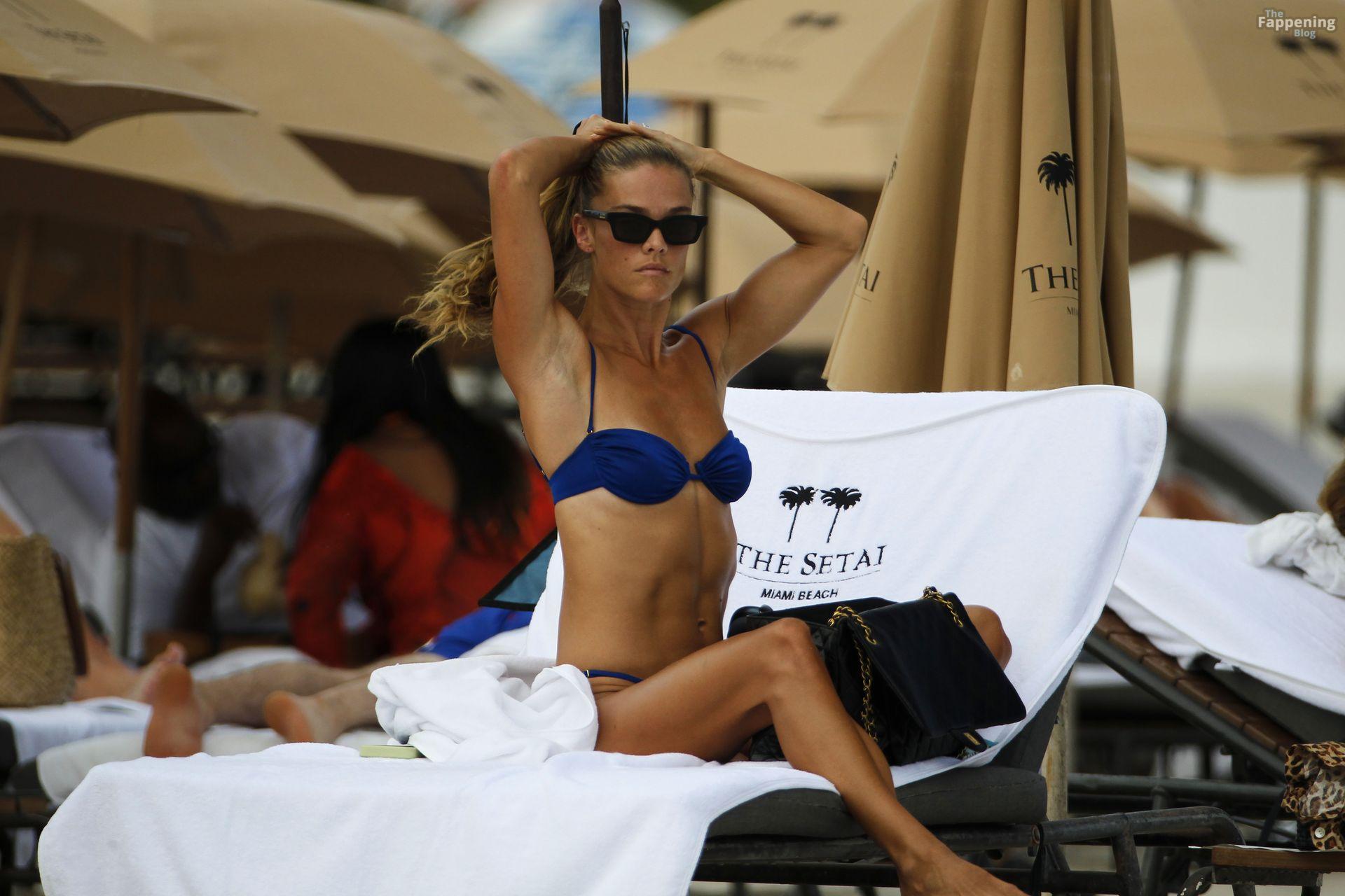La modella danese Nina Agdal è stata vista mentre si godeva il sole a Miami Beach, indossando un bikini blu prima di cambiarsi in un elegante outfit con stampa leopardata.