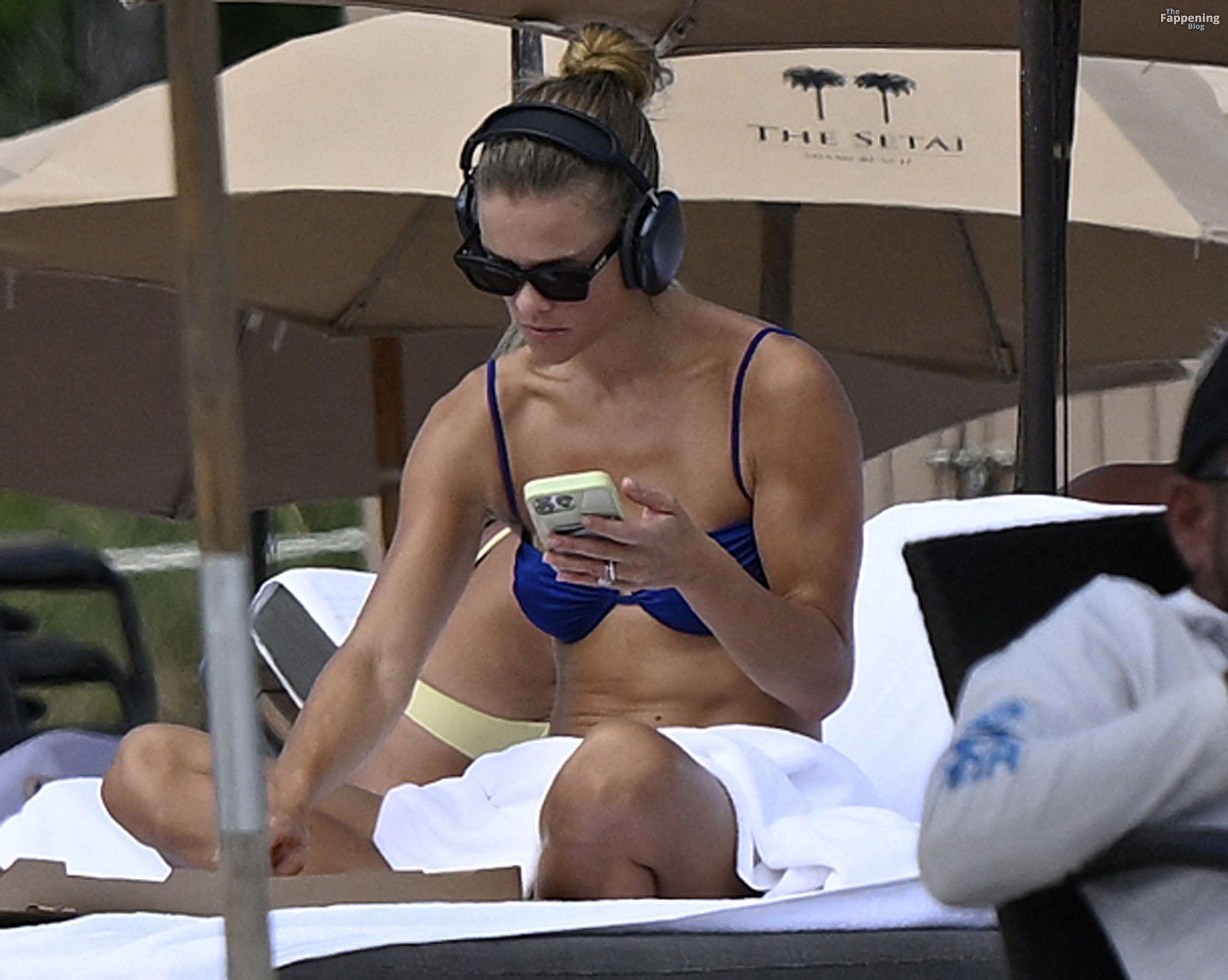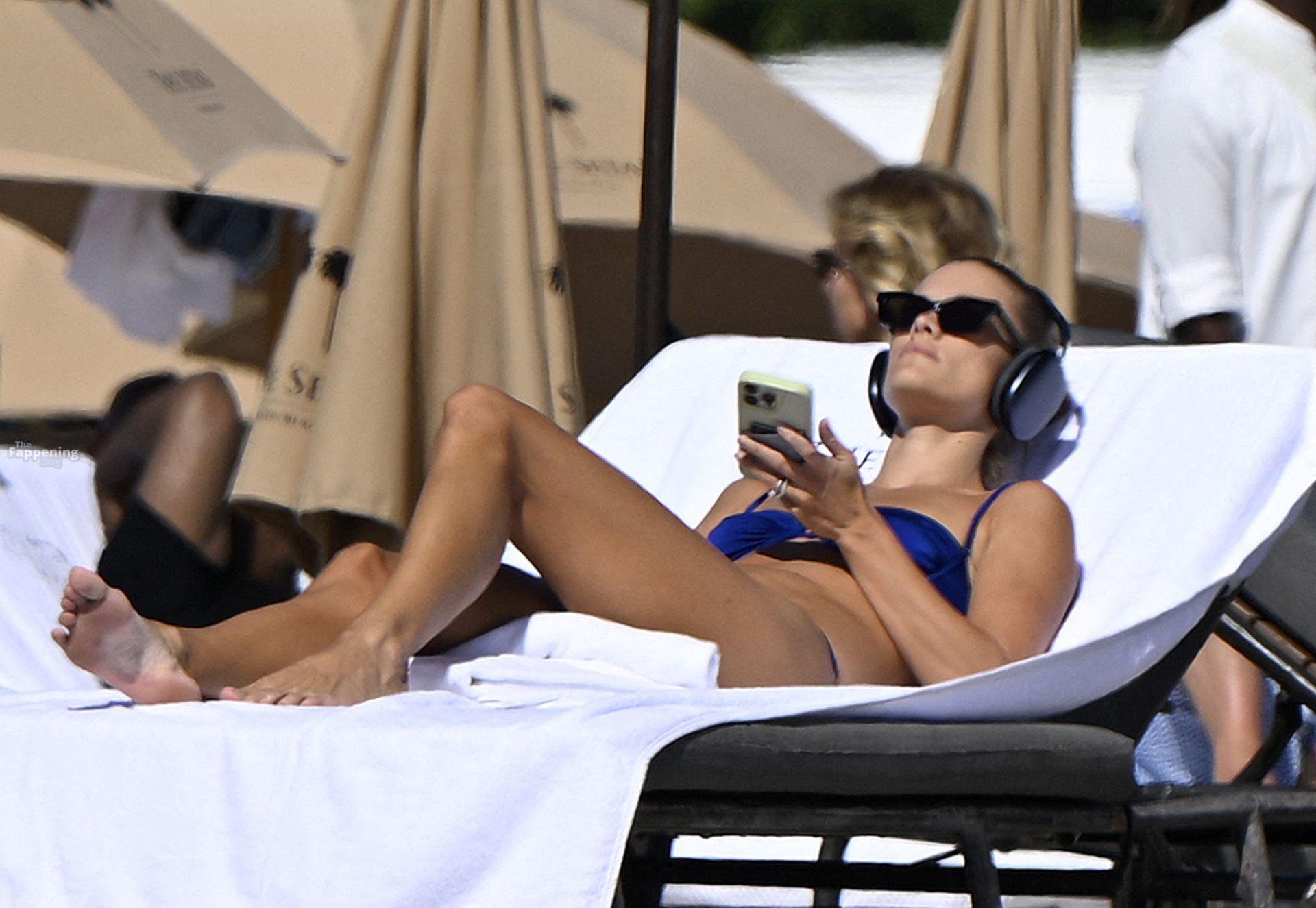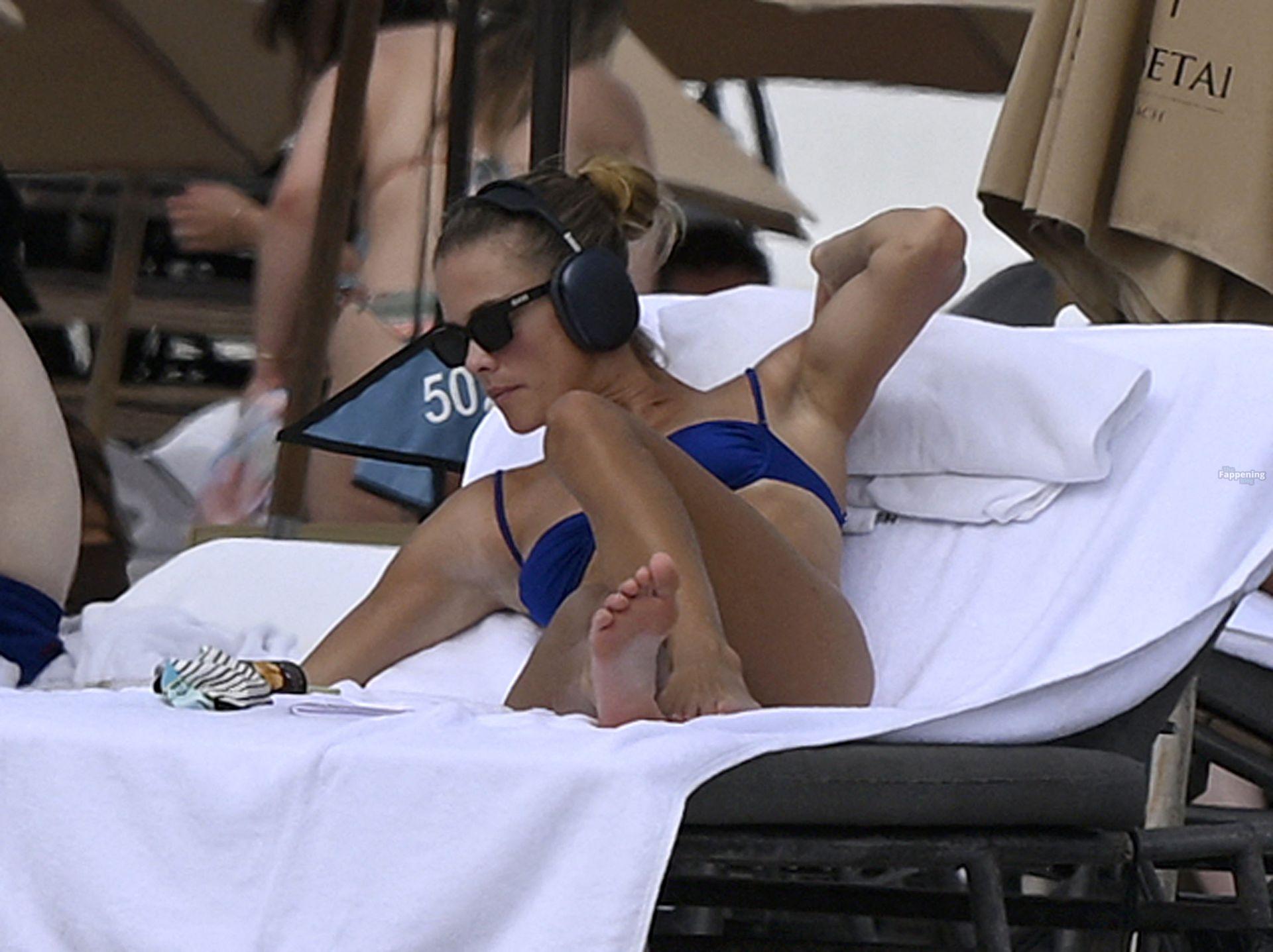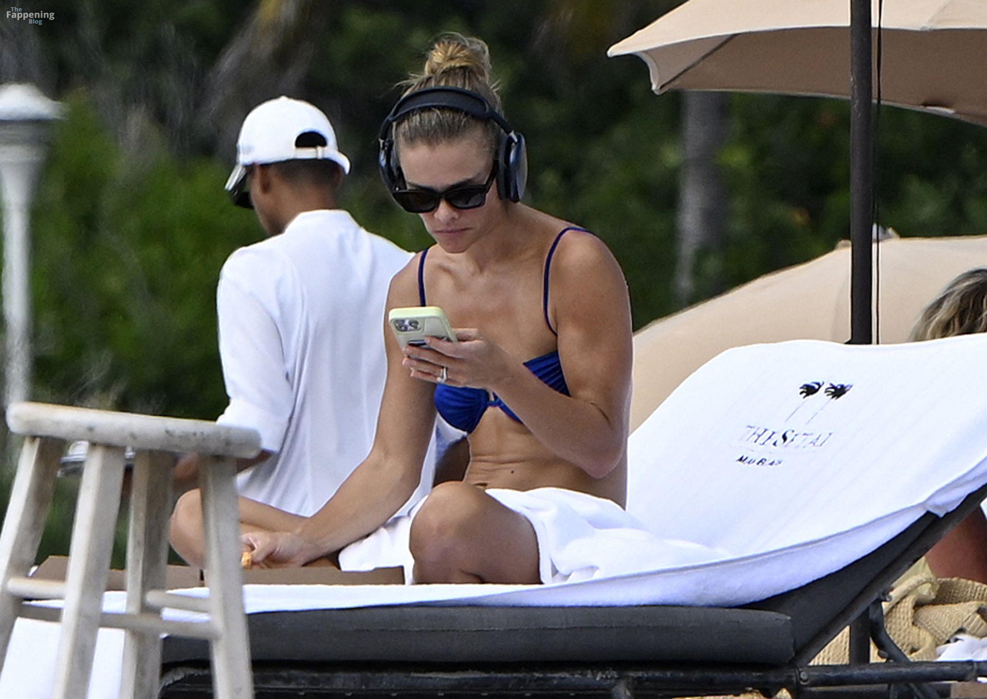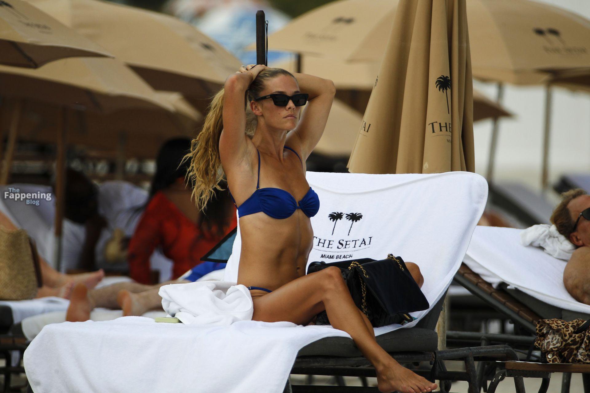 La modella danese Nina Agdal è stata vista mentre si godeva il sole a Miami Beach, indossando un bikini blu prima di cambiarsi in un elegante outfit con stampa leopardata.