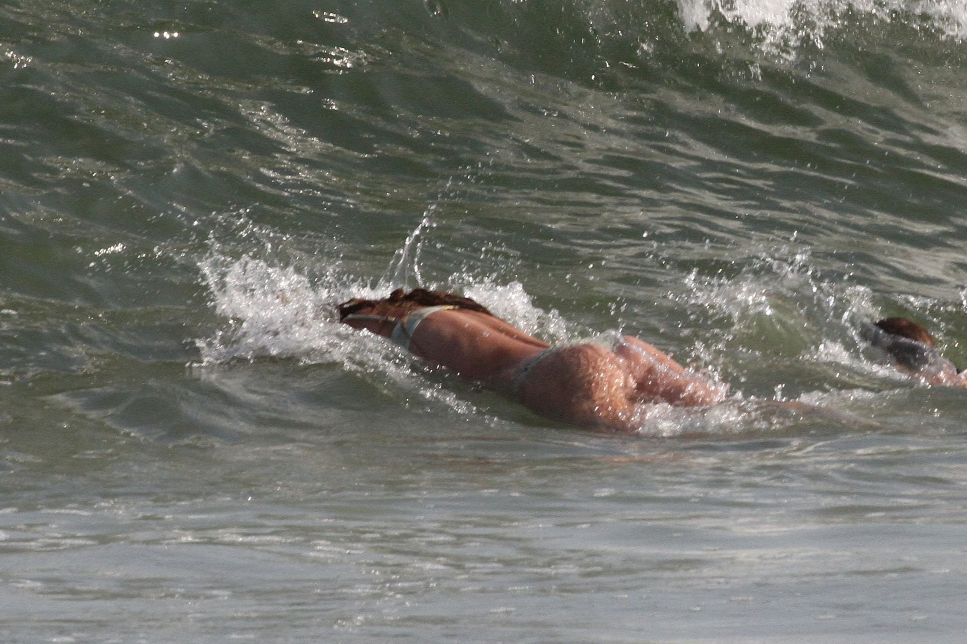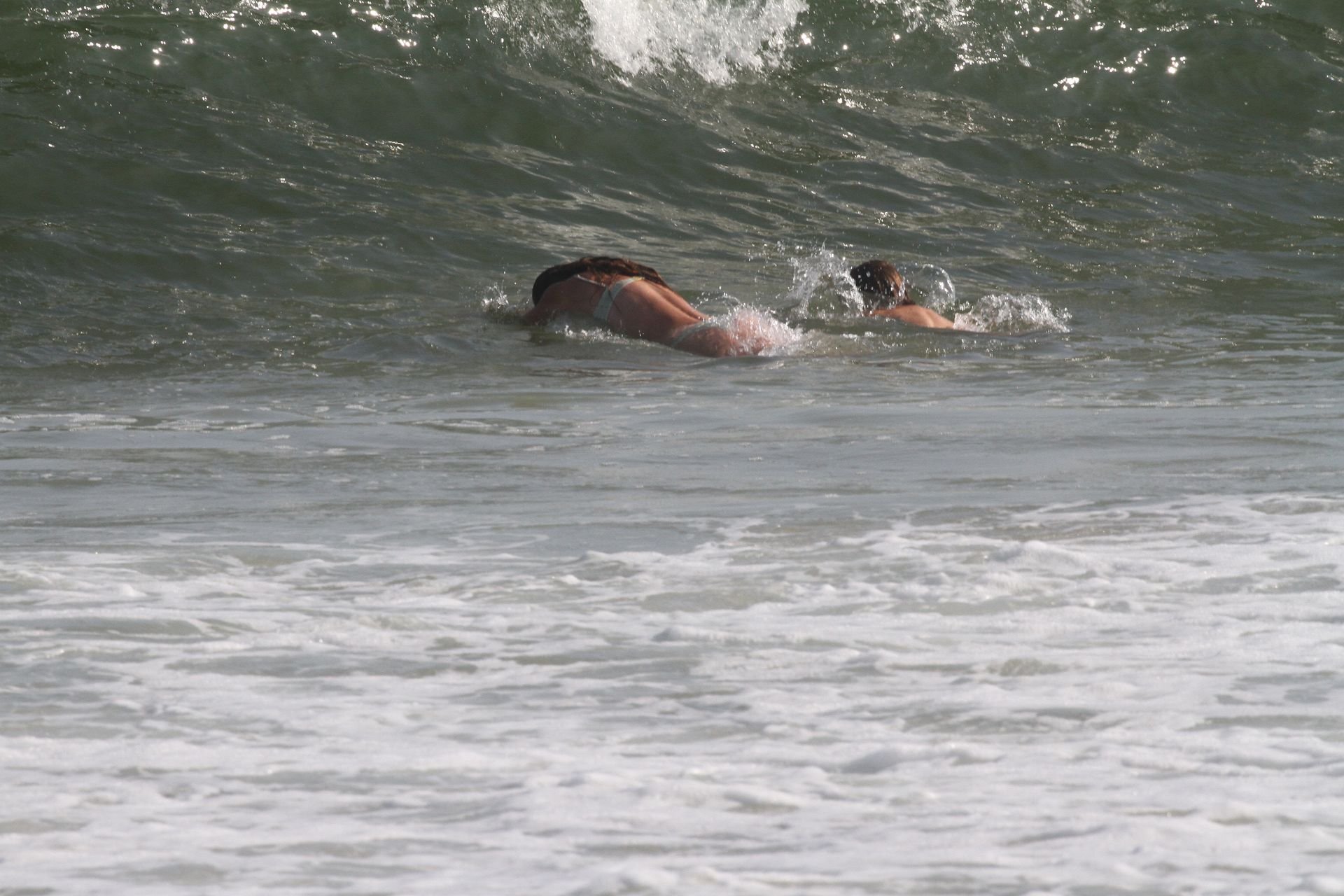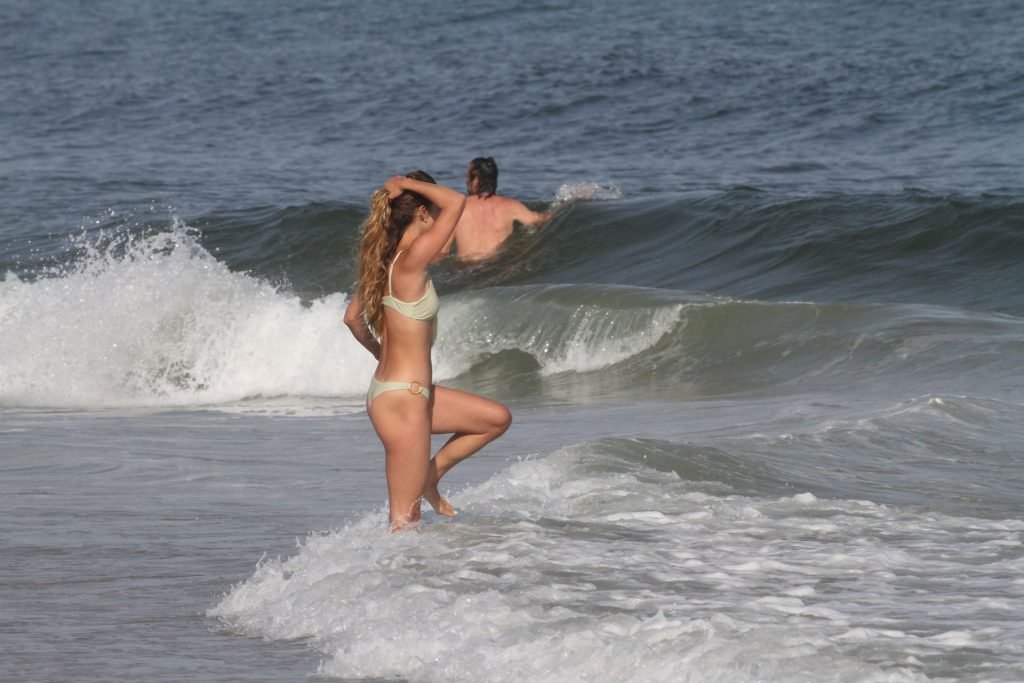 La modella Nina Agdal è stata vista in un momento di affetto pubblico con il suo fidanzato Jack Brinkley prima di fare un bagno negli Hamptons, 07/09/2019.