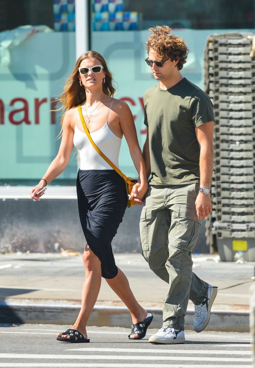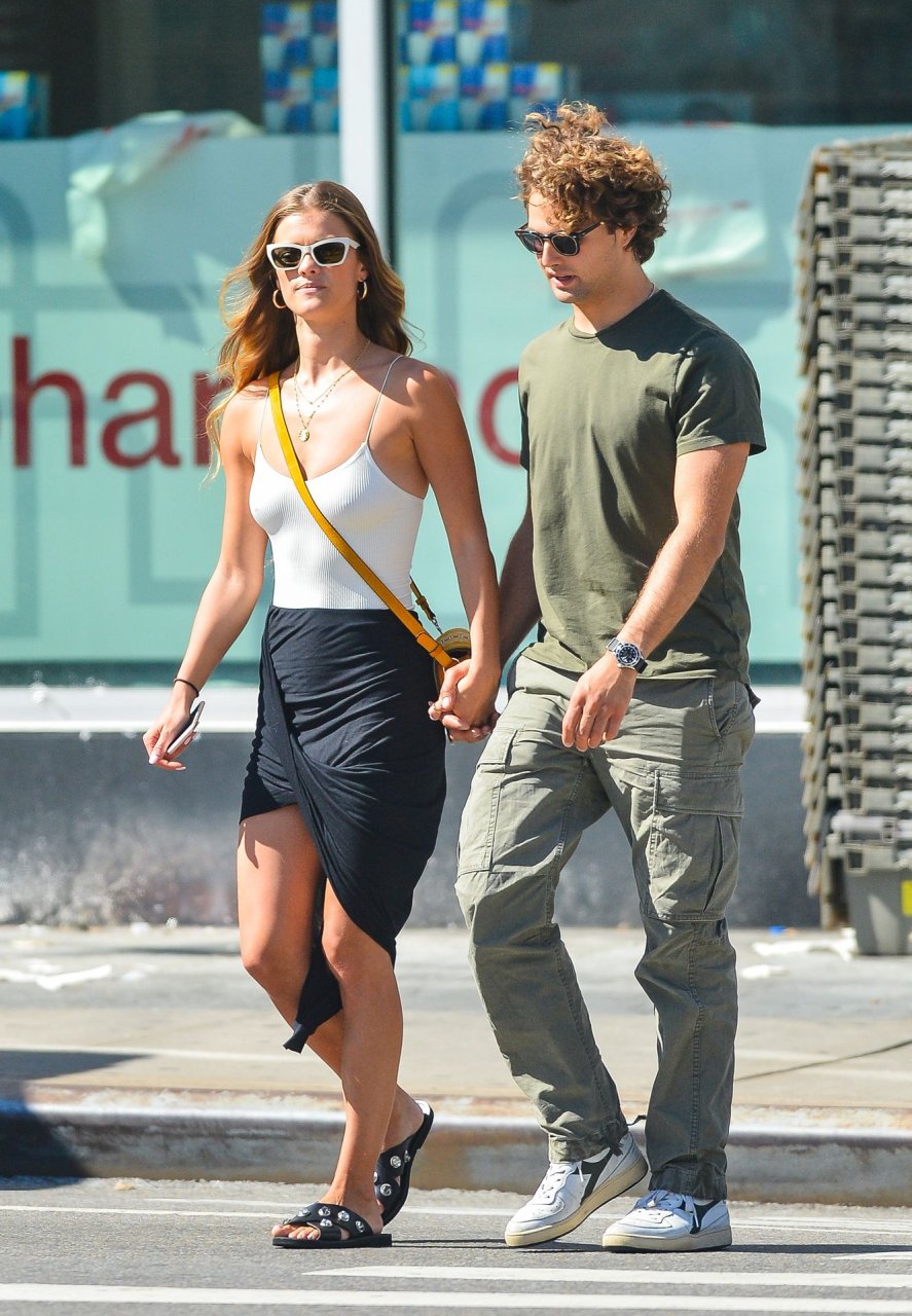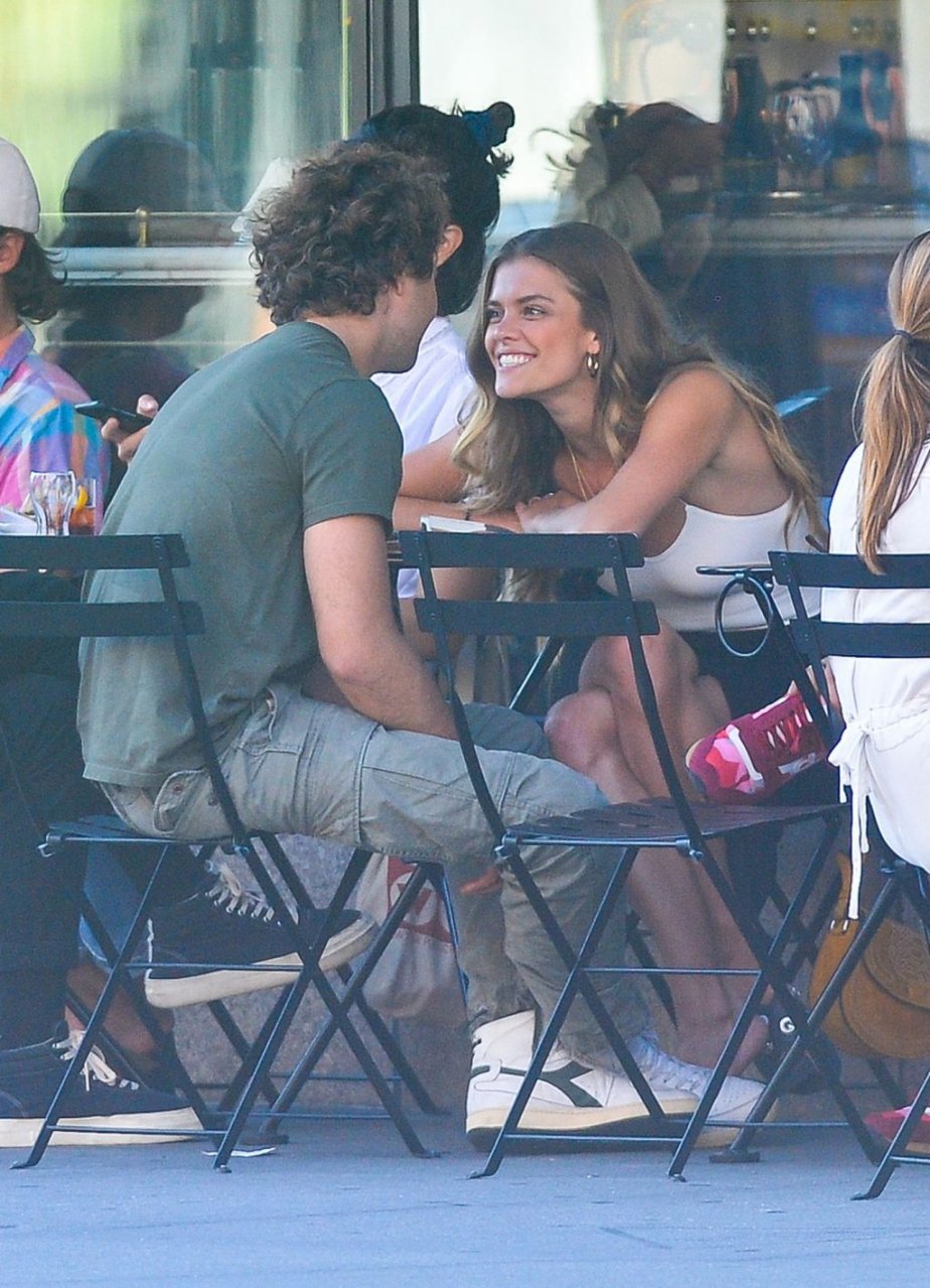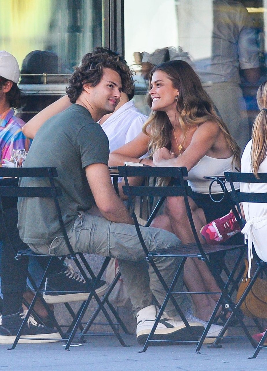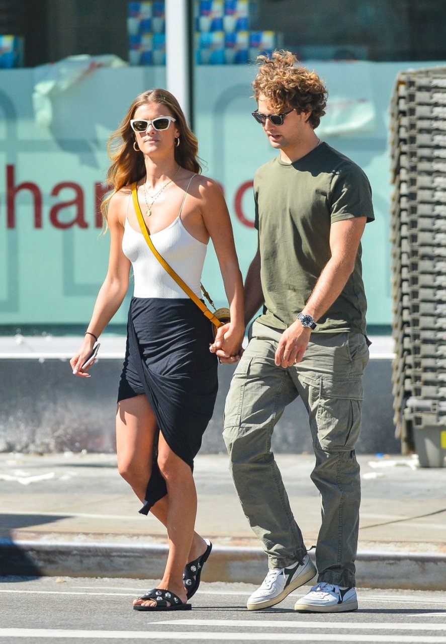Nina Agdal e Jack Brinkley si godono un bacio durante il pranzo a New York City, 29/08/2019. La coppia si è tenuta per mano durante una passeggiata romantica attraverso il basso Manhattan.