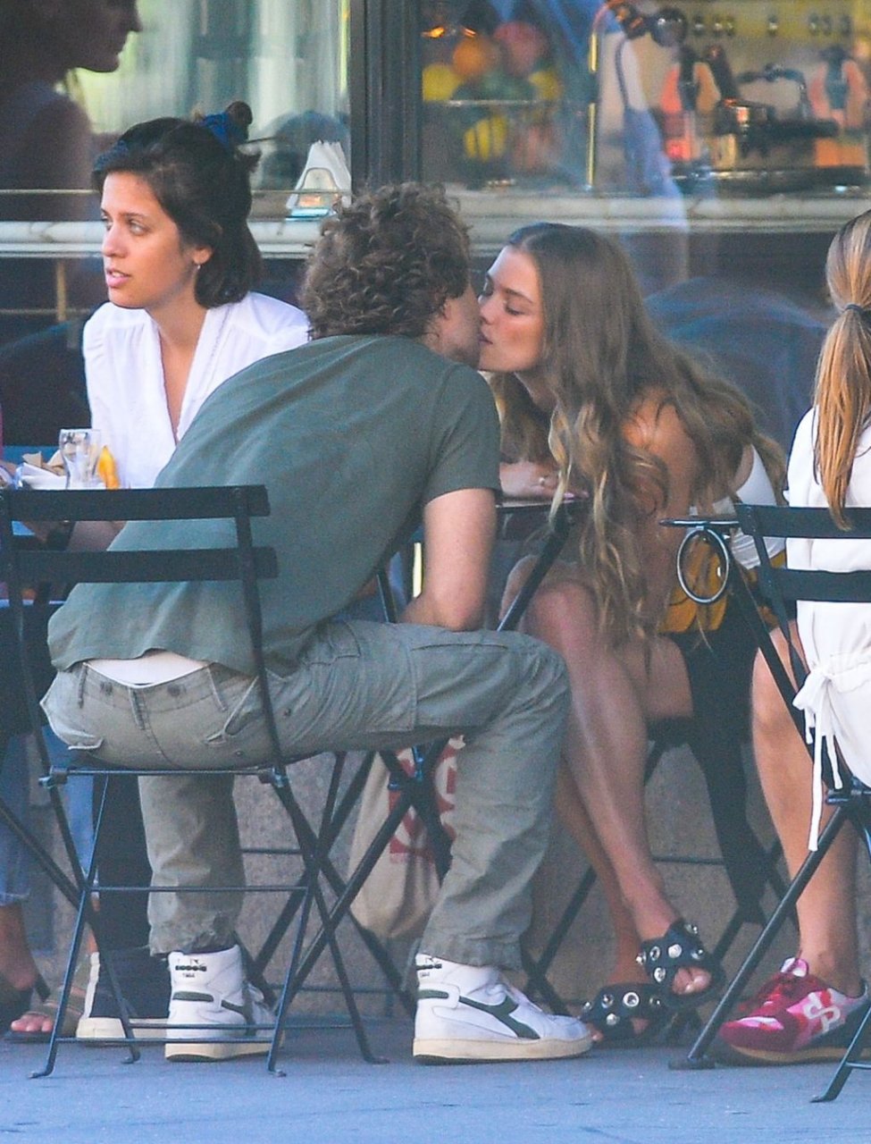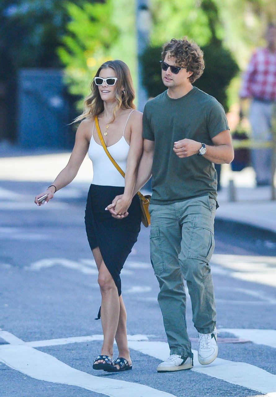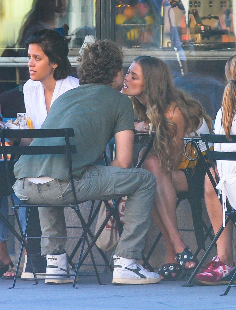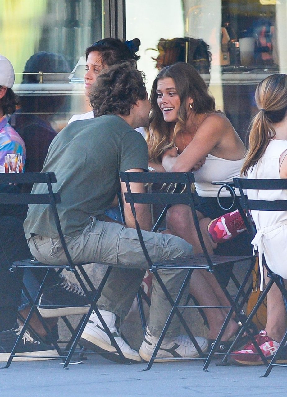Nina Agdal e Jack Brinkley si godono un bacio durante il pranzo a New York City, 29/08/2019. La coppia si è tenuta per mano durante una passeggiata romantica attraverso il basso Manhattan.