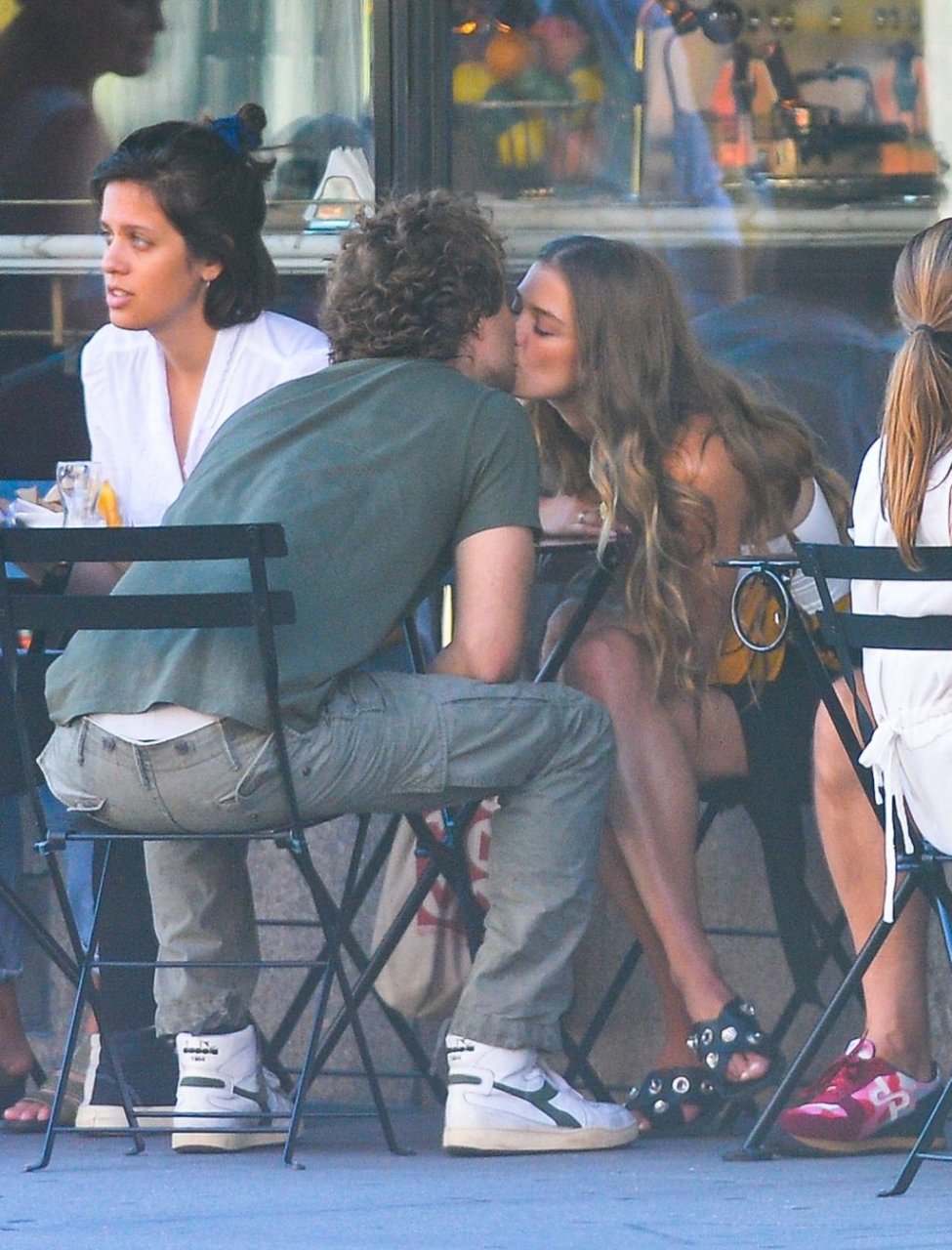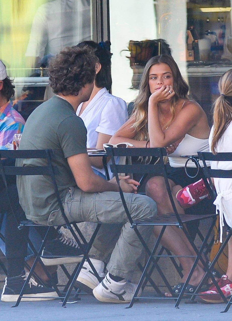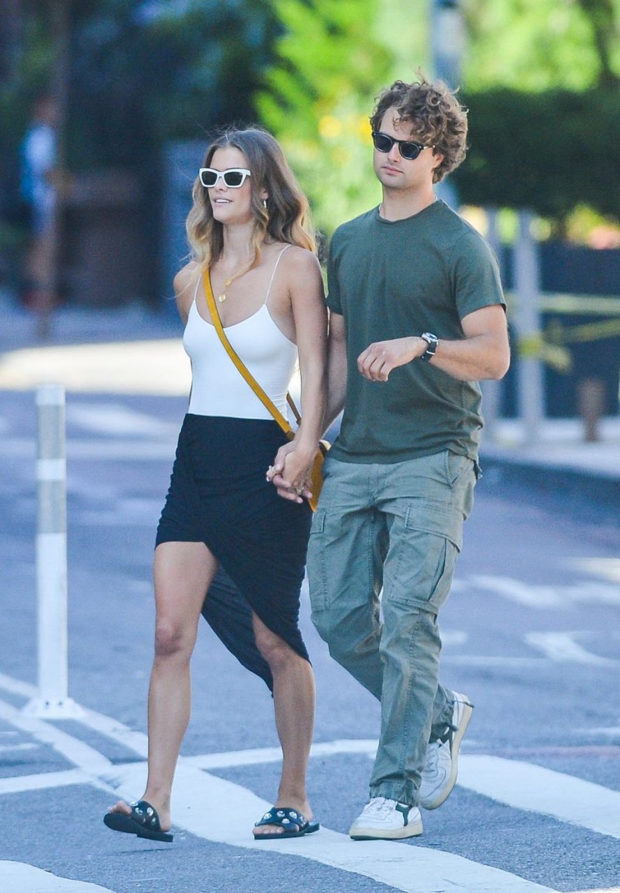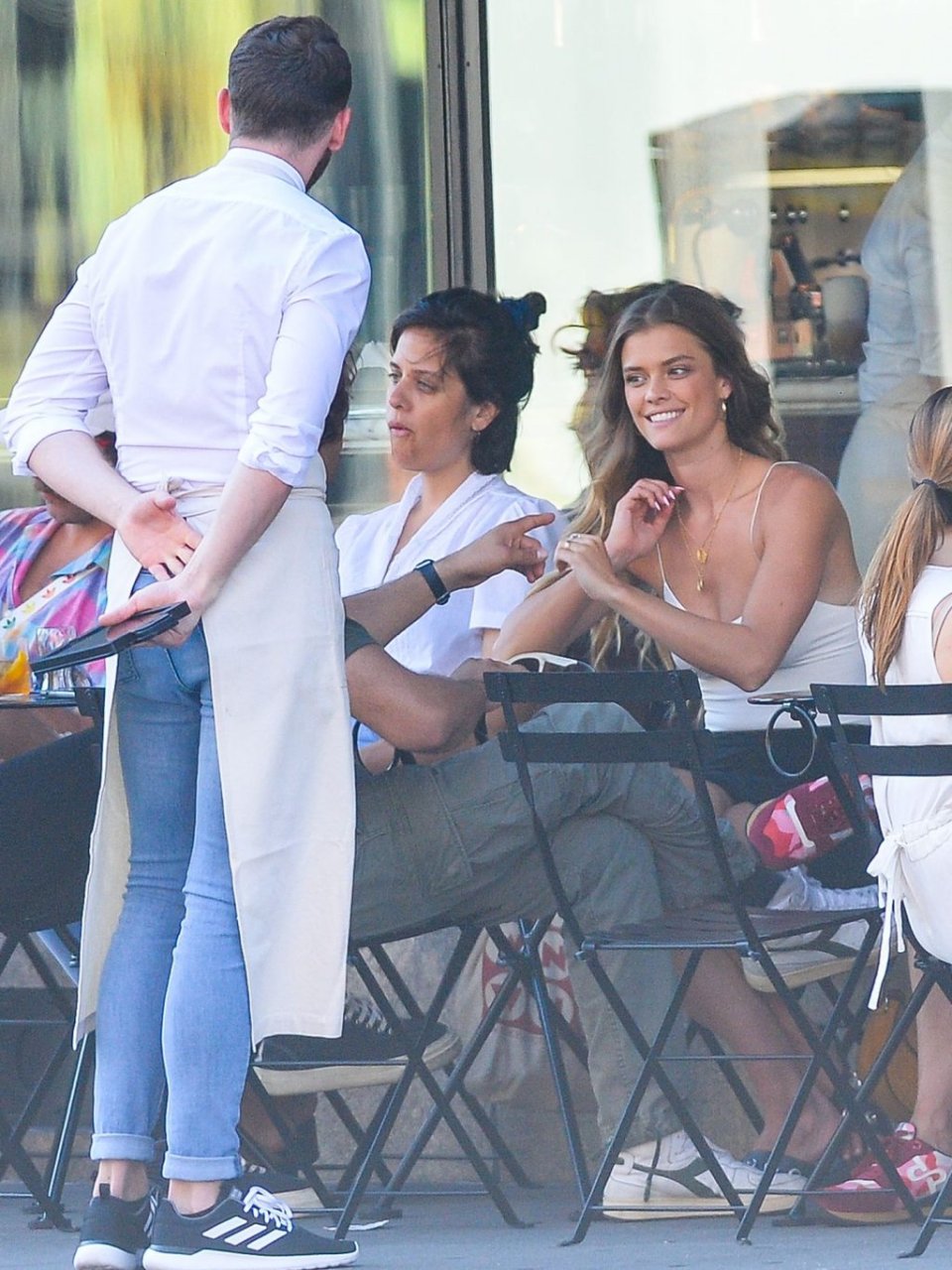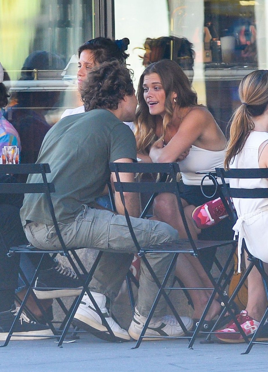 Nina Agdal e Jack Brinkley si godono un bacio durante il pranzo a New York City, 29/08/2019. La coppia si è tenuta per mano durante una passeggiata romantica attraverso il basso Manhattan.