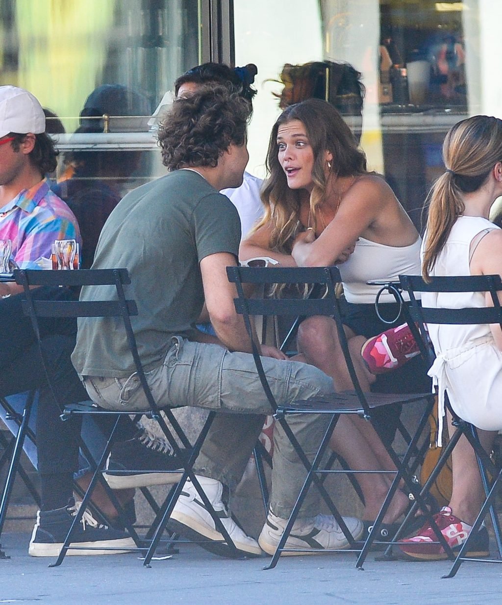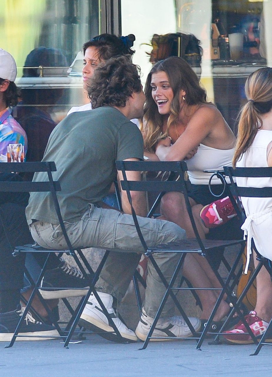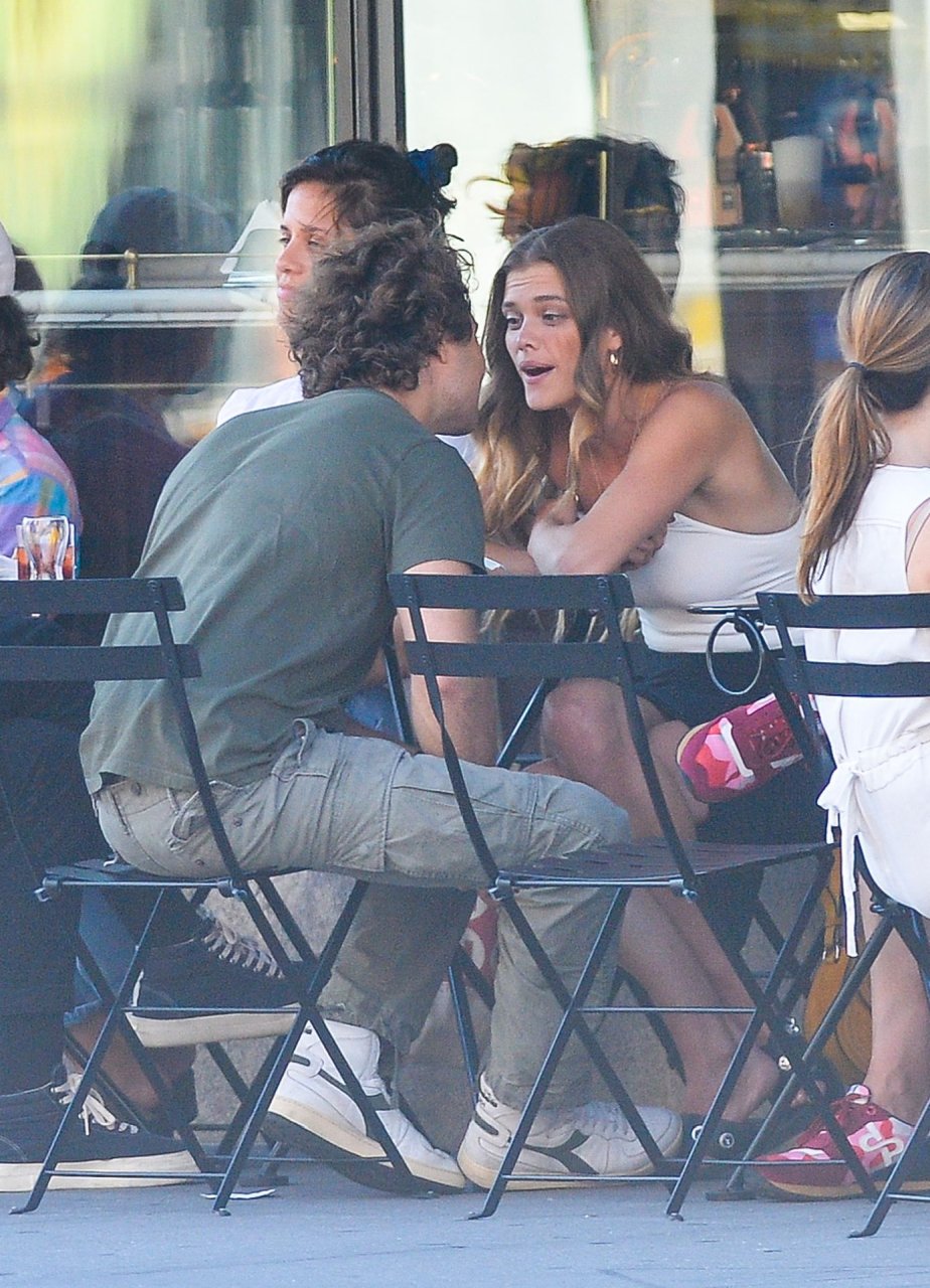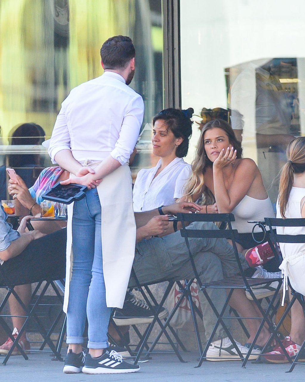 Nina Agdal e Jack Brinkley si godono un bacio durante il pranzo a New York City, 29/08/2019. La coppia si è tenuta per mano durante una passeggiata romantica attraverso il basso Manhattan.
