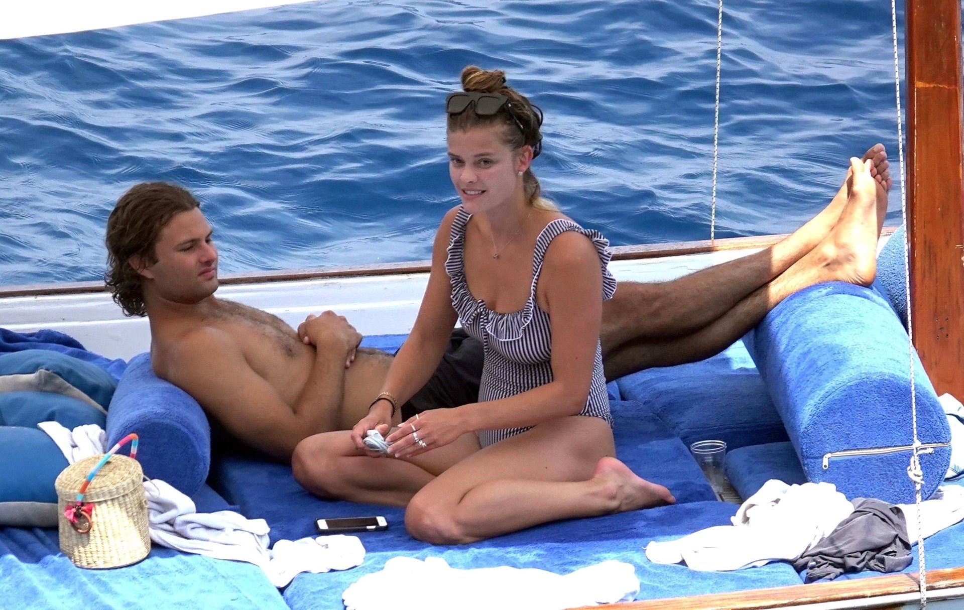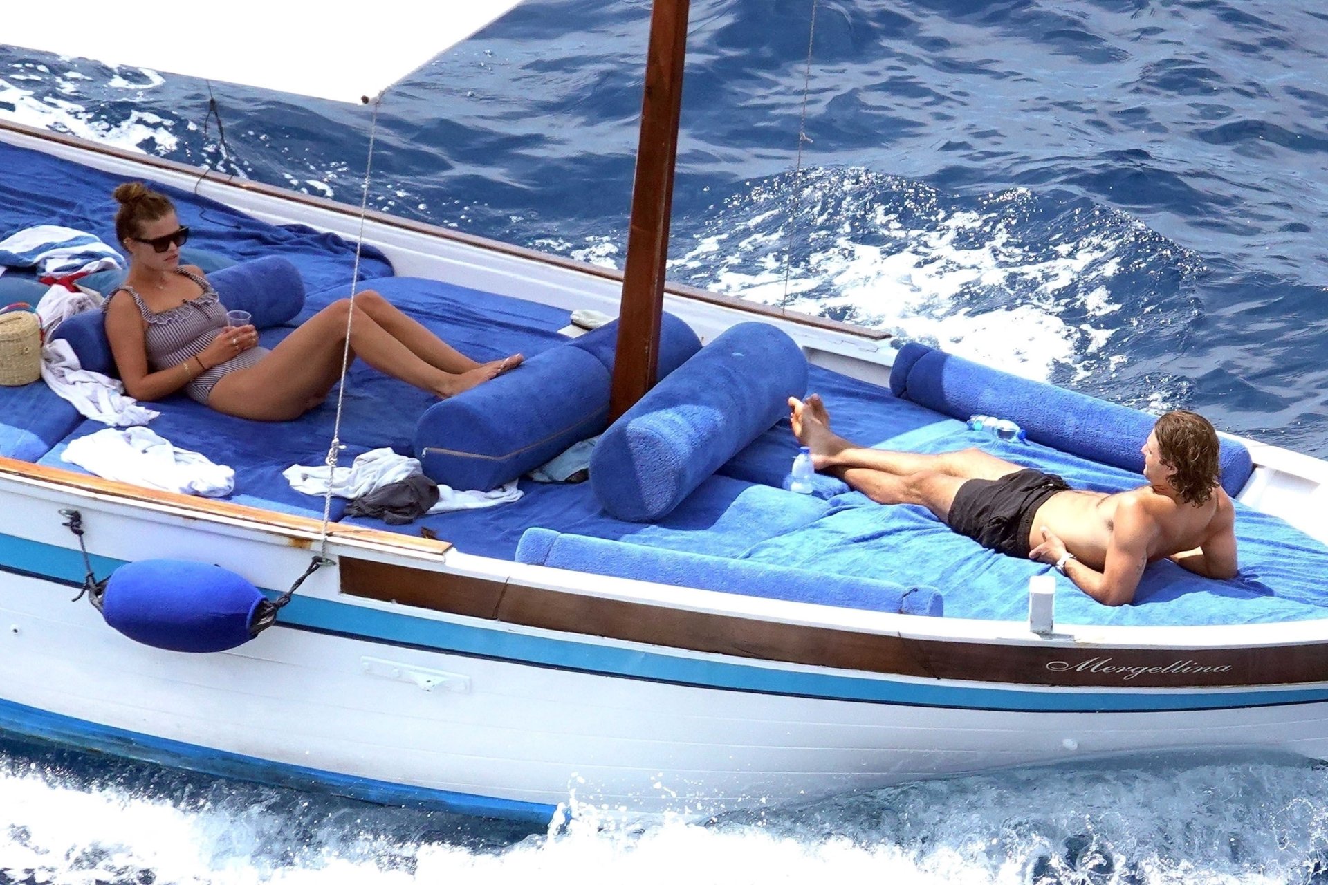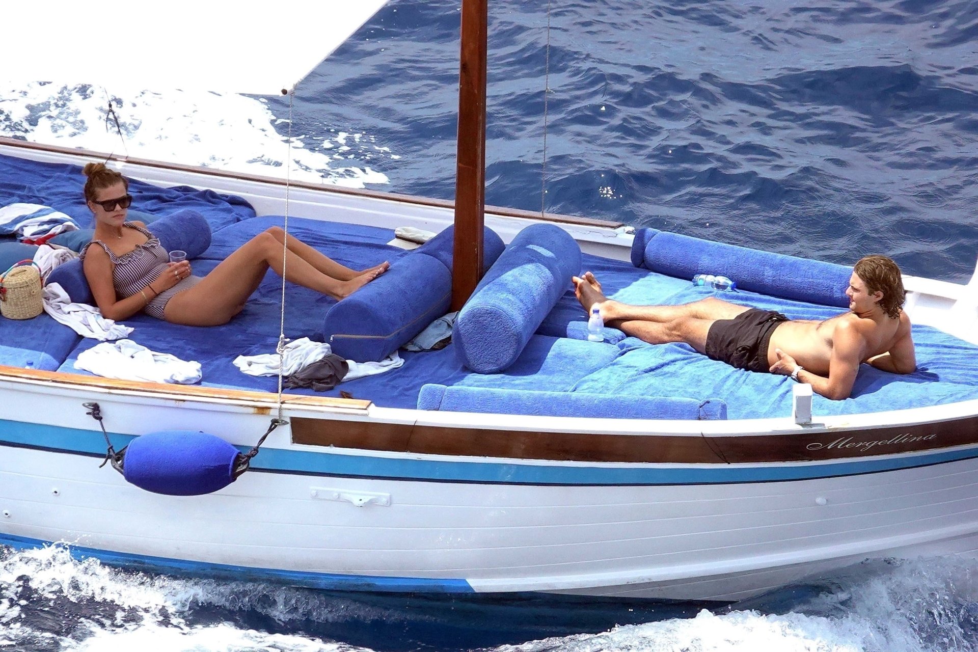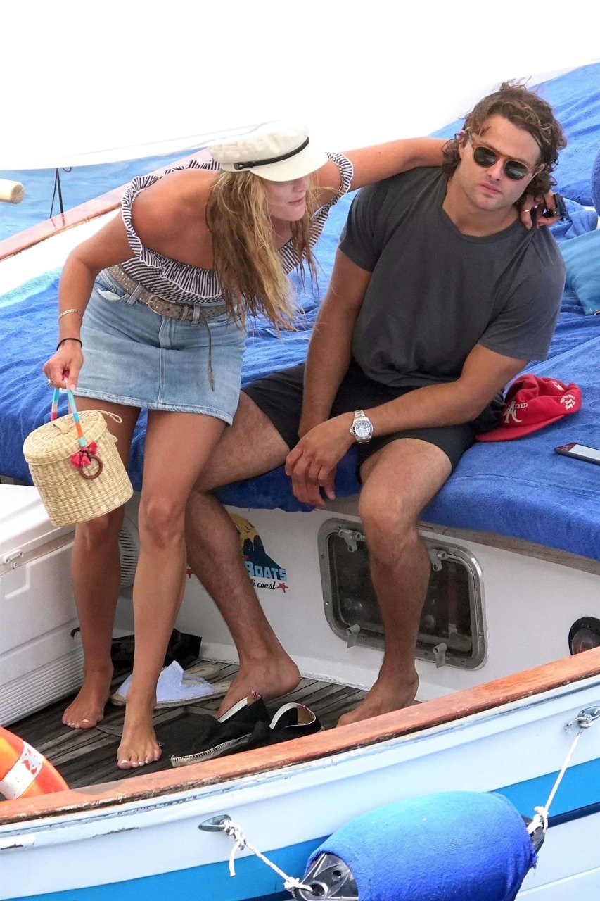 La modella danese Nina Agdal (26) si coccola con il fidanzato e figlio di Christie Brinkley, Jack Brinkley-Cook. La coppia innamorata è in vacanza a rilassarsi sulla loro barca godendosi il sole italiano a Capri.