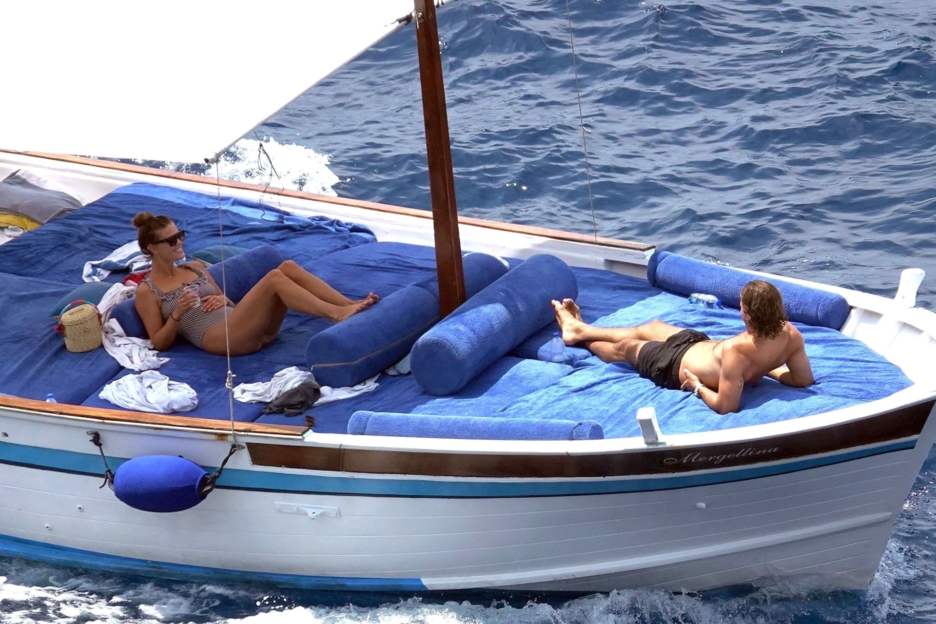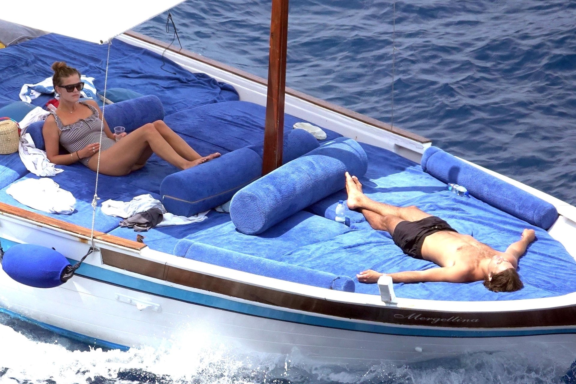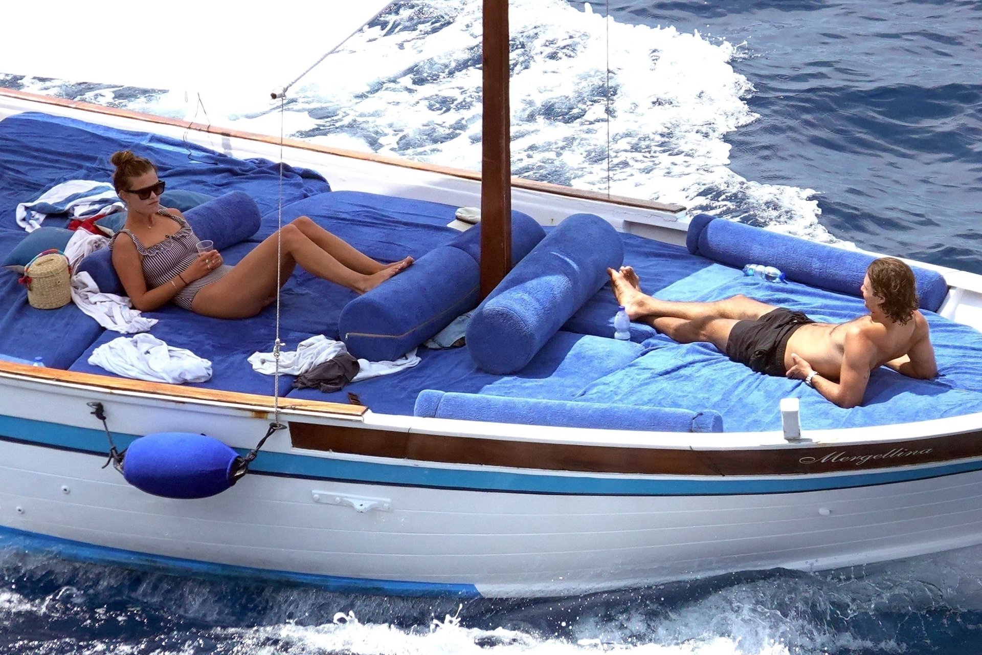 La modella danese Nina Agdal (26) si coccola con il fidanzato e figlio di Christie Brinkley, Jack Brinkley-Cook. La coppia innamorata è in vacanza a rilassarsi sulla loro barca godendosi il sole italiano a Capri.