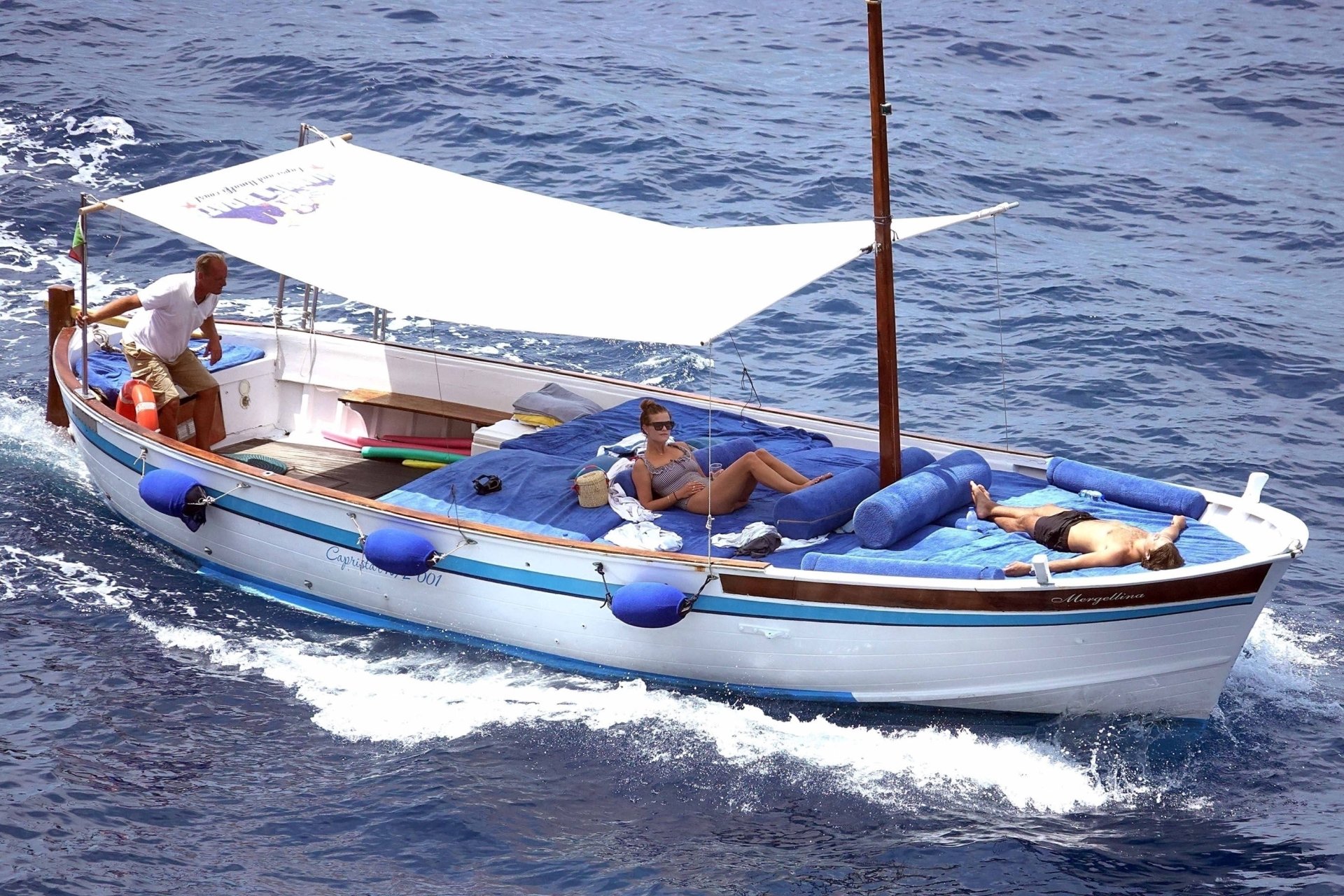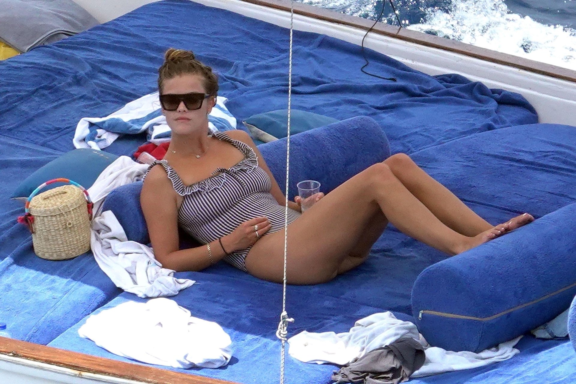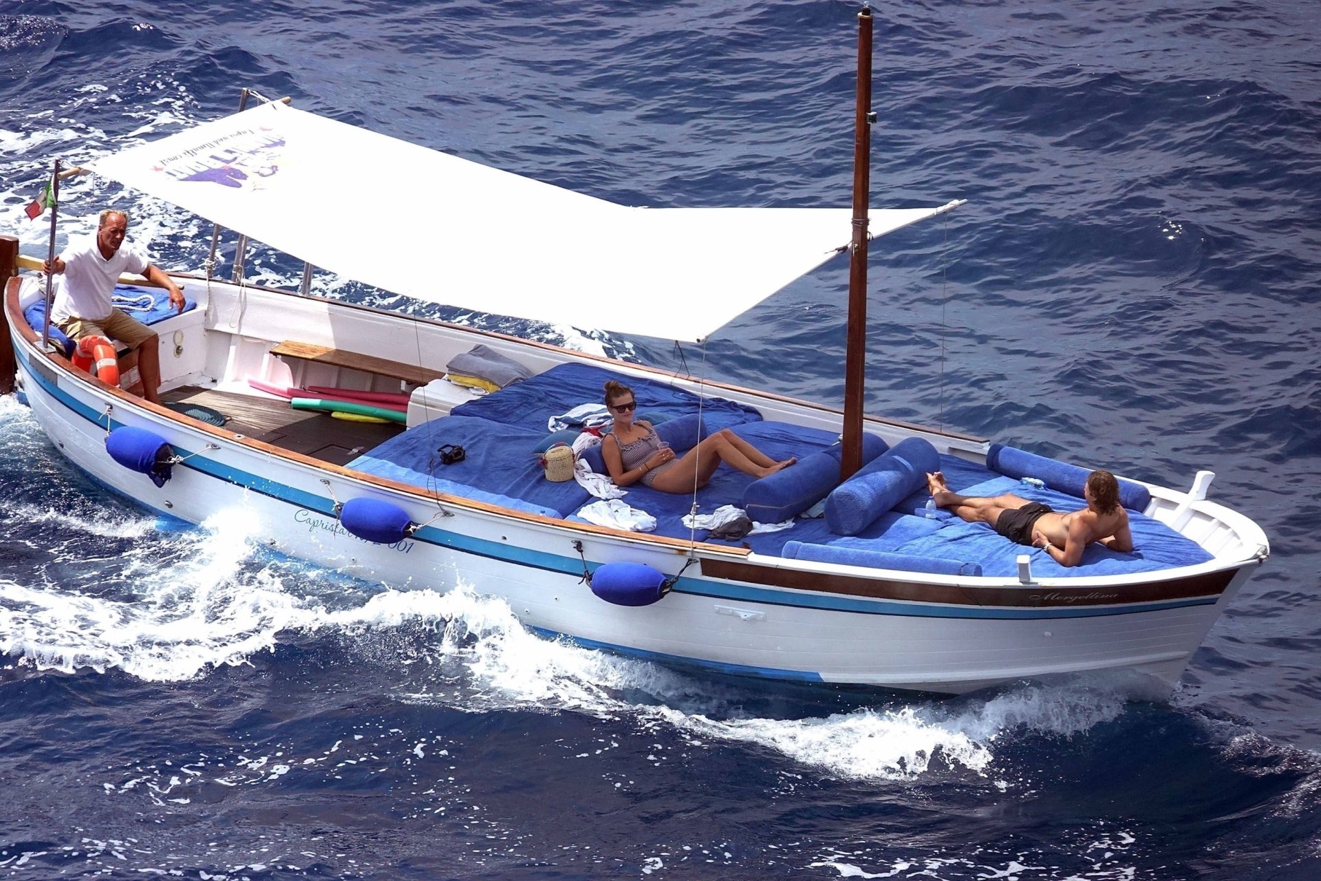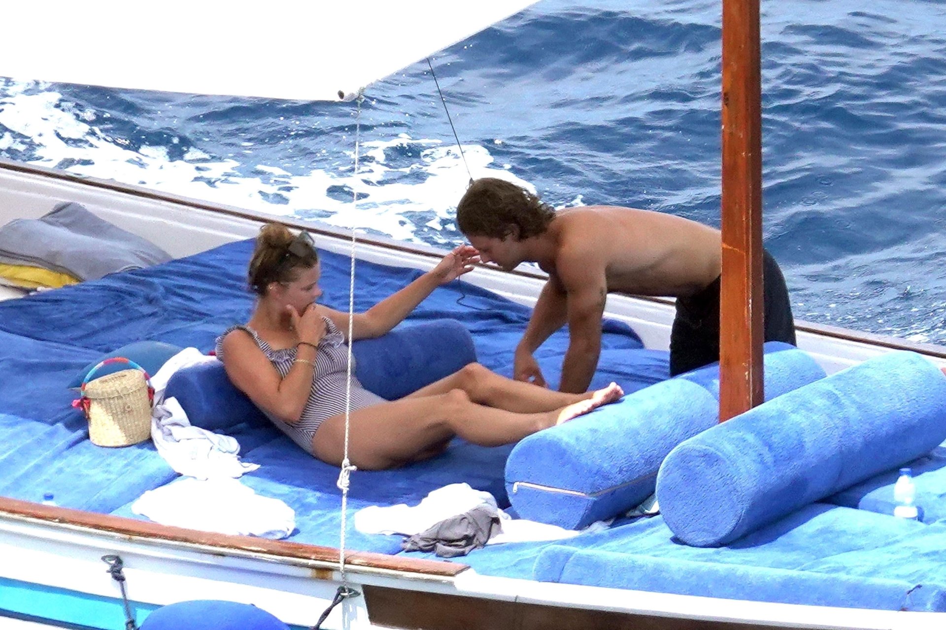 La modella danese Nina Agdal (26) si coccola con il fidanzato e figlio di Christie Brinkley, Jack Brinkley-Cook. La coppia innamorata è in vacanza a rilassarsi sulla loro barca godendosi il sole italiano a Capri.