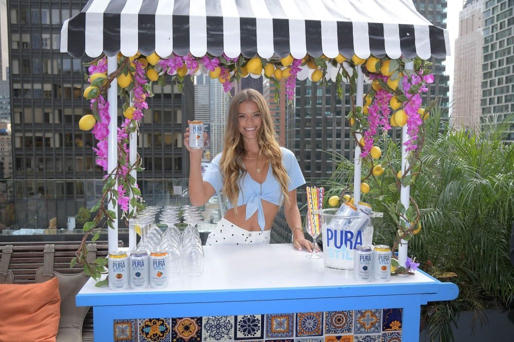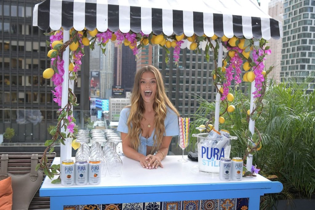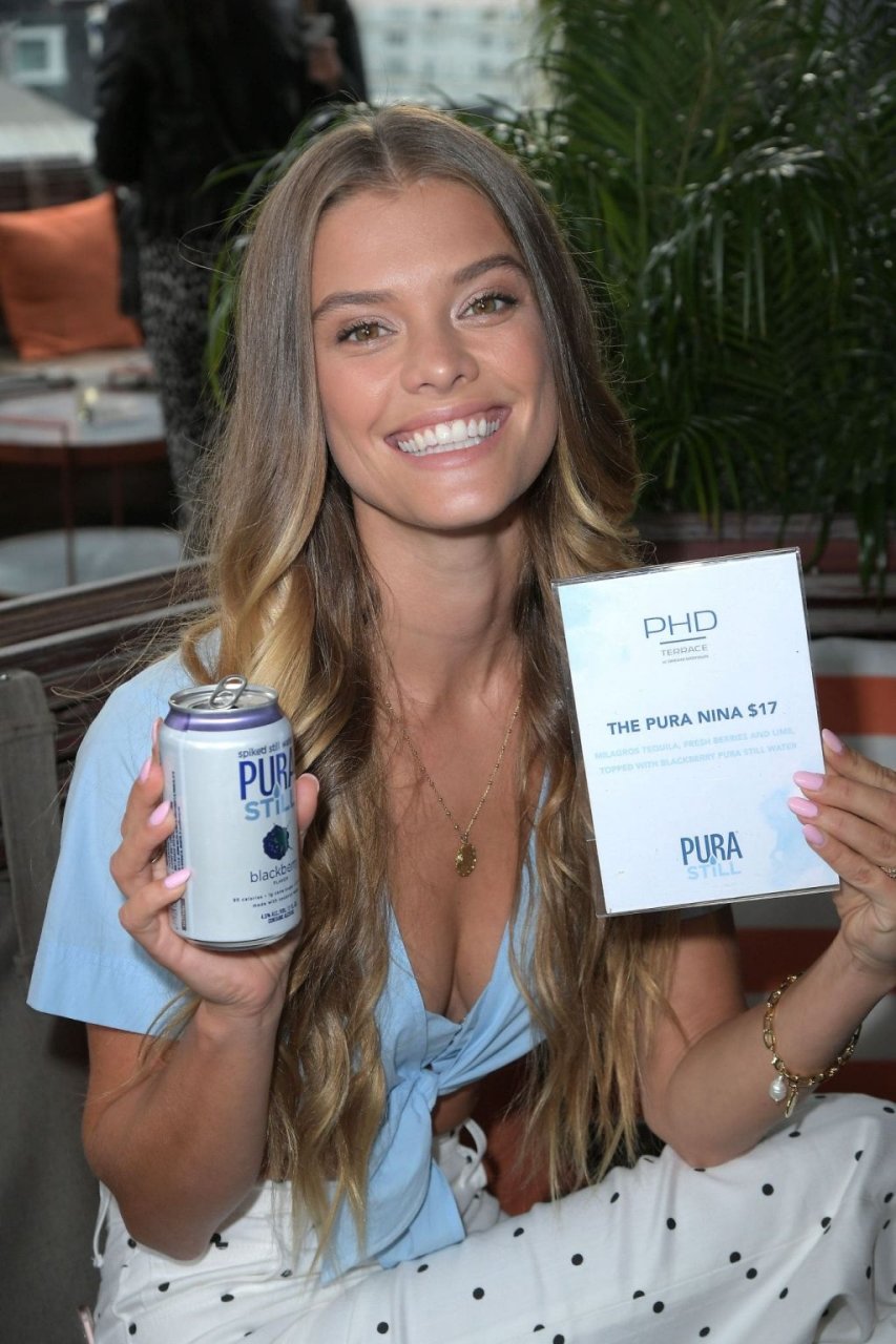 Nina Agdal è stata vista al Sip on Summer con Pura Still a New York, 27/08/2019. La famosa modella ha mostrato il suo décolleté, posando con un top blu.