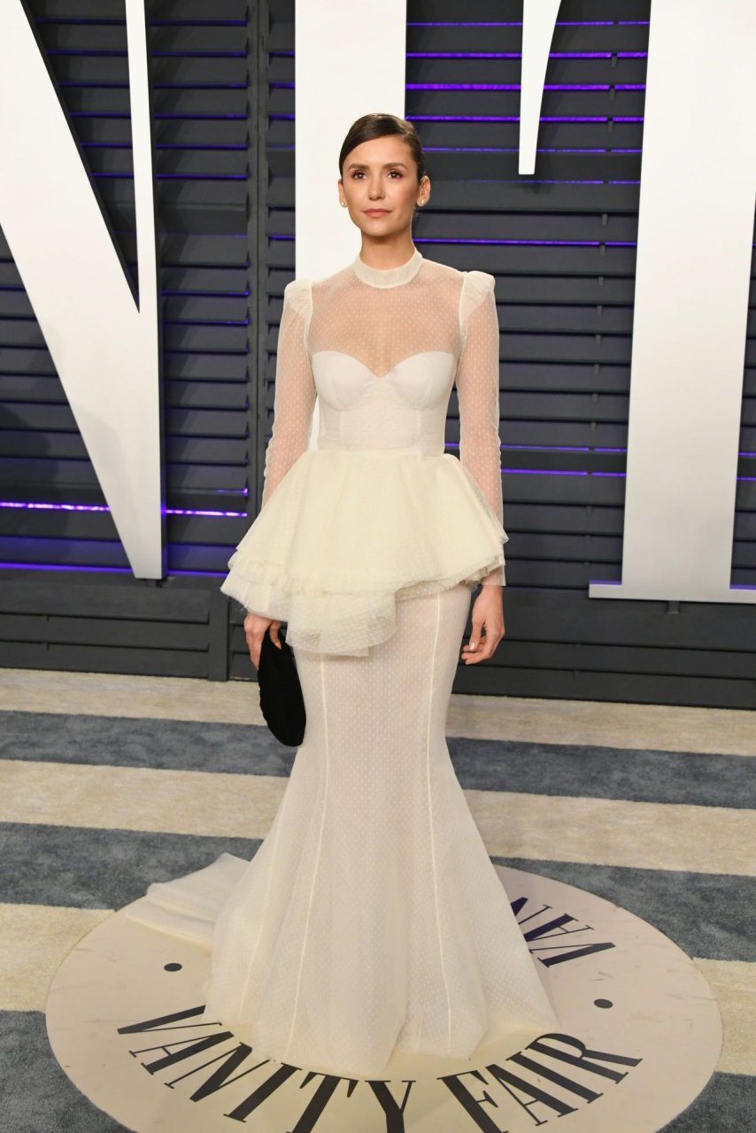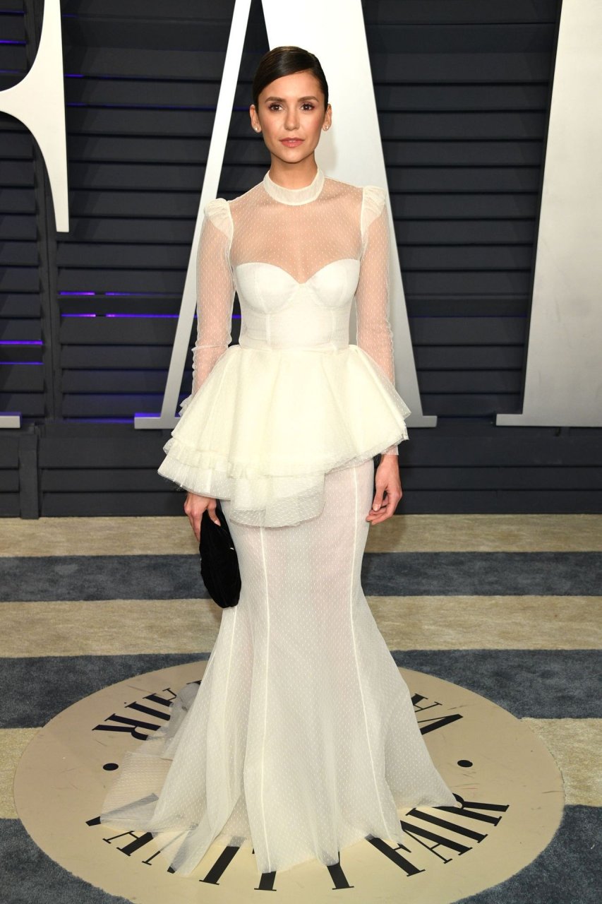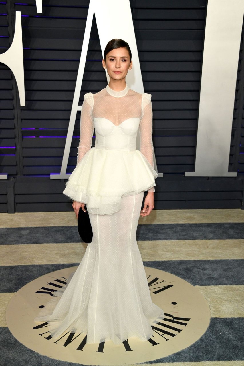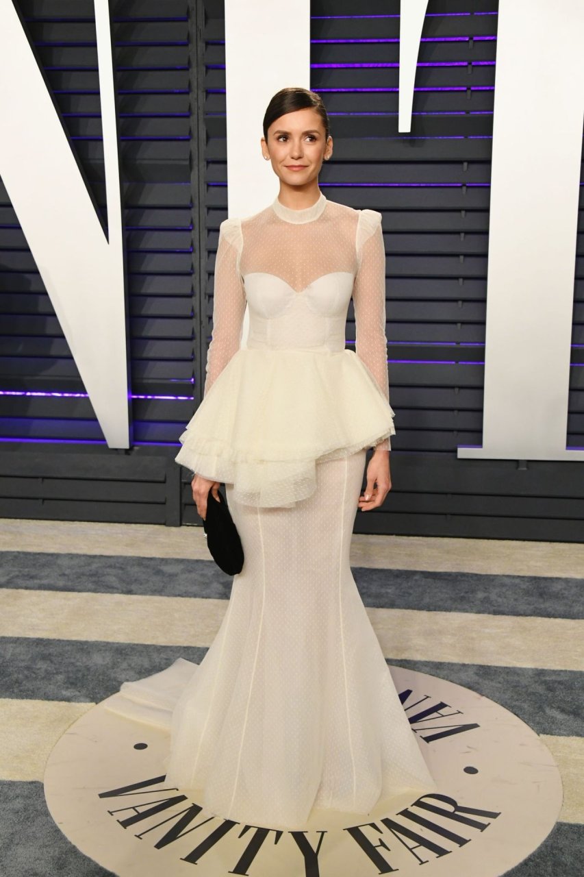 Nina Dobrev partecipa alla Vanity Fair Oscar Party 2019 a Beverly Hills, 24/02/2019. L’attrice canadese di 30 anni ha puntato sul colore bianco del vestito.