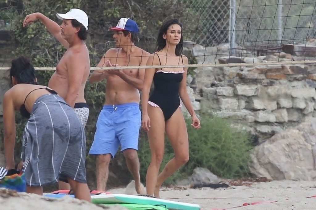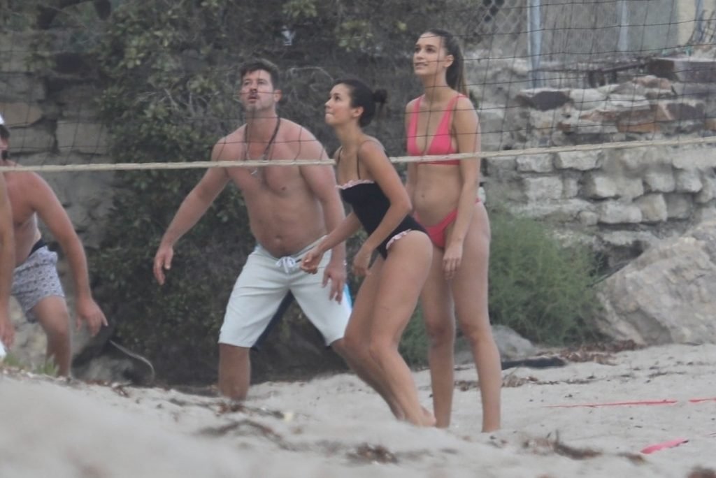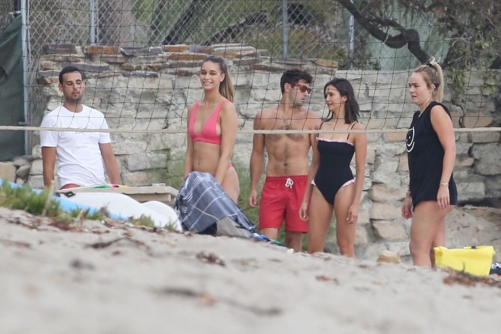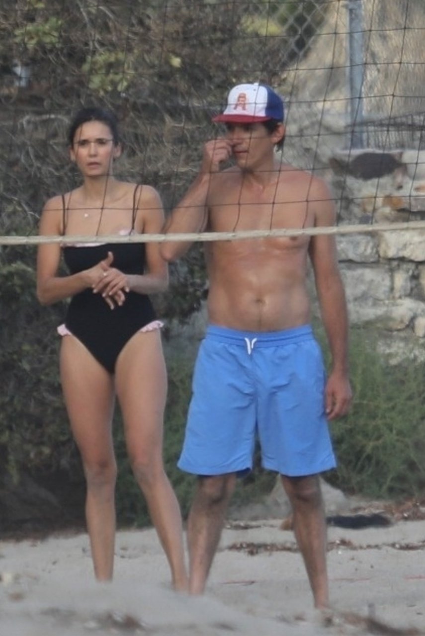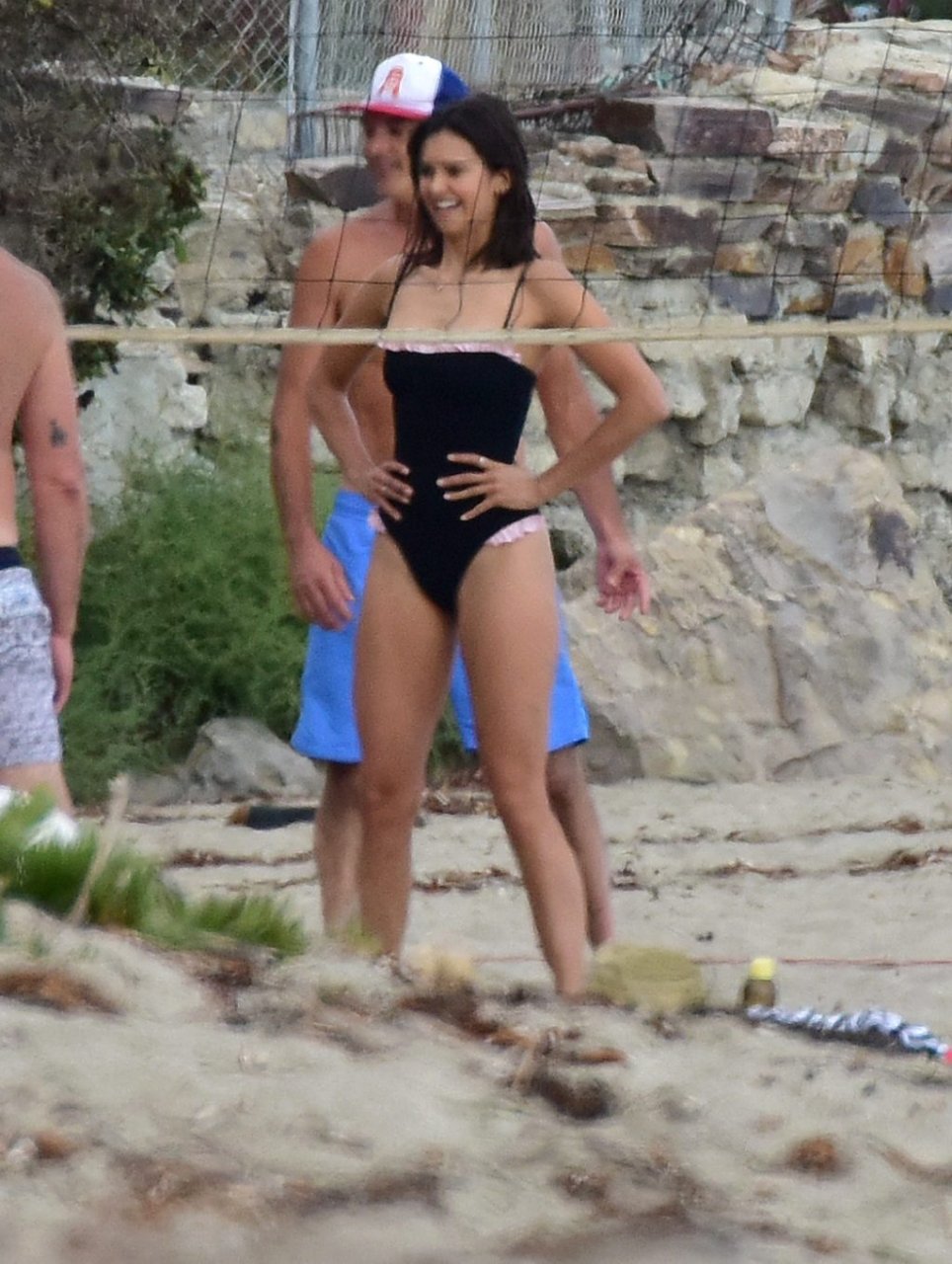 Attrice Nina Dobrev è stata vista con un costume da bagno nero mentre giocava a pallavolo con amici sulla spiaggia di Malibu, 09/02/2018.