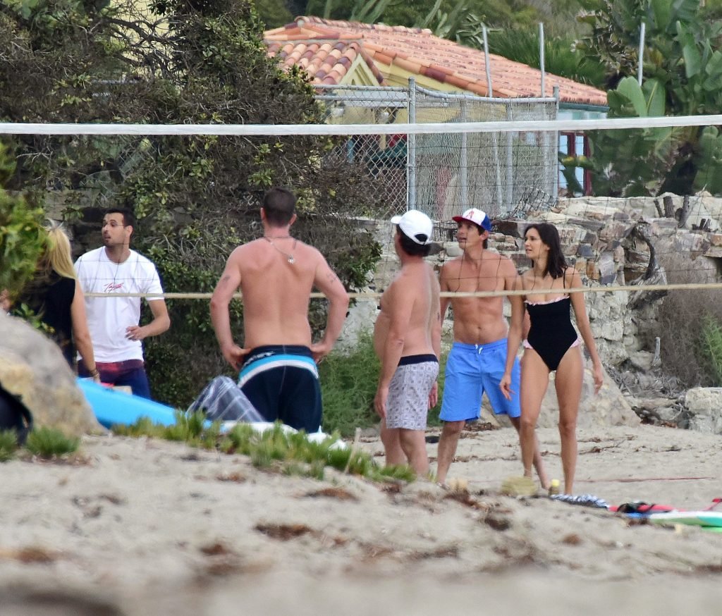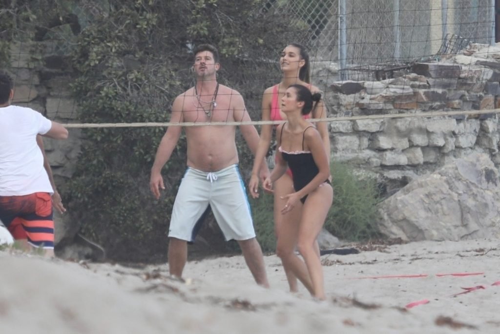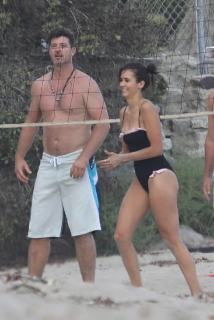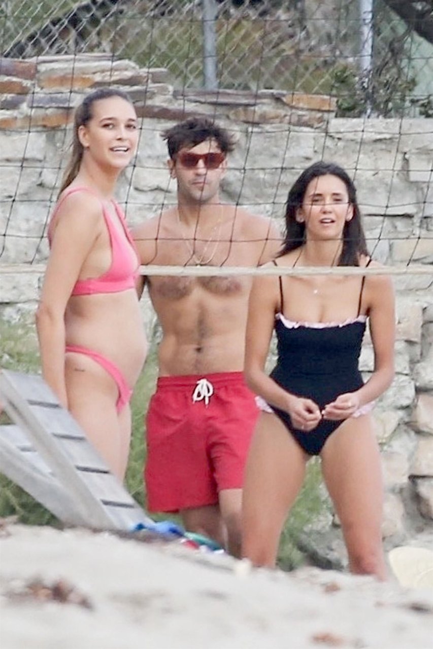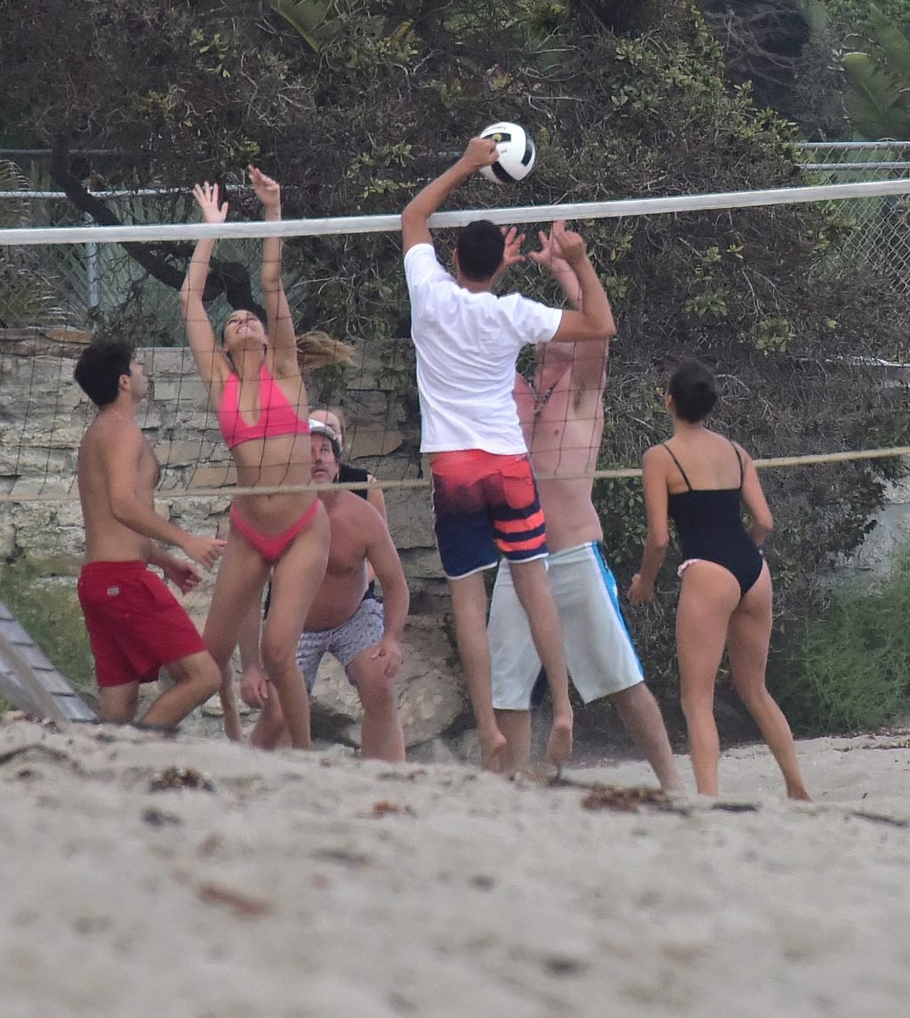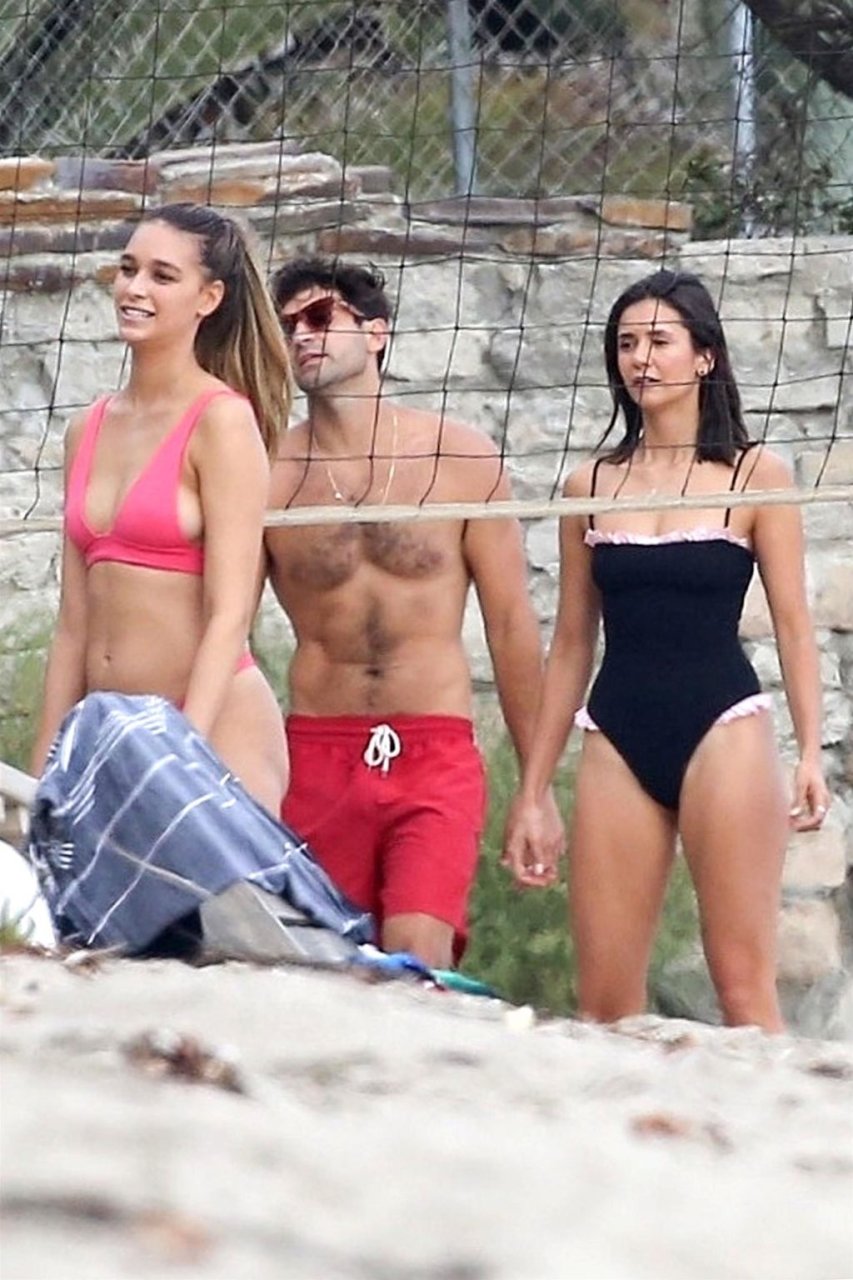 Attrice Nina Dobrev è stata vista con un costume da bagno nero mentre giocava a pallavolo con amici sulla spiaggia di Malibu, 09/02/2018.
