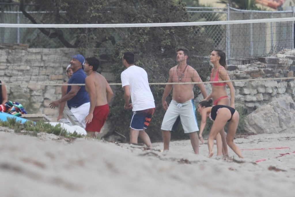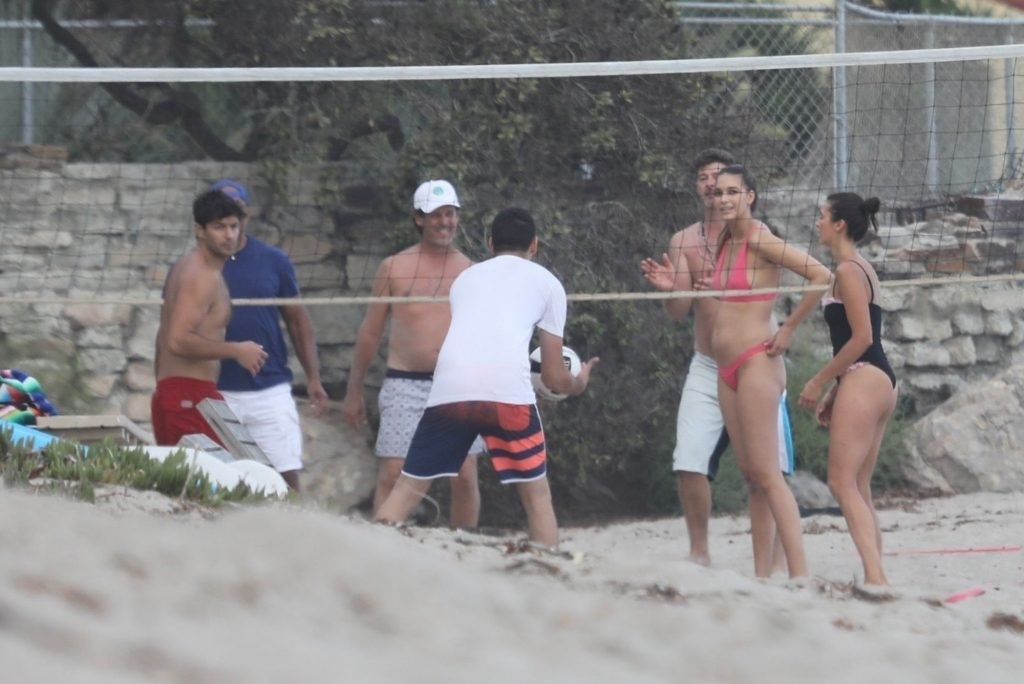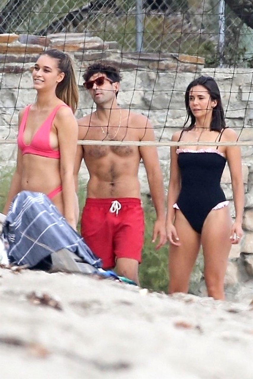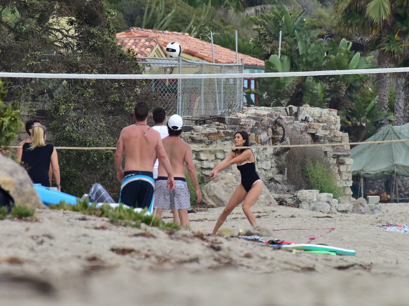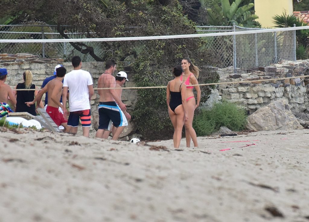 Attrice Nina Dobrev è stata vista con un costume da bagno nero mentre giocava a pallavolo con amici sulla spiaggia di Malibu, 09/02/2018.