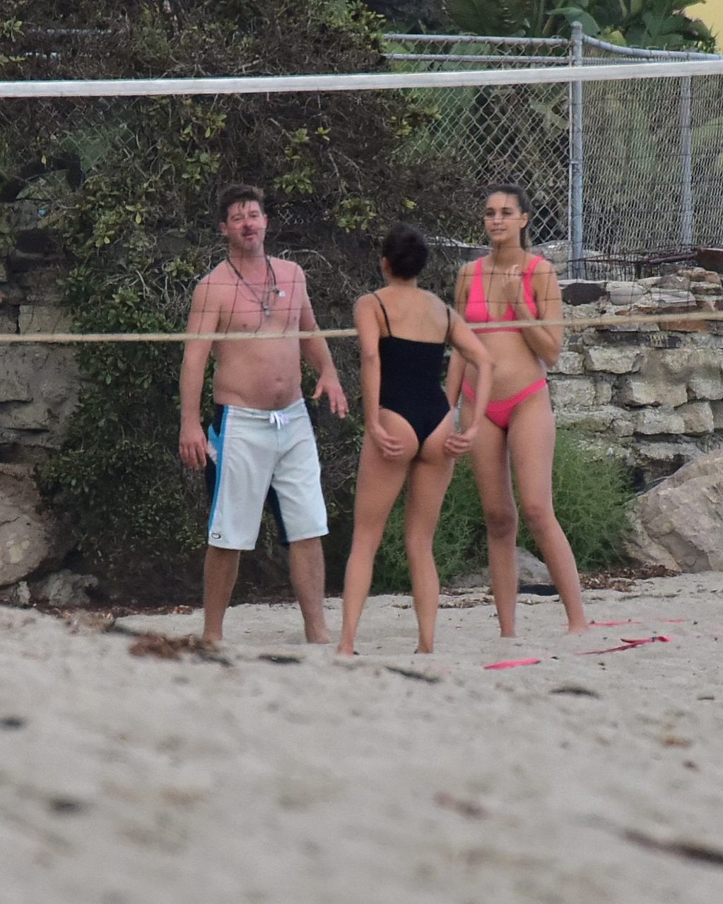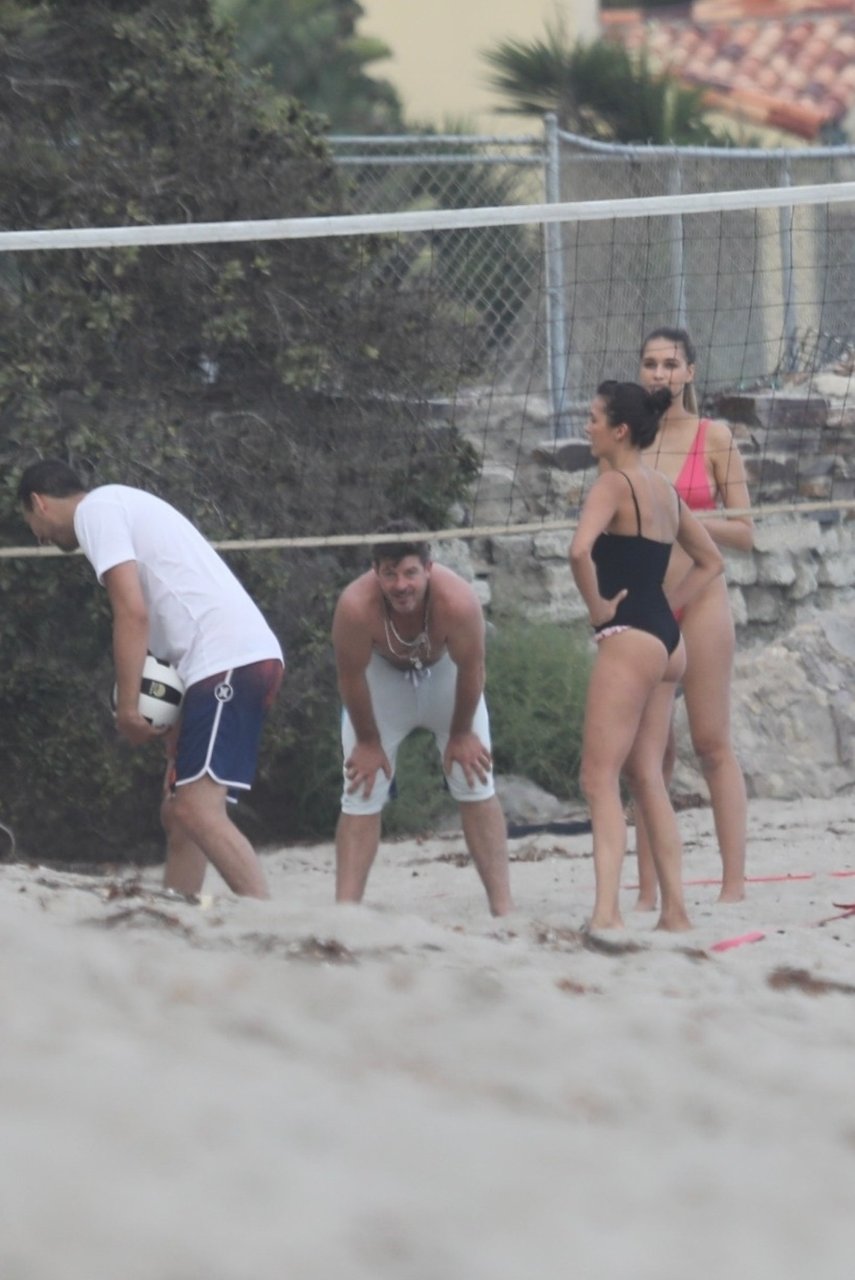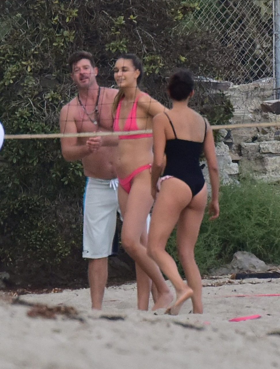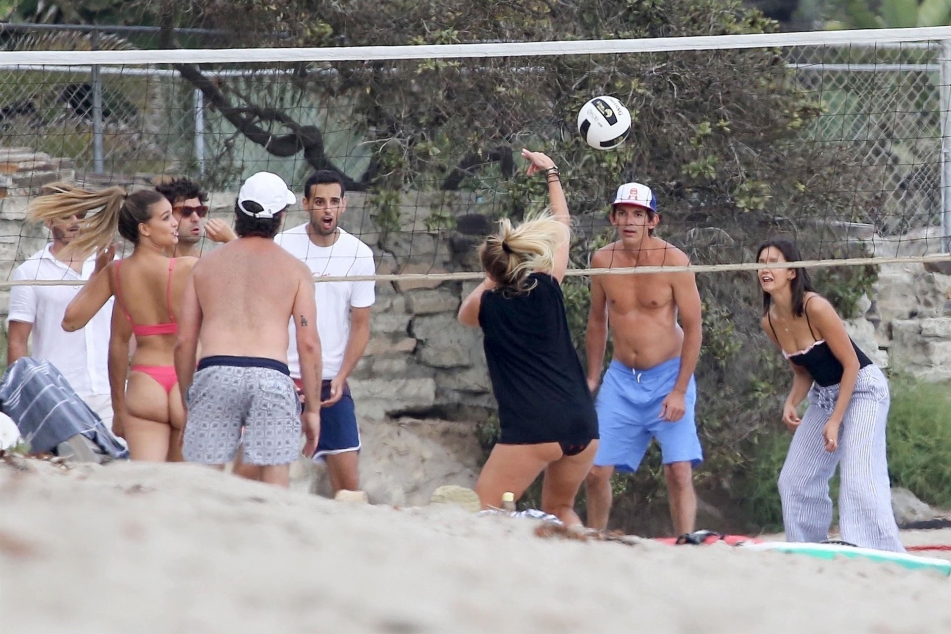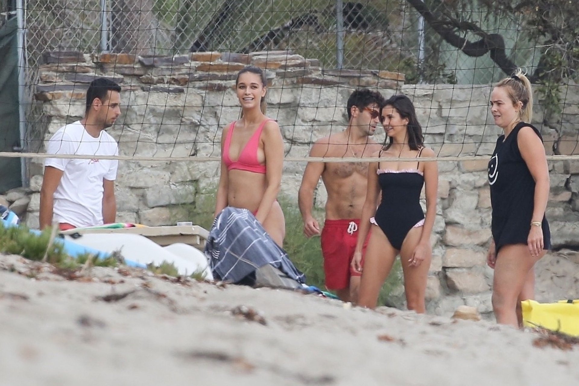 Attrice Nina Dobrev è stata vista con un costume da bagno nero mentre giocava a pallavolo con amici sulla spiaggia di Malibu, 09/02/2018.