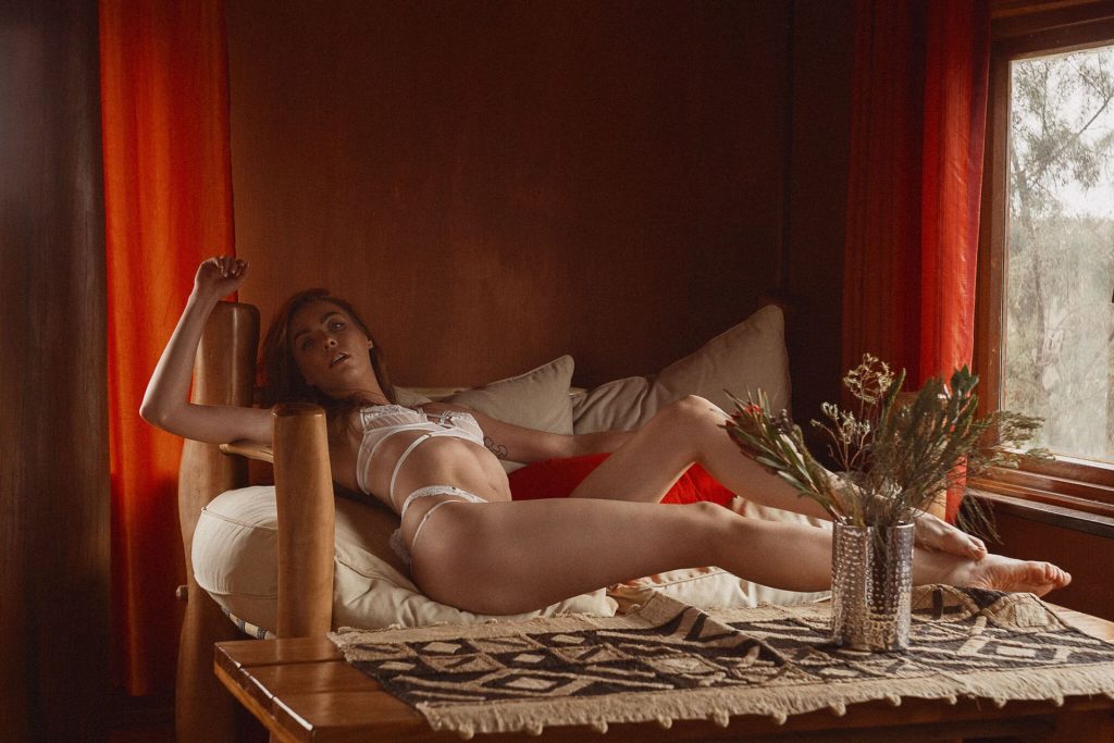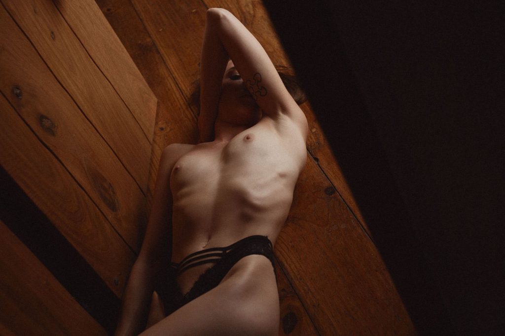 Modella freelance finlandese Nina Emilia mostra i suoi piccoli seni e il suo corpo snello e stupendo posando in lingerie e completamente nuda in un servizio fotografico di Jani Vuorio (2018).