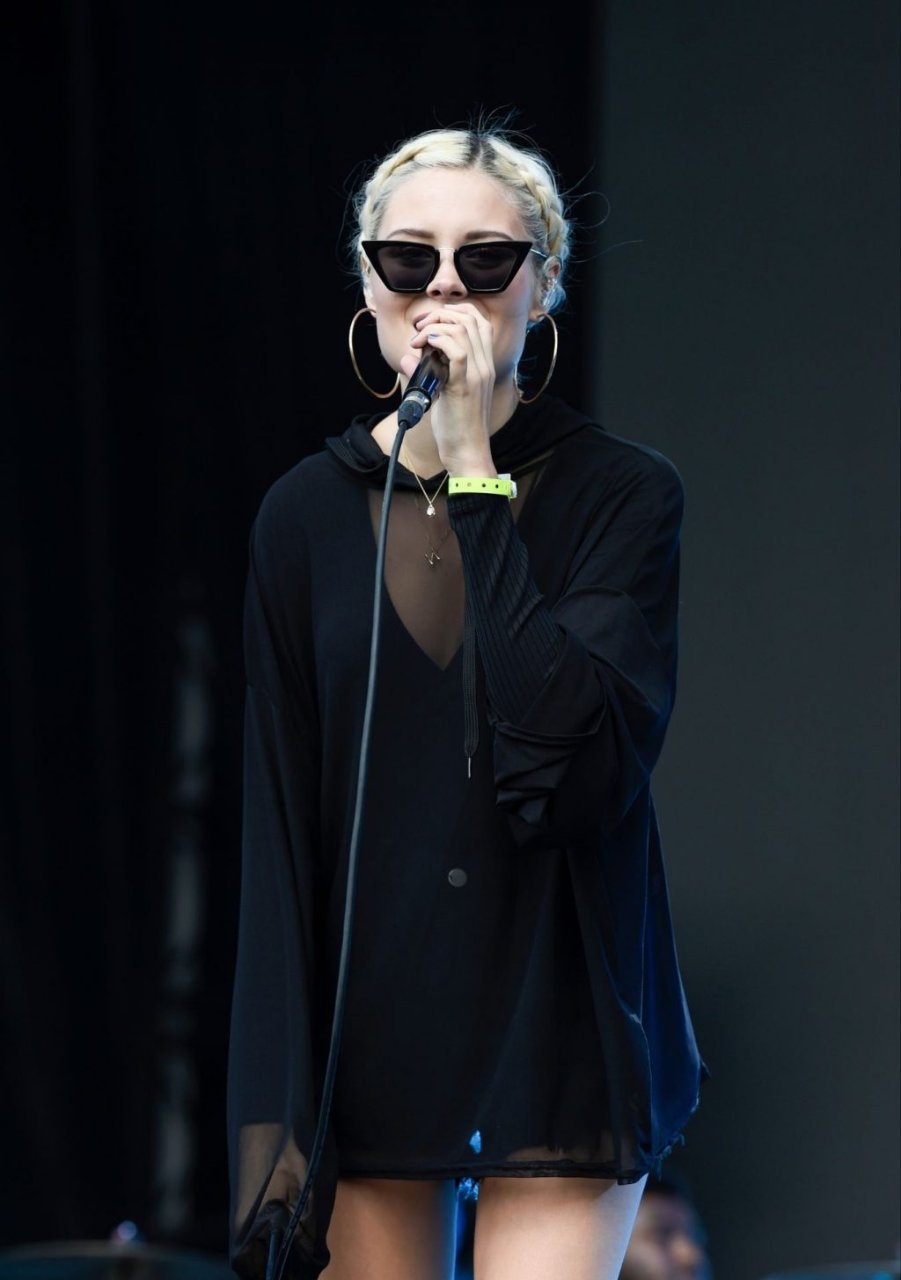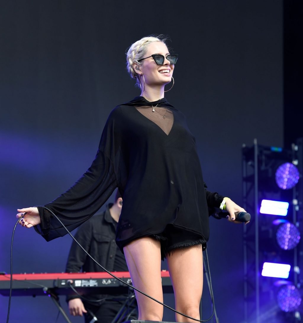 La cantante e cantautrice scozzese Nina Nesbitt è stata fotografata mentre si esibiva al Fusion Festival nel Sefton Park di Liverpool, 31/08/2019.