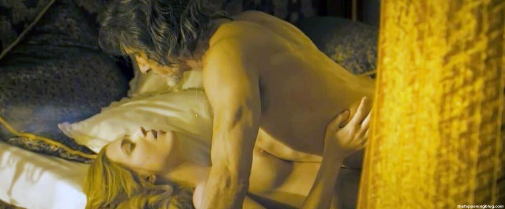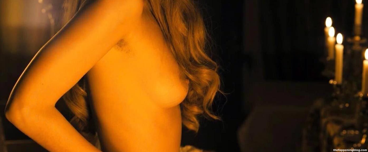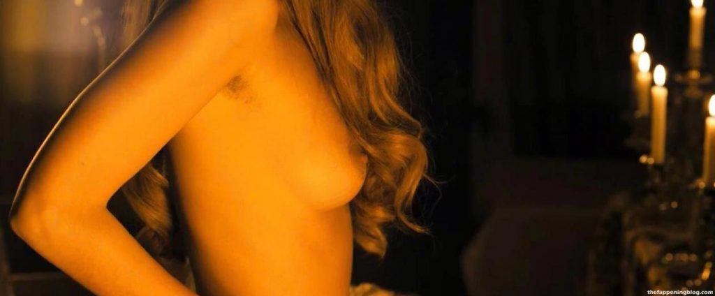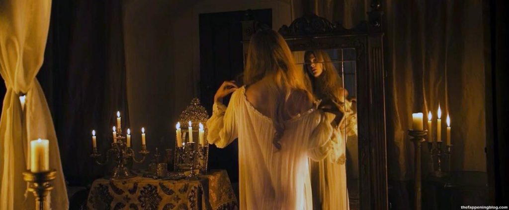Le prime scene sono tratte dal famoso film francese chiamato ‘Angélique‘. Nella prima scena, Nora Arnezeder si trova davanti a uno specchio, lasciando che il suo vestito parzialmente trasparente cada fino alla vita e riveli il suo seno destro di lato. Poi posa guardandosi nello specchio prima di essere distratta da qualcuno che entra nella stanza.