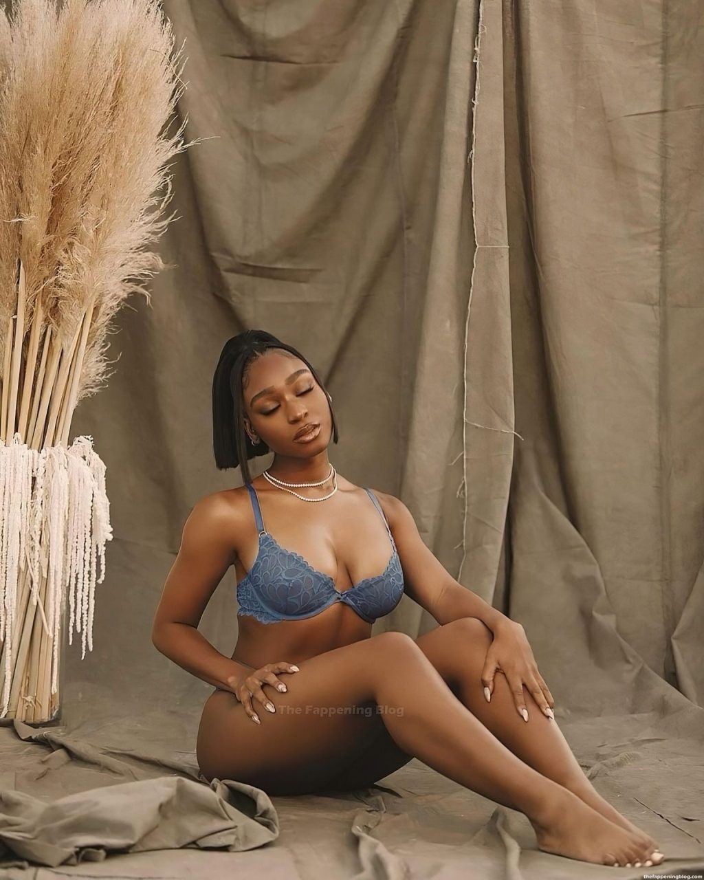 Now fellas, let’s take a look at how sexy did Normani look while she posed in a see-through jumpsuit! But, it’s not only the lacey outfit she showed on her curvy body, she also showed us how she looks like in some hot blue lingerie! These photos were taken for Rihanna‘s Fenty line!