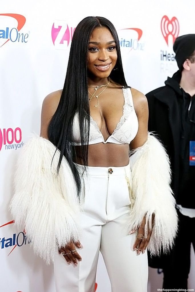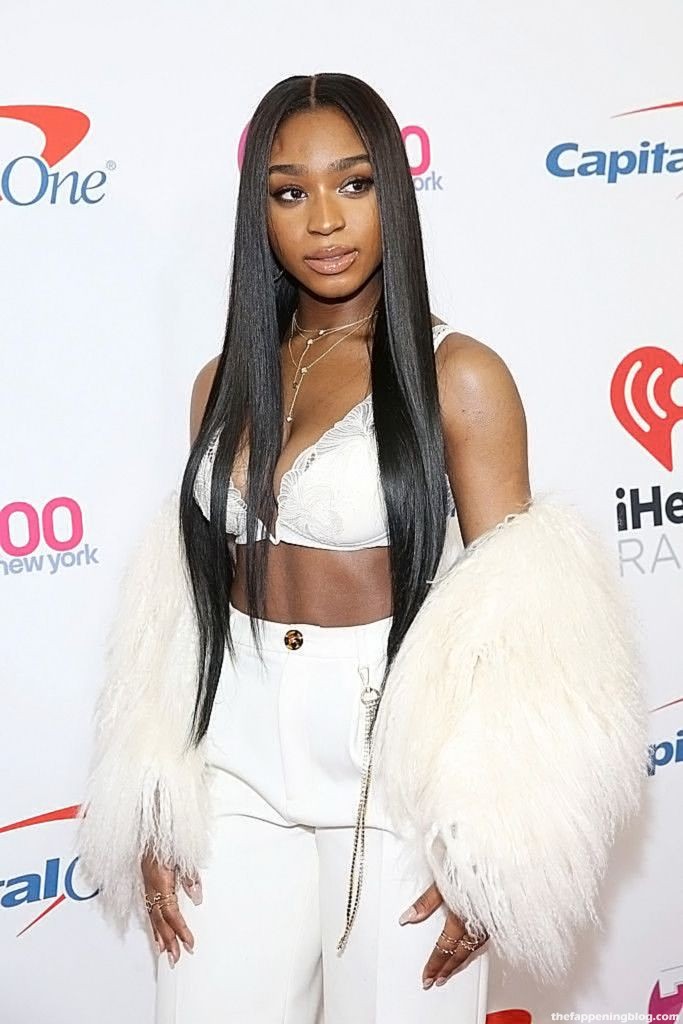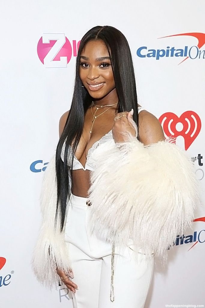 Then we have Normani Kordei Hamilton showing her deep cleavage. A black celeb was wearing a white top at the Z100’s Jingle Ball 2018 in New York City.