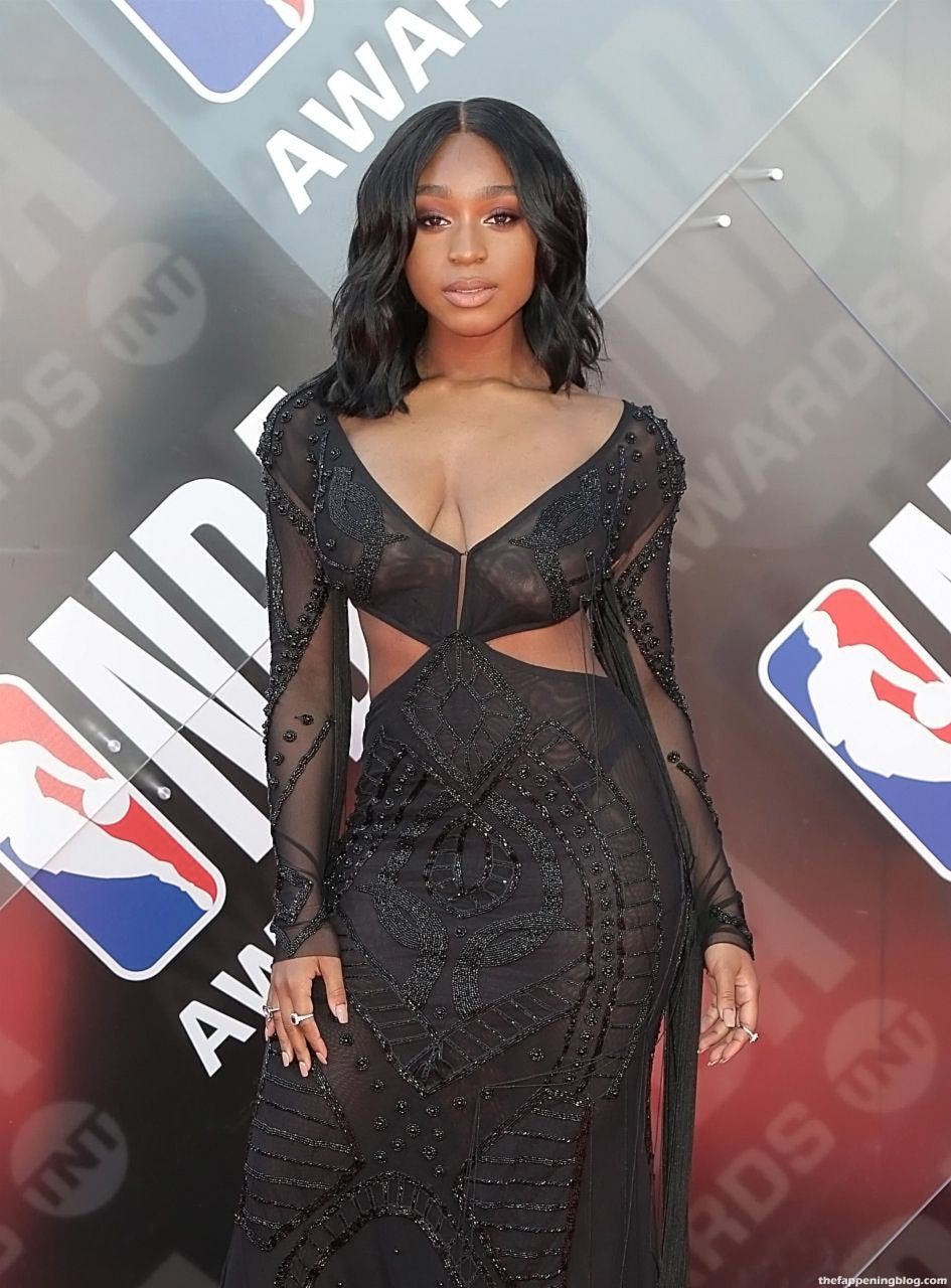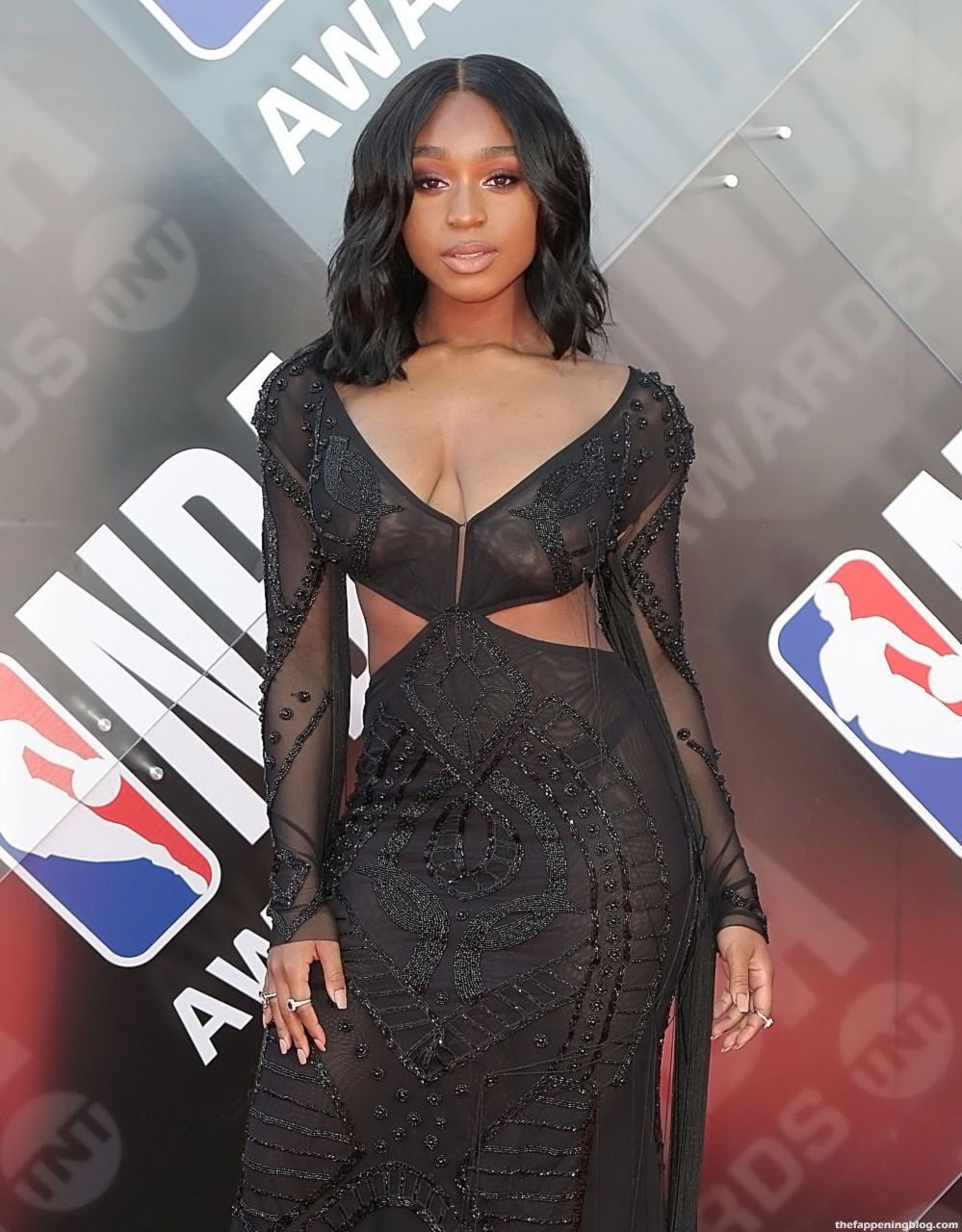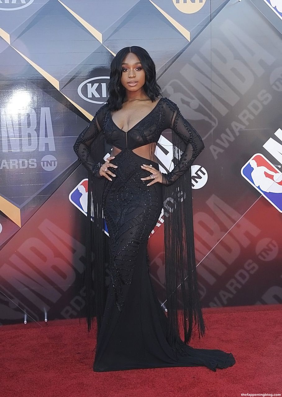 And last but not least. Sultry brunette Normani attended the 2018 NBA Awards in Santa Monica. The 24-year-old pop singer wore a see-through black dress without a bra.