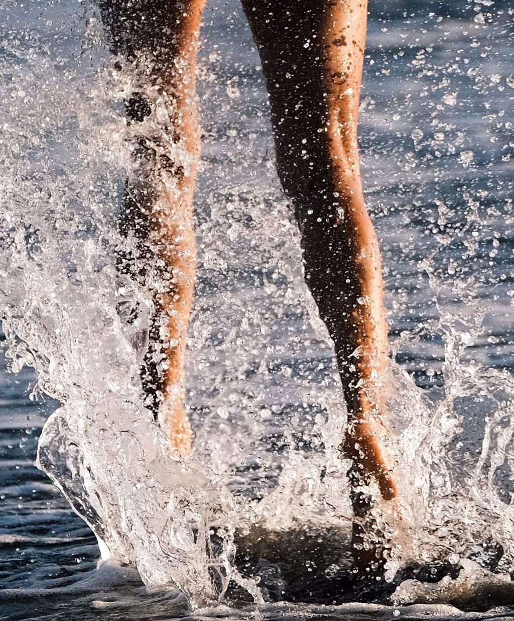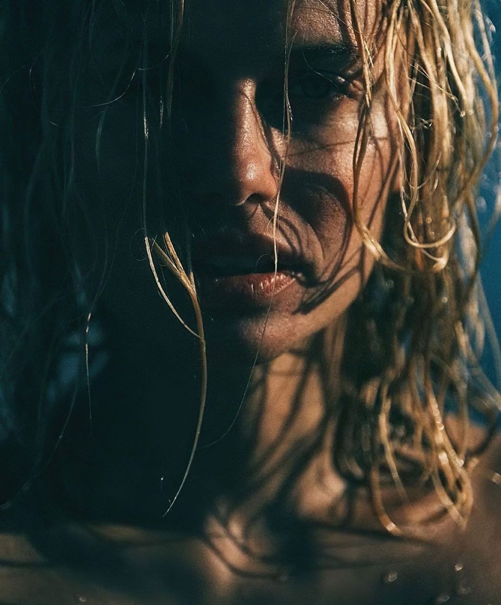 La bionda lettone Olga de Mar (Marackovska) posa nuda sulla spiaggia in un servizio fotografico di Alberto Buzzanca a Venezia (2020).