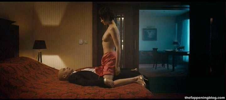 Olga Kurylenko nuda e Marine Duvivier entrambe senza reggiseno in una scena lesbica mentre le ragazze si baciano inginocchiate, poi Marine si sdraia e Olga lecca e succhia i suoi capezzoli.