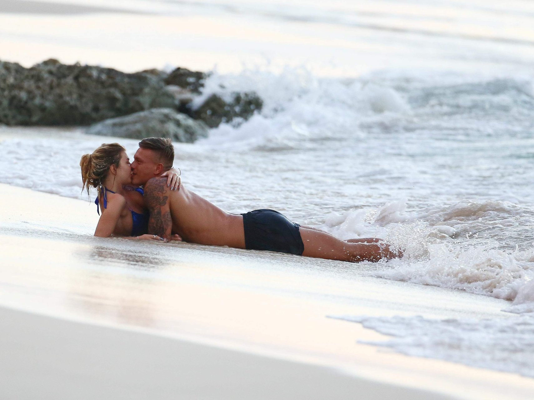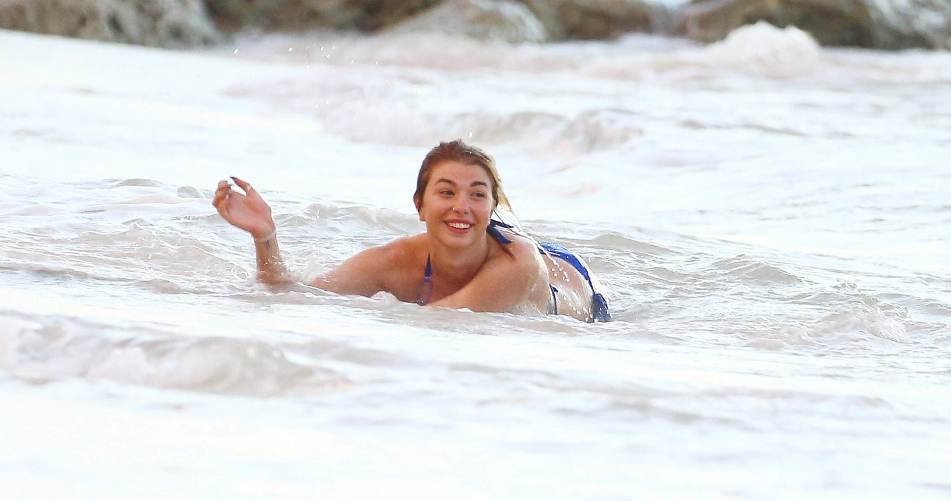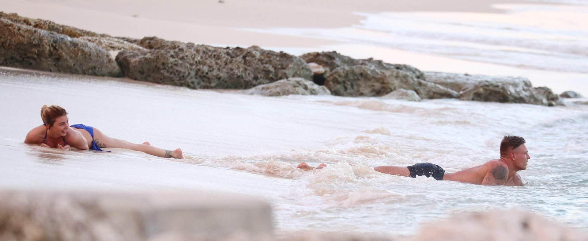 Olivia Buckland indossa un bikini blu succinto con il suo uomo a Barbados, 31/10/2016. È pronta per fare sesso sulla spiaggia! Olivia Buckland è una star britannica dei reality (Love Island). Età: 22