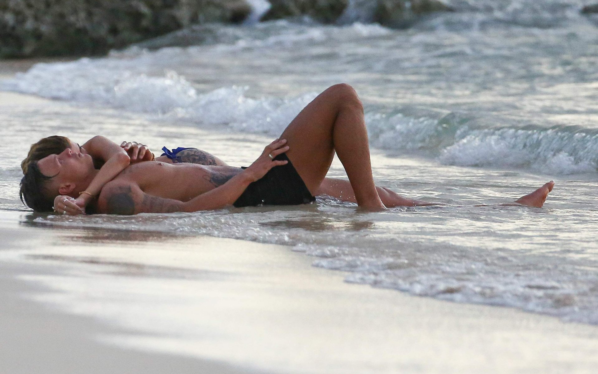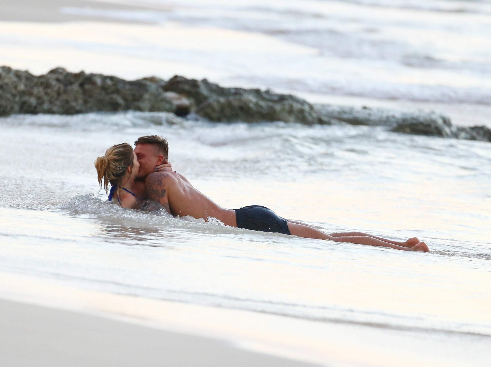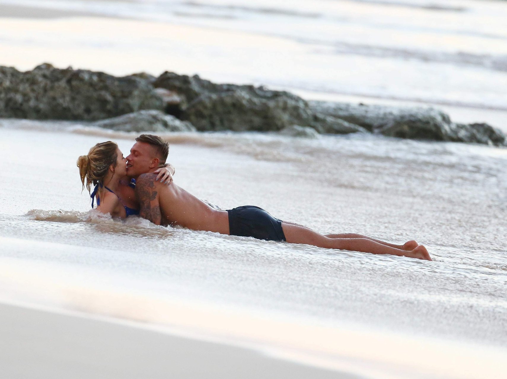 Olivia Buckland indossa un bikini blu succinto con il suo uomo a Barbados, 31/10/2016. È pronta per fare sesso sulla spiaggia! Olivia Buckland è una star britannica dei reality (Love Island). Età: 22