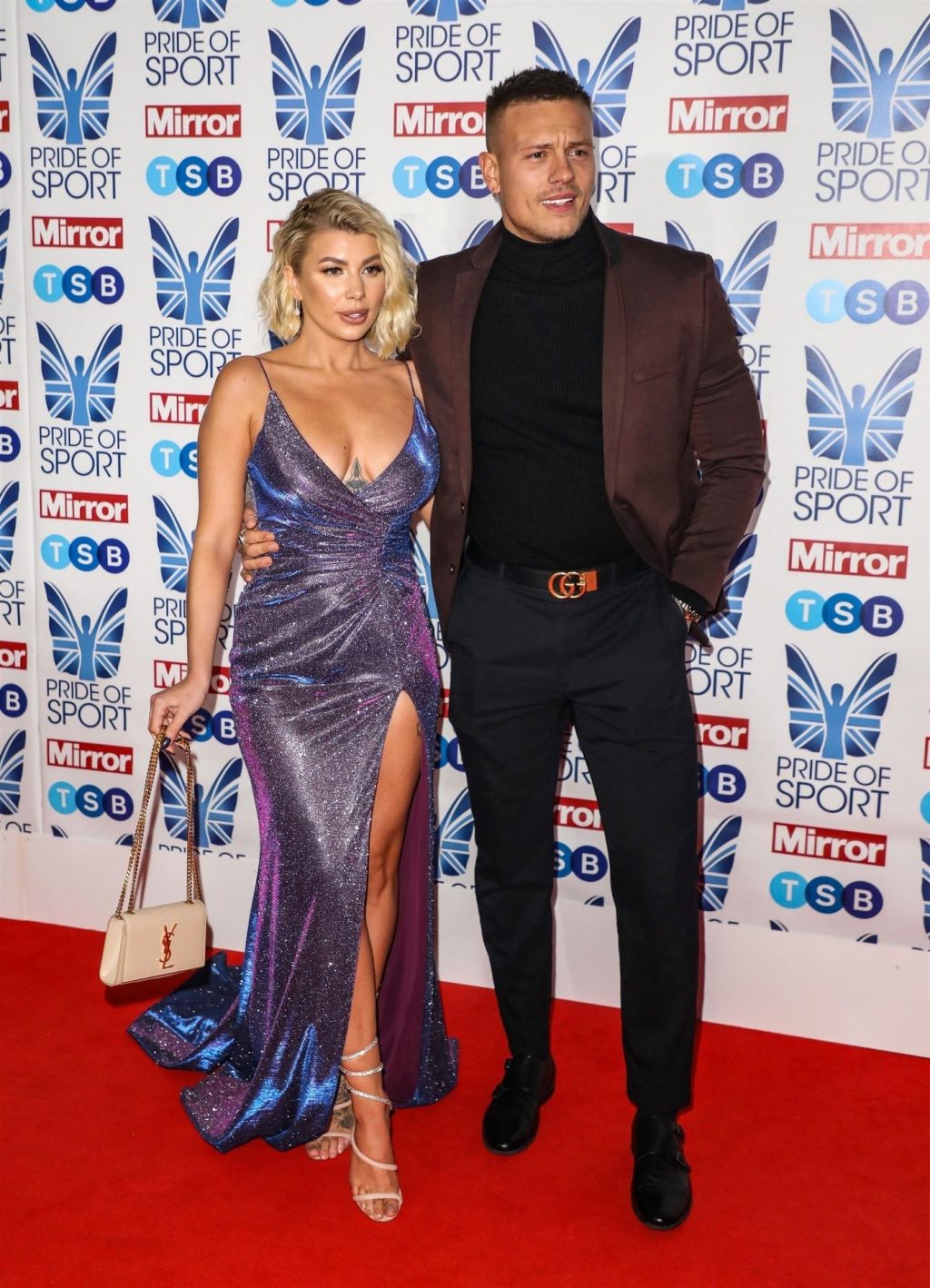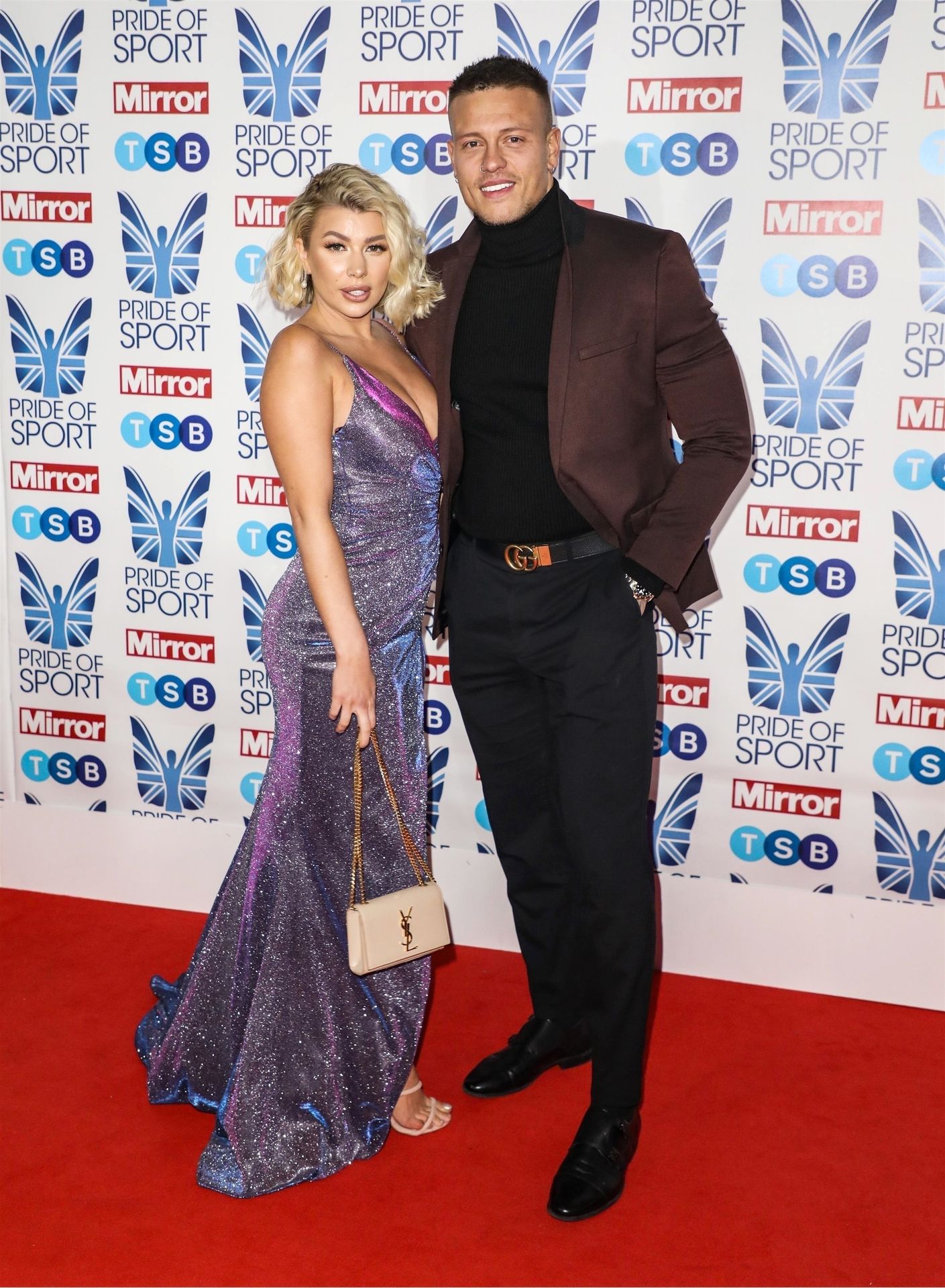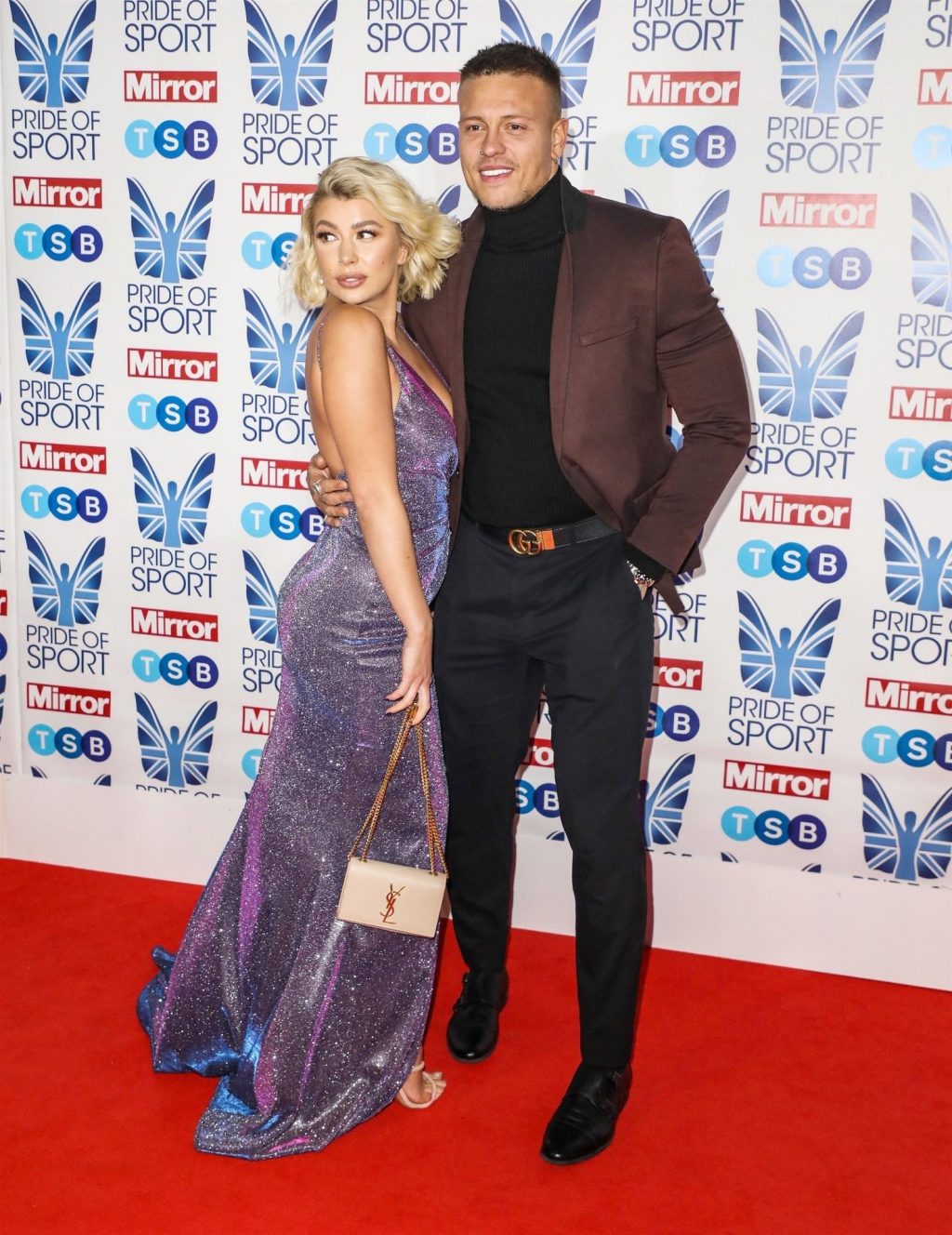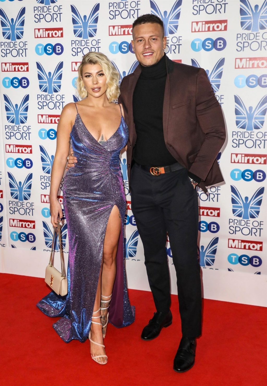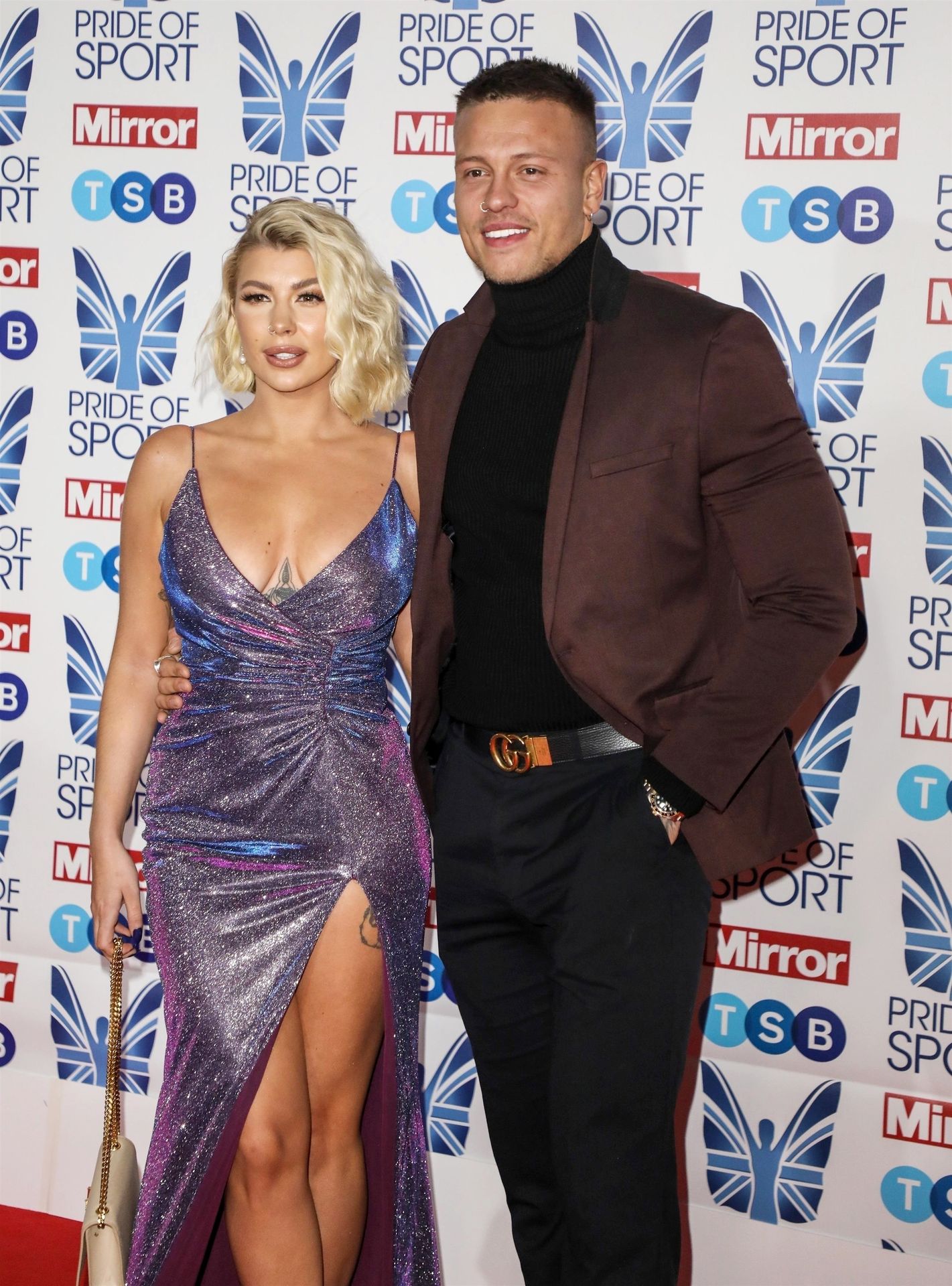 Le star della TV reality Olivia Buckland e Alex Bowen arrivano agli Daily Mirror Pride of Sport Awards 2019 presso il Grosvenor House Hotel di Londra, 12/05/2019.
