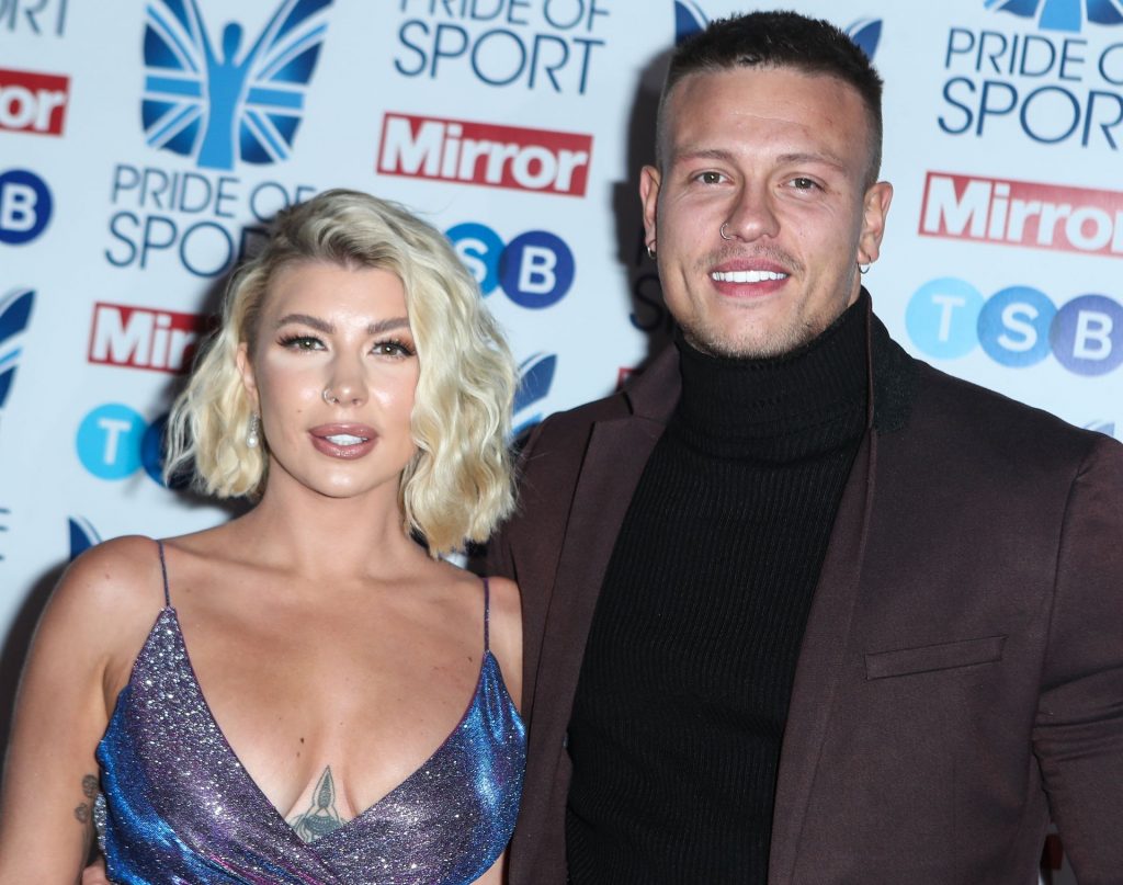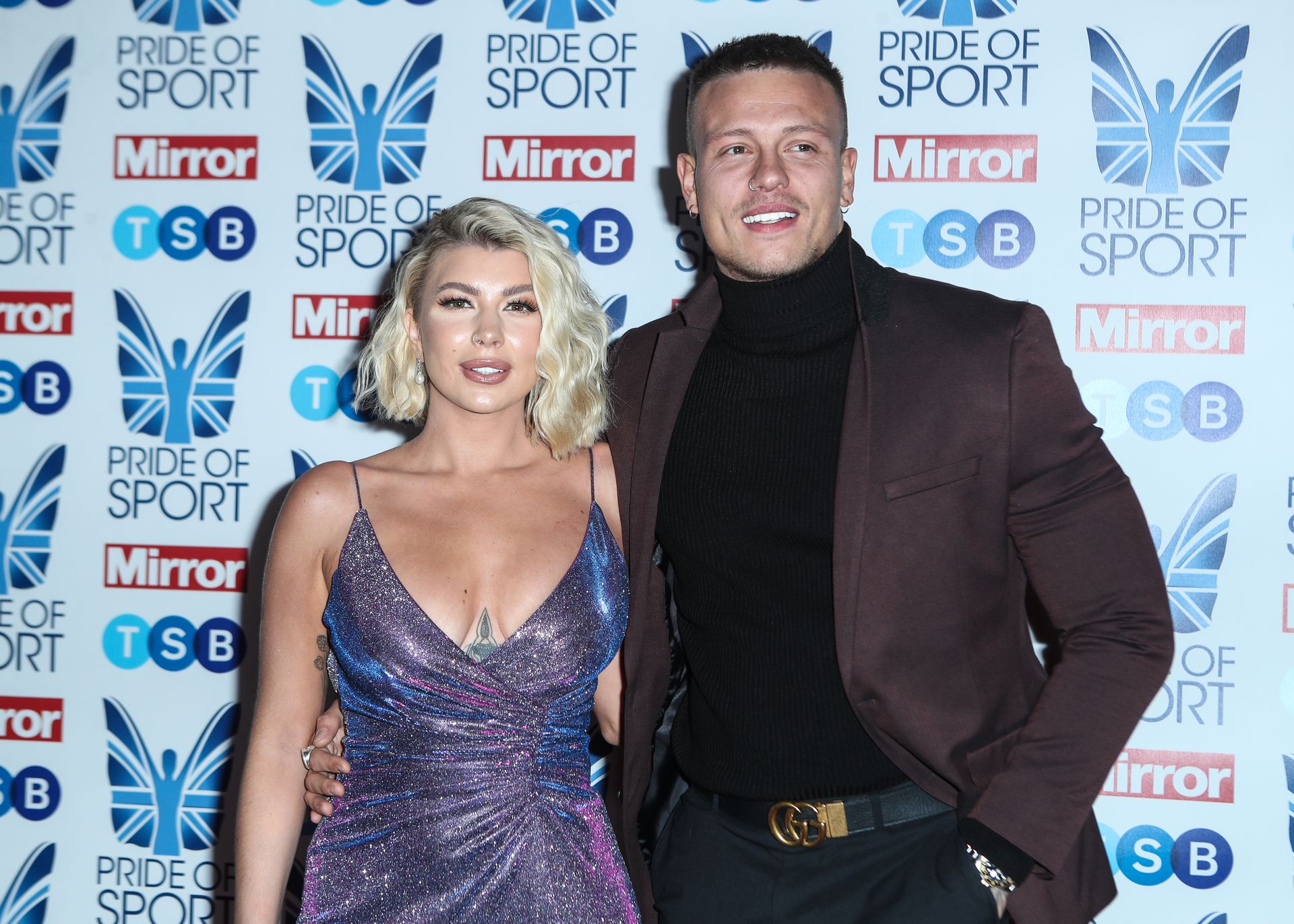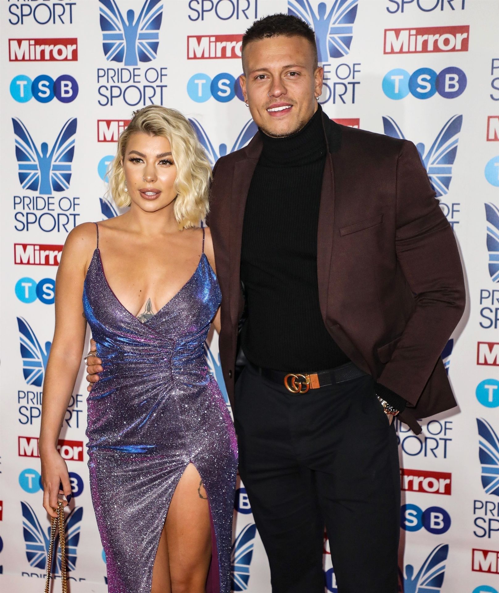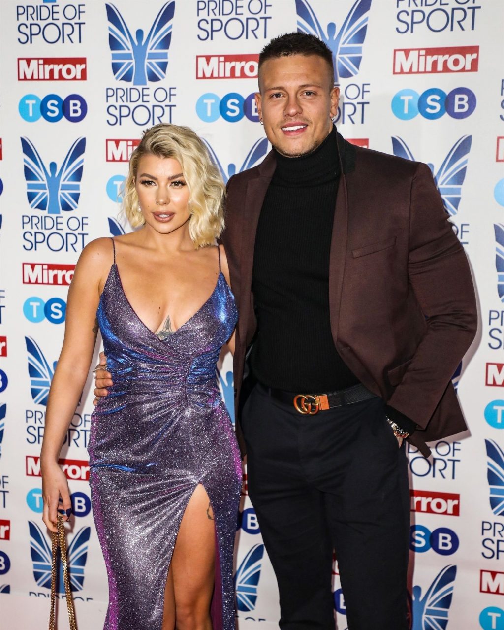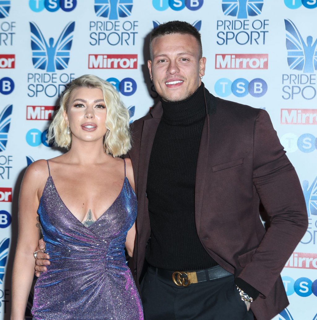 Le star della TV reality Olivia Buckland e Alex Bowen arrivano agli Daily Mirror Pride of Sport Awards 2019 presso il Grosvenor House Hotel di Londra, 12/05/2019.