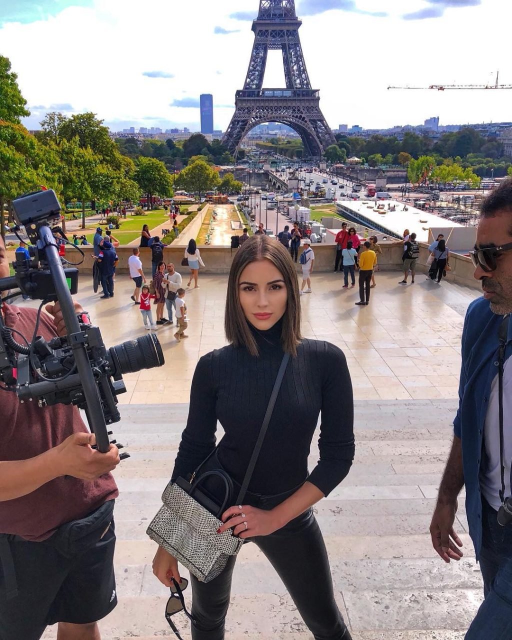 I paparazzi hanno catturato la popolare modella americana Olivia Culpo, che ha ricevuto il titolo di Miss Universo nel 2012, durante il servizio fotografico Givenchy Beauty a Parigi, 20/09/2018.