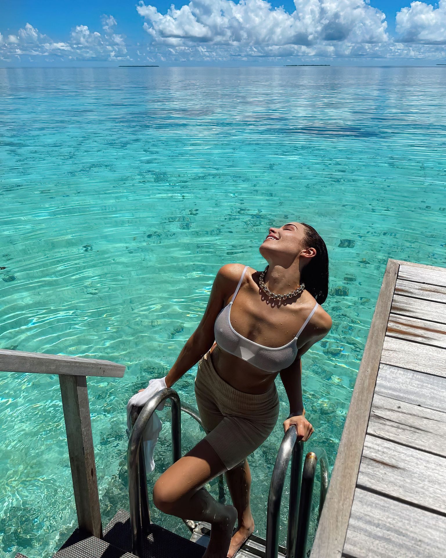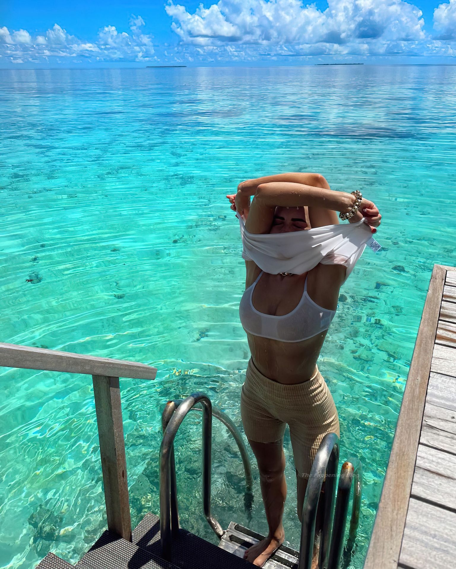 Si intravede una bellissima vagina rasata sotto quei bikini.