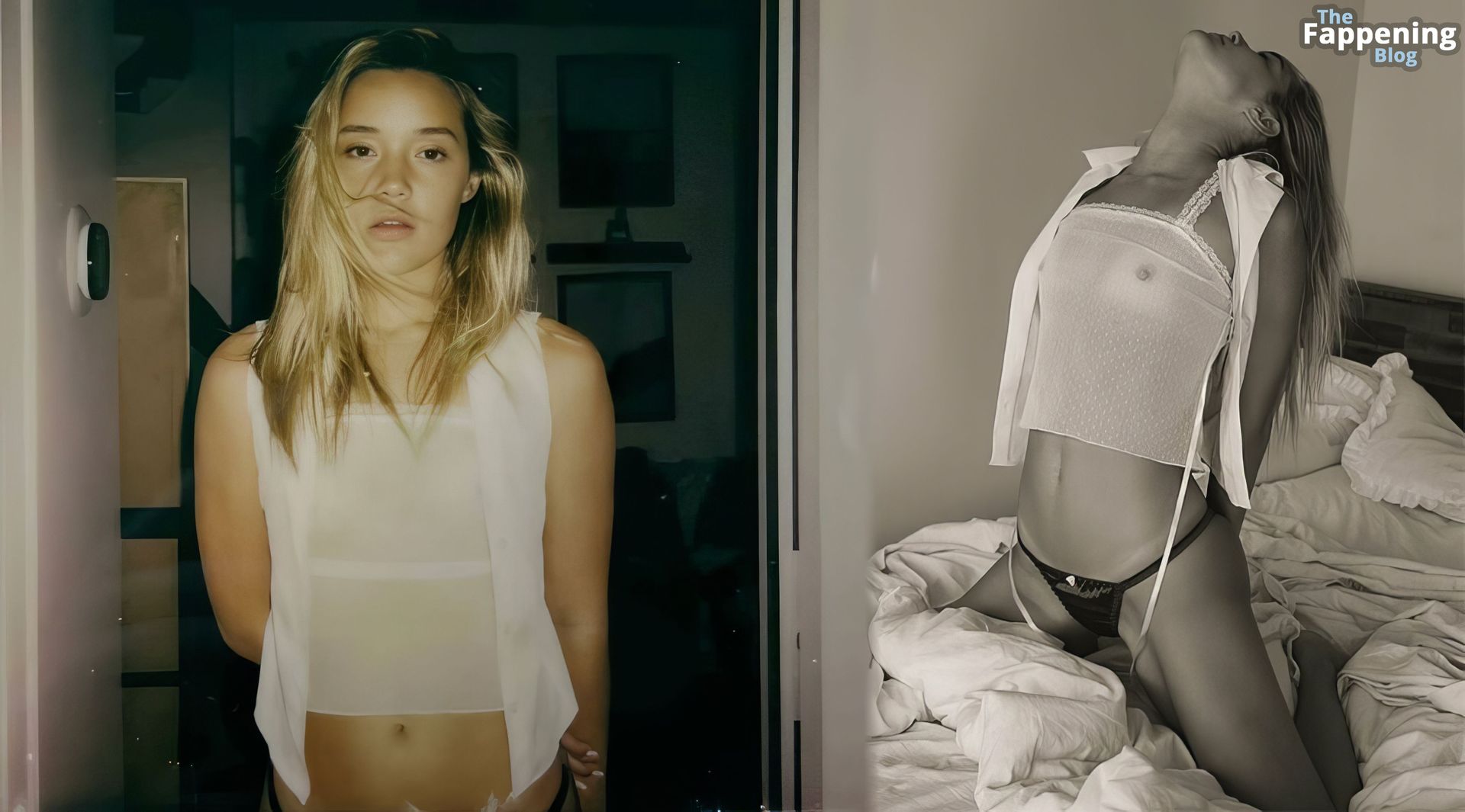 La star dei social media e modella Olivia Ponton è ritratta con un top trasparente, mostrando i suoi seni e capezzoli in questo servizio fotografico audace.