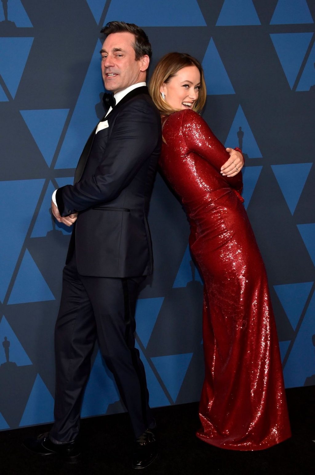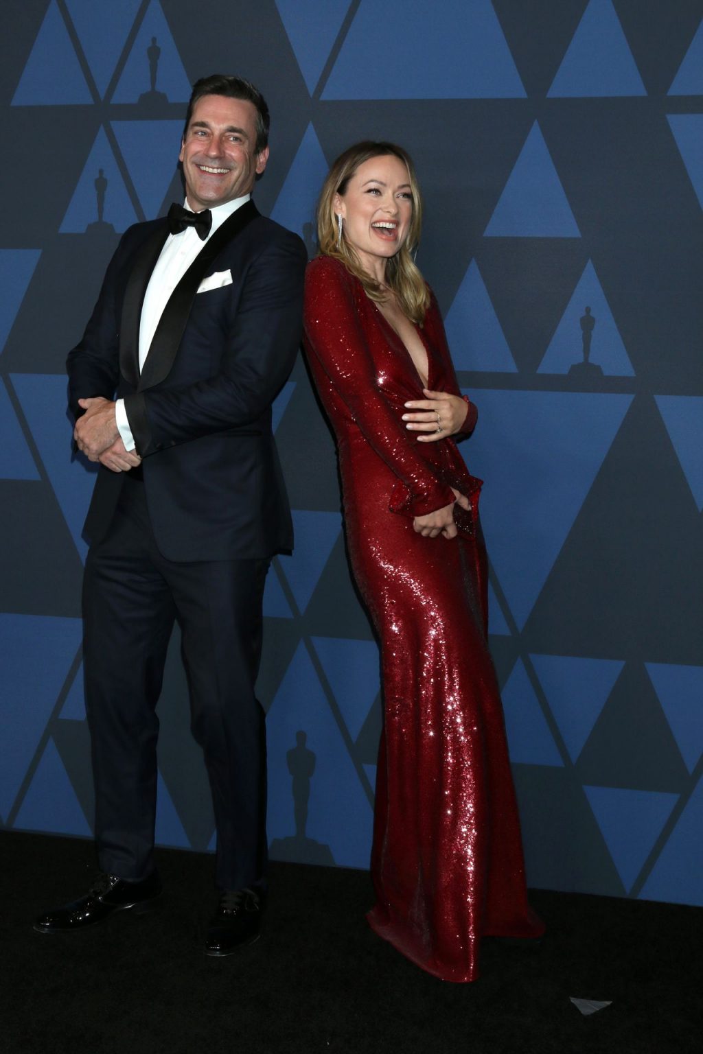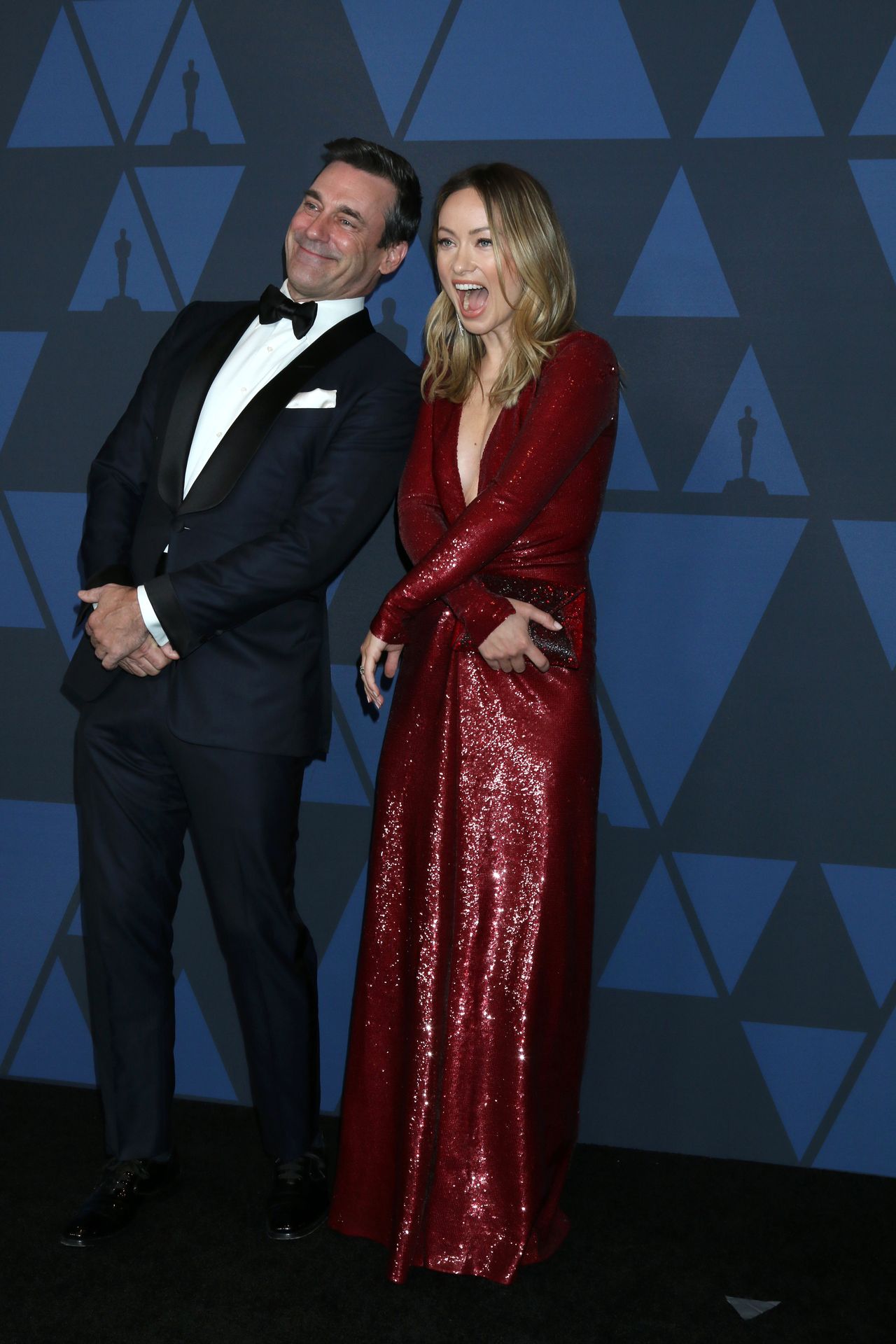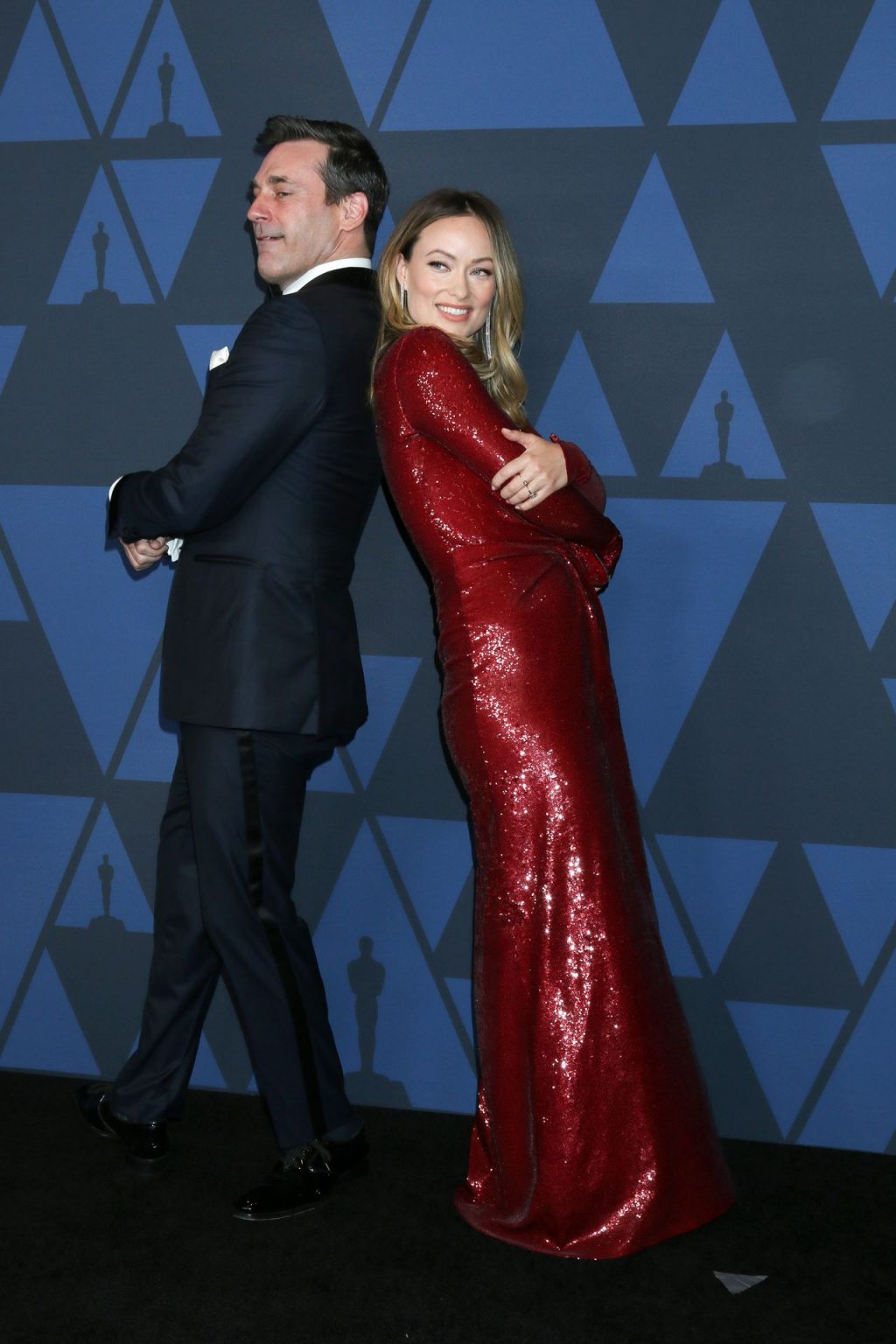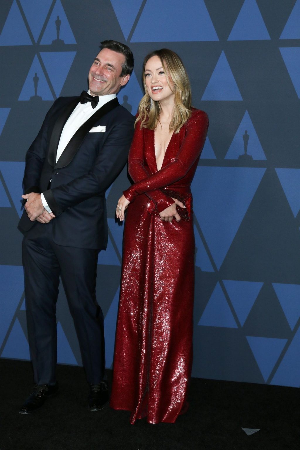 L’attrice Olivia Wilde incanta con un abito rosso aderente e una profonda scollatura mentre cena con amici al Chateau Marmont a Hollywood, 28/10/2019.