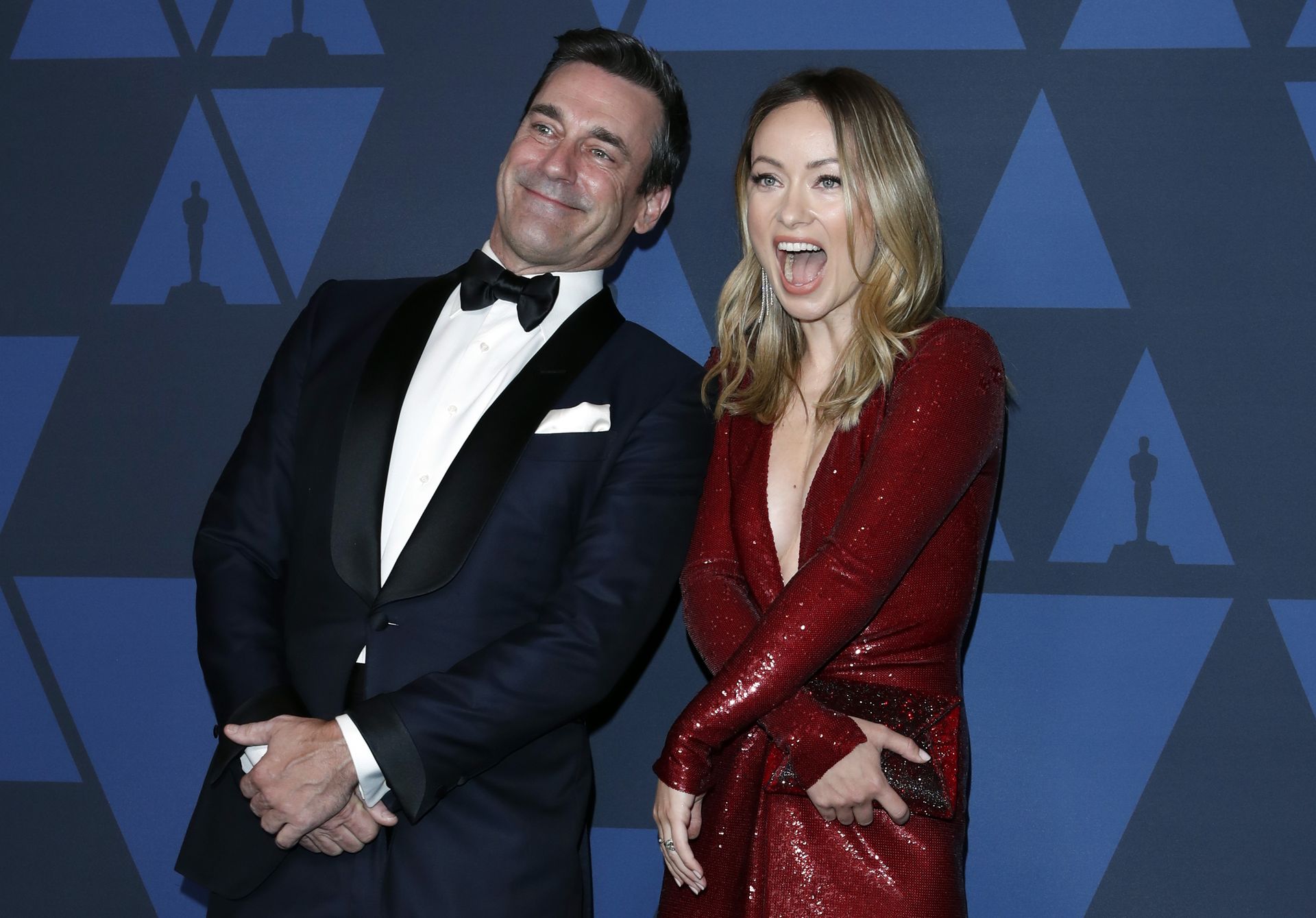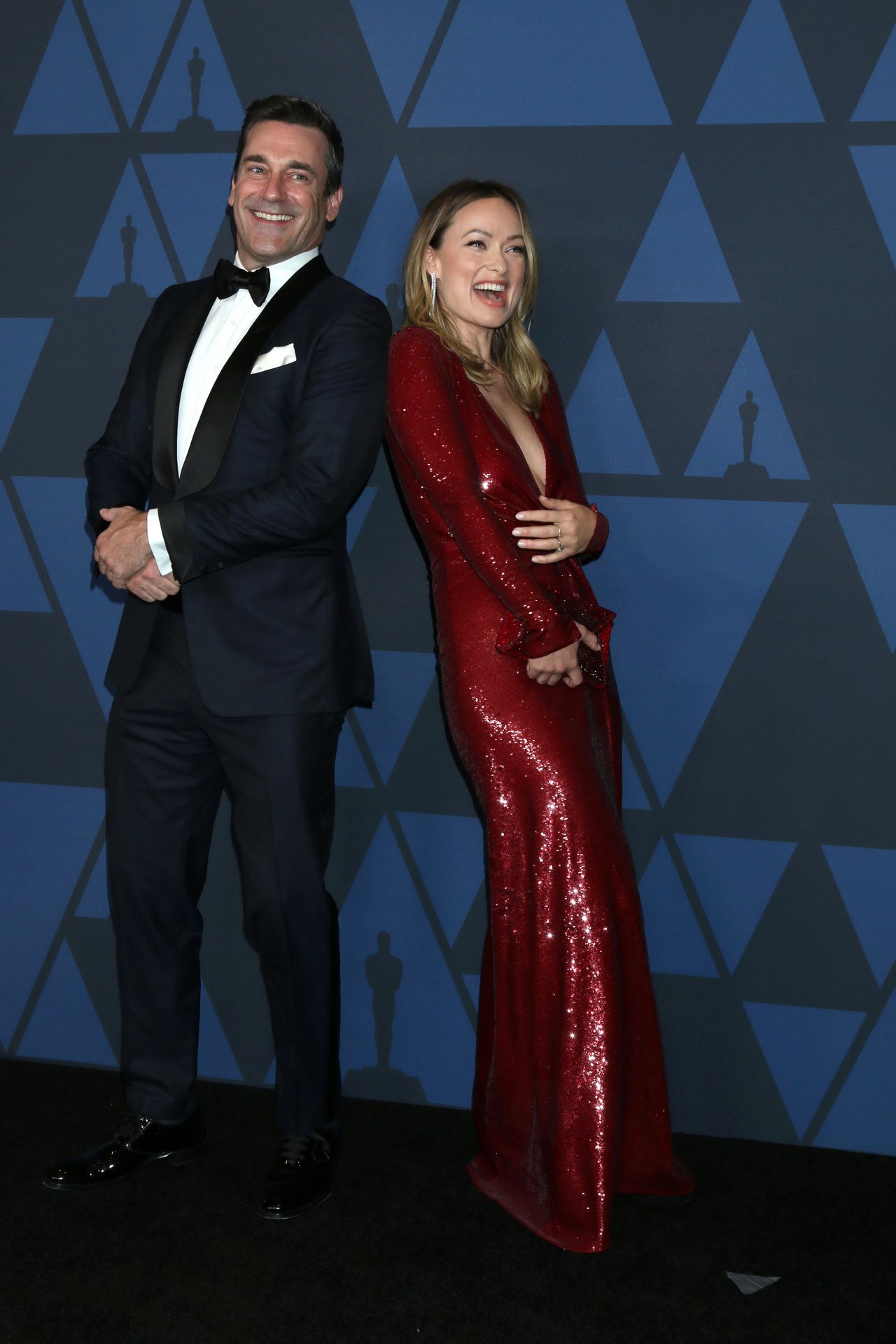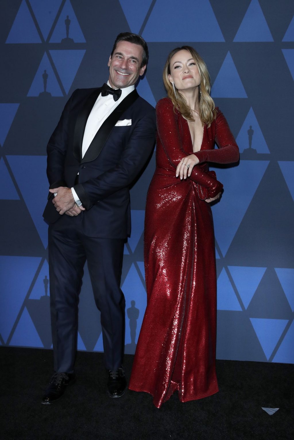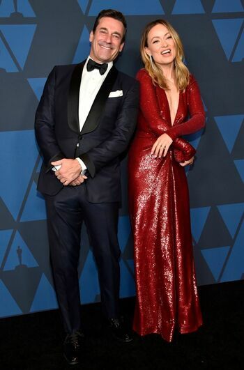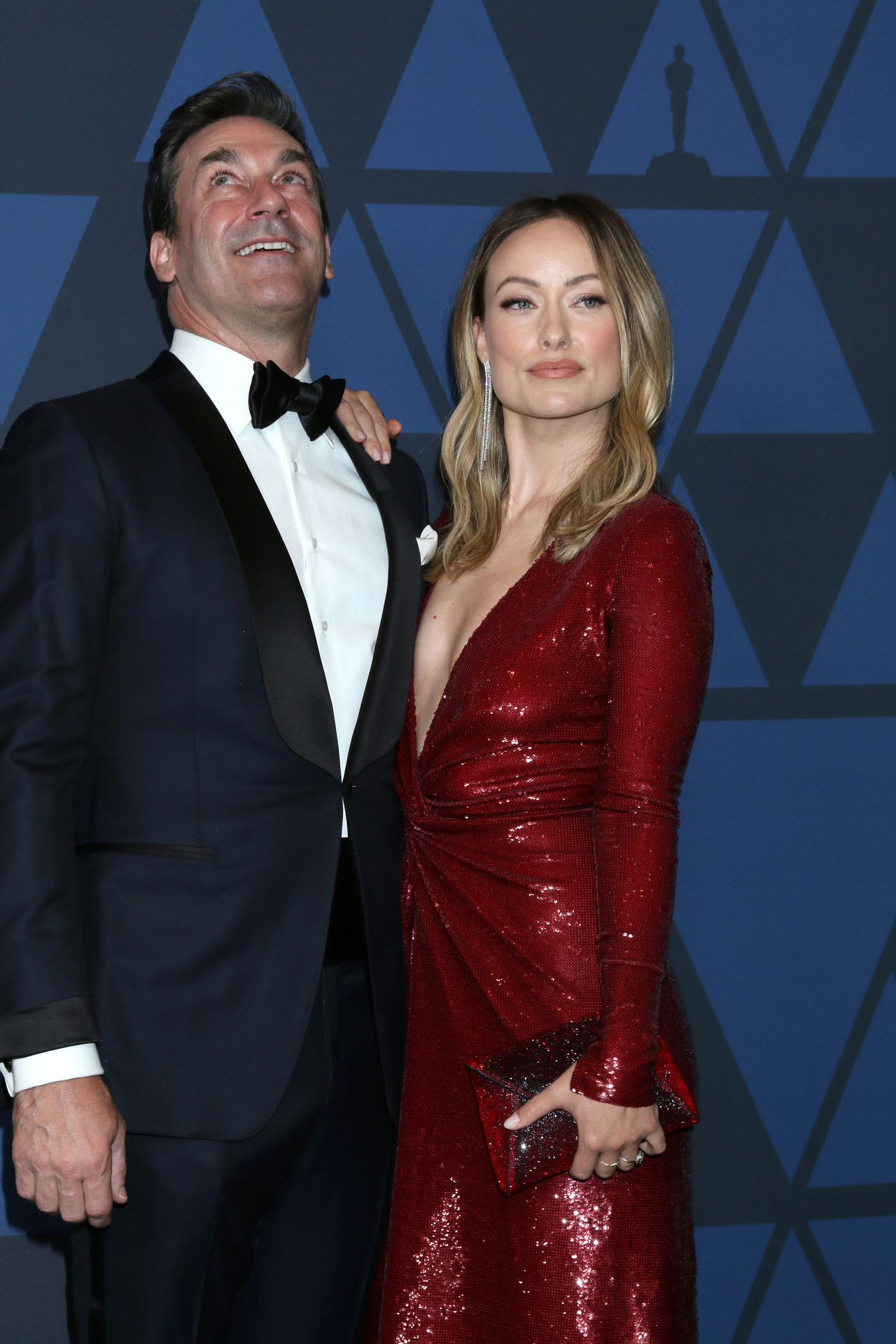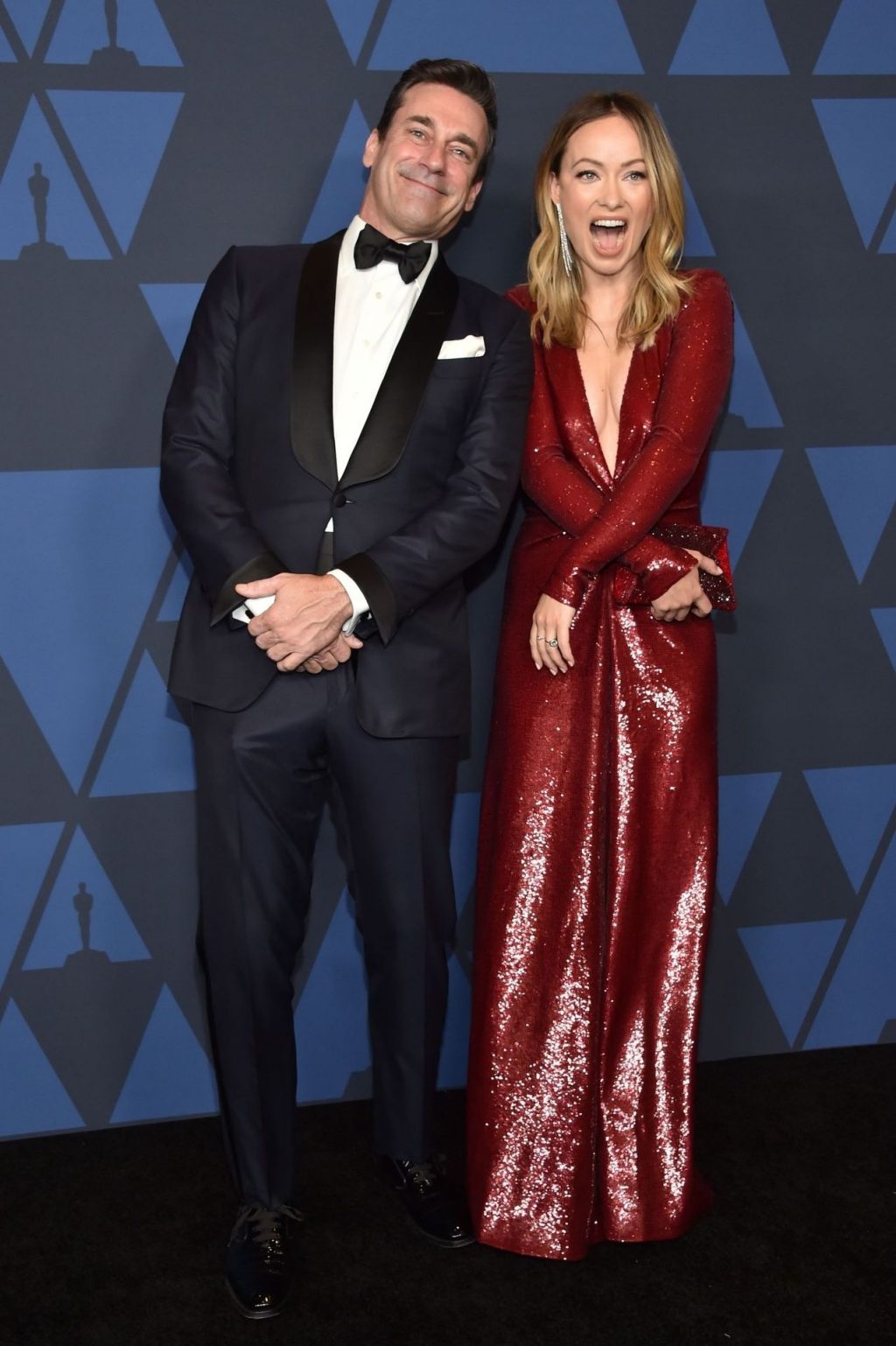 L’attrice Olivia Wilde incanta con un abito rosso aderente e una profonda scollatura mentre cena con amici al Chateau Marmont a Hollywood, 28/10/2019.