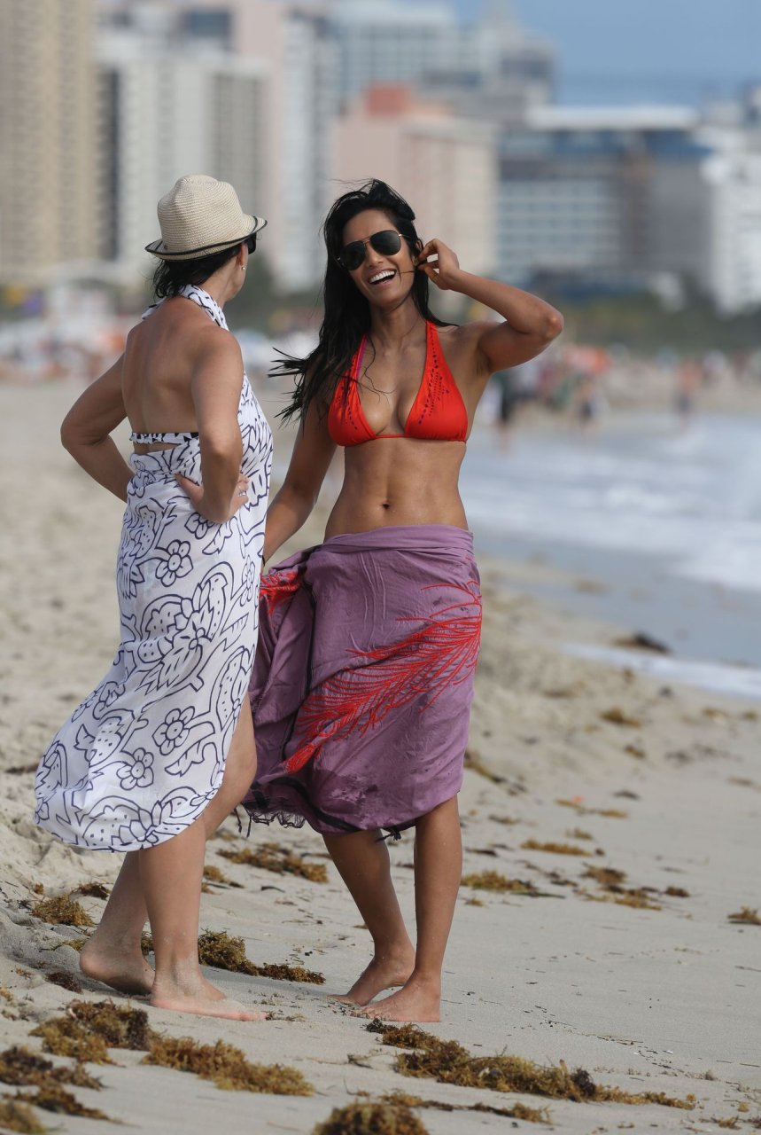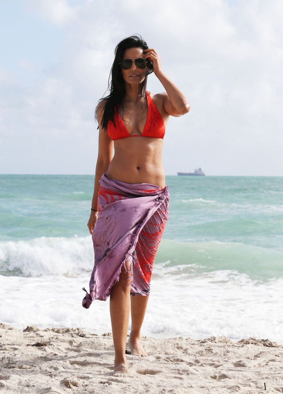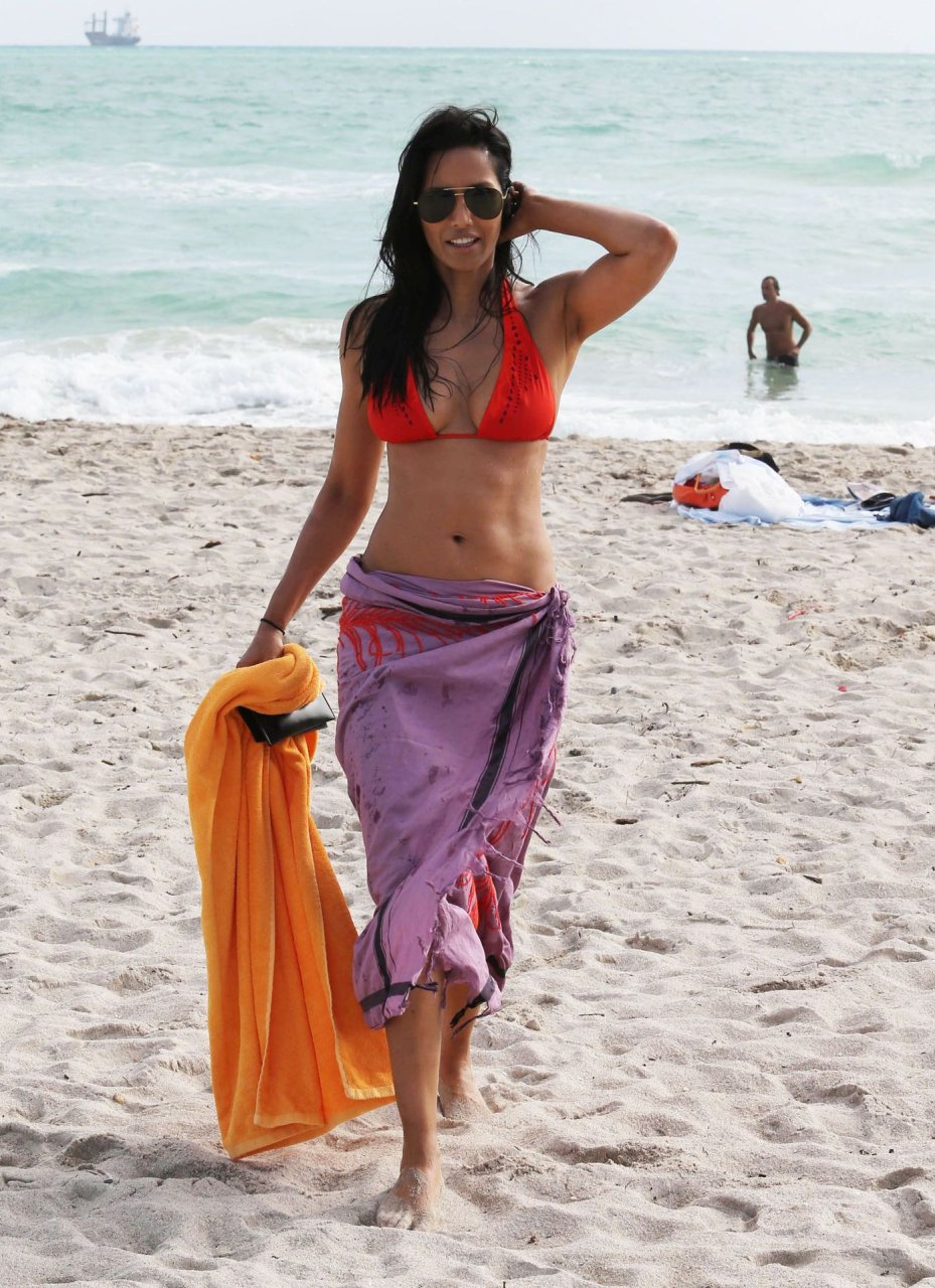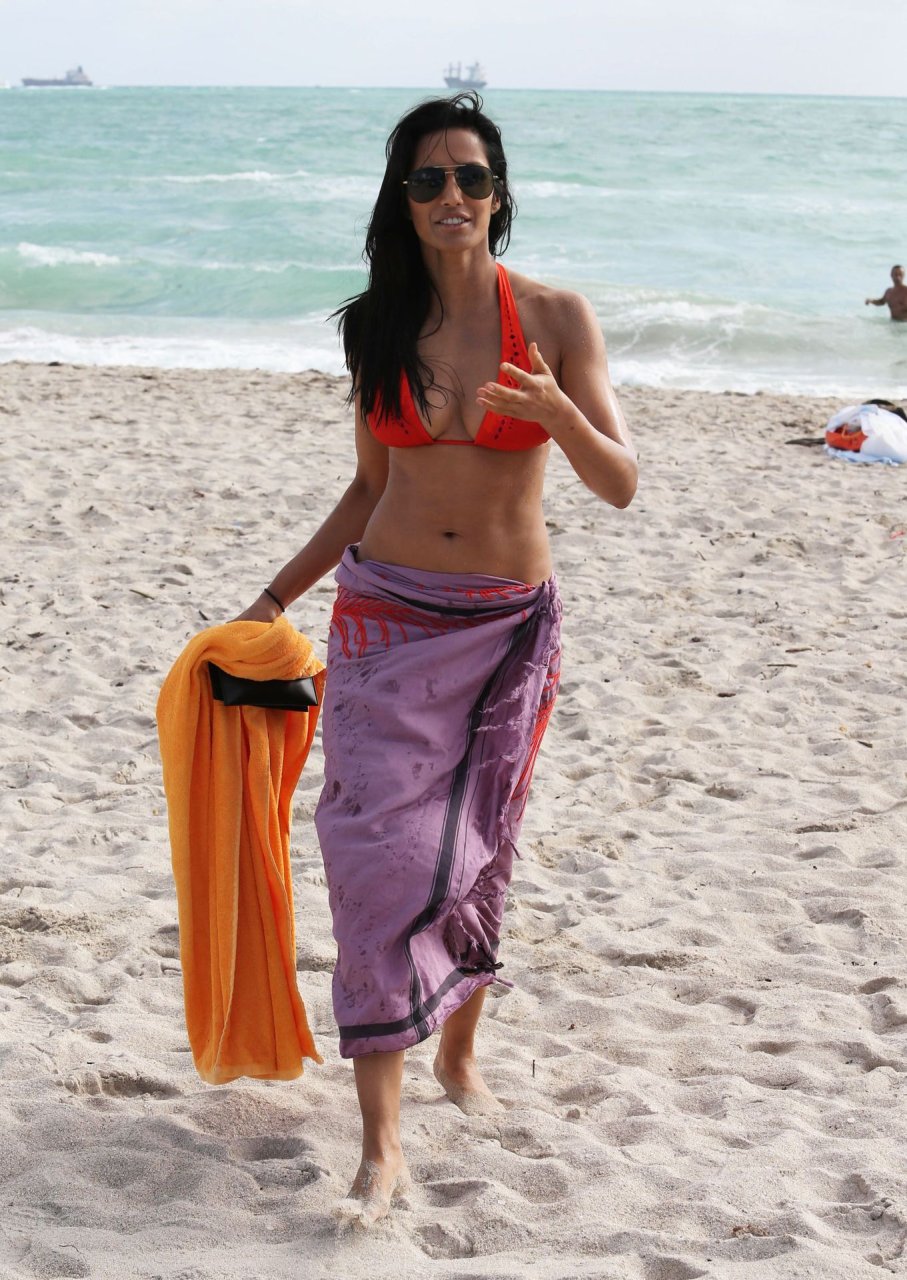 Padma Lakshmi è stata vista in bikini arancione mentre si godeva una giornata in spiaggia a Miami, 12/08/2013. Naturalmente, non tutte le donne indiane sono l’ideale di bellezza, ma Padma Lakshmi è una delle donne più sexy. Nonostante la sua età, appare semplicemente fantastica, e il bikini enfatizza perfettamente la sua figura.