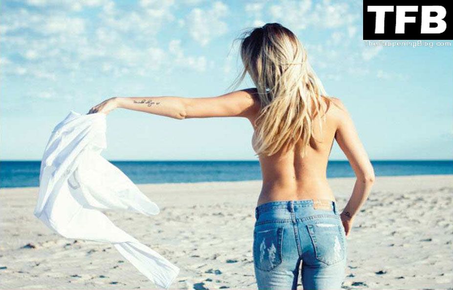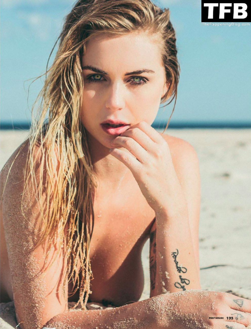 Modella bionda Paige Marie Evans si spoglia sulla spiaggia e mostra il seno, il sedere, la vagina in un servizio fotografico di Kelton Critchett per l’edizione di gennaio/febbraio 2017 di Penthouse Australia.