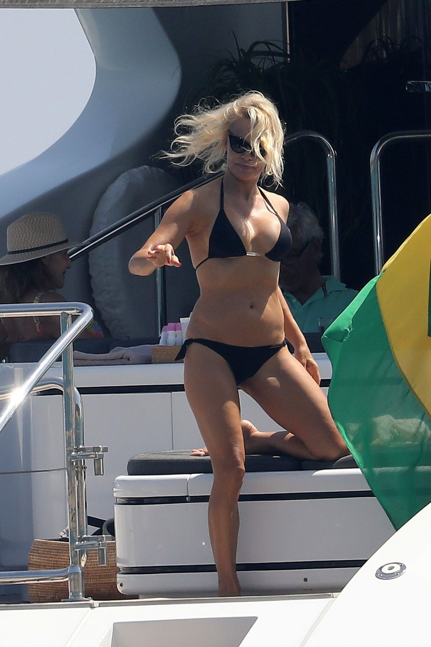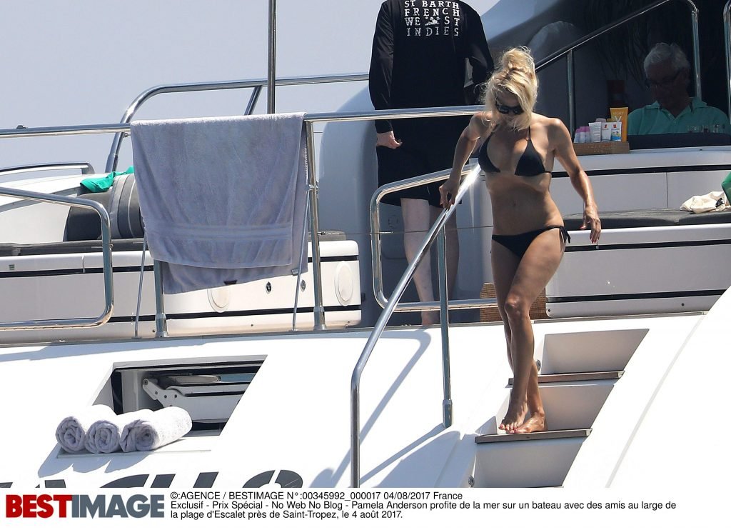 Pamela Anderson mostra il suo corpo sexy in un bikini nero in vacanza in Francia, 04/08/2017. Pamela Anderson è un’attrice canadese-americana (Baywatch, 2017), modella, attivista. Età – 50.